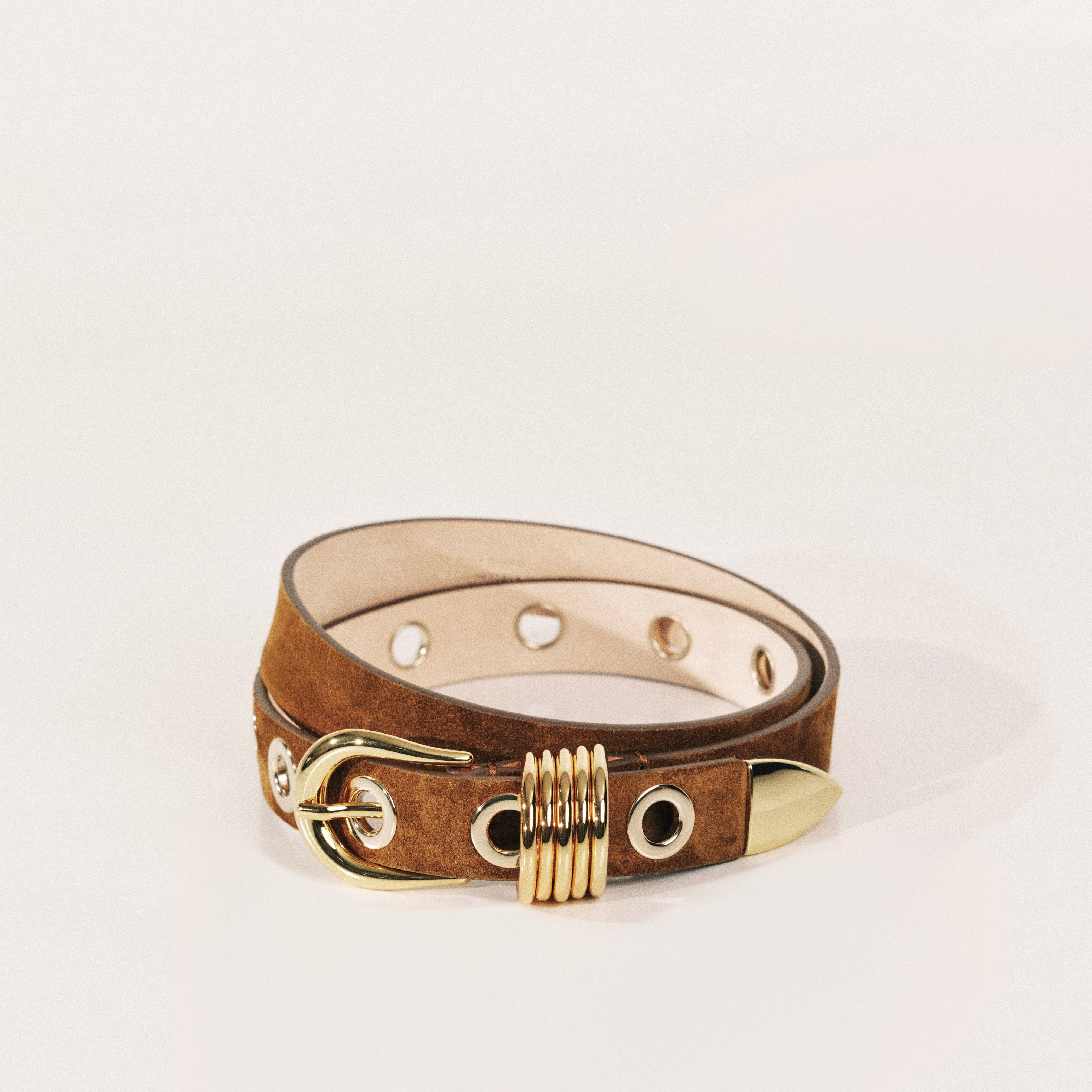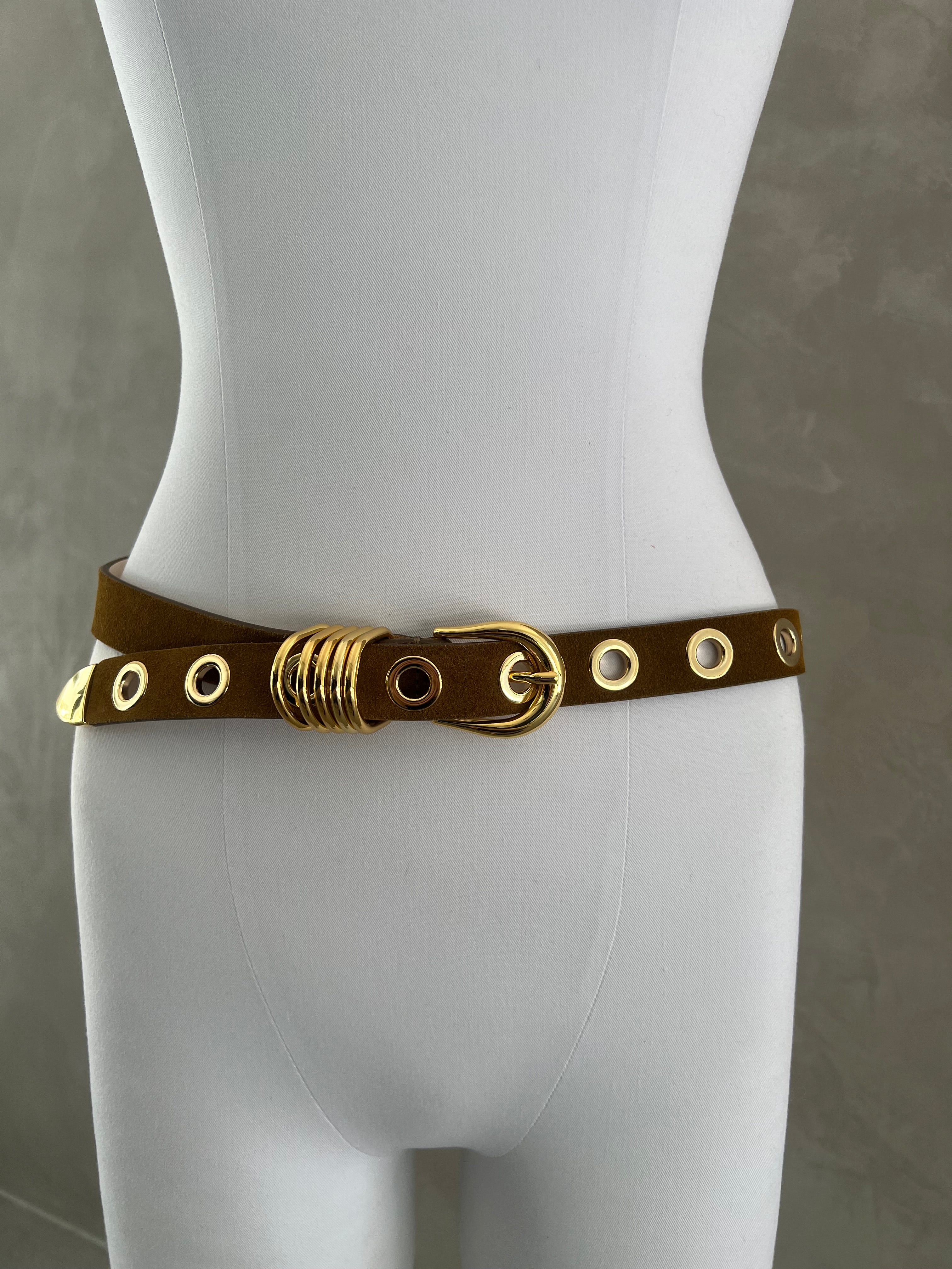 Hollyhock 10 Rivet Suede Belt, Ochre (G)