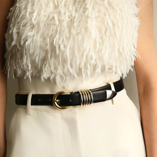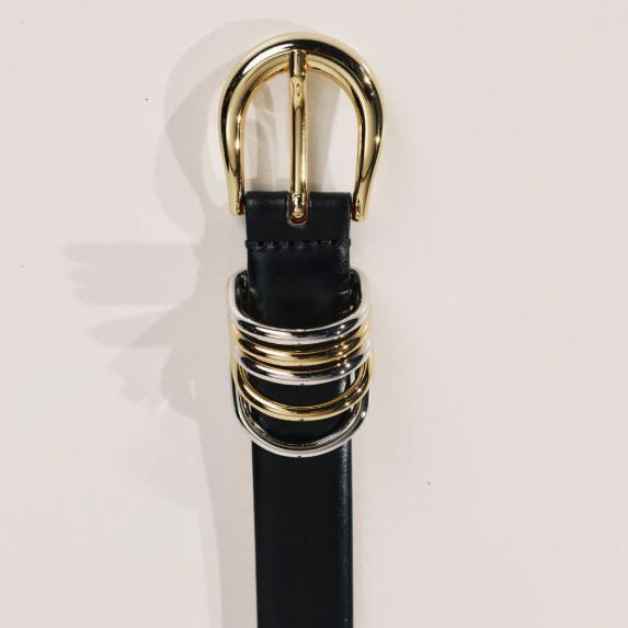 Hollyhock Belt, Black (Mixed Metal)