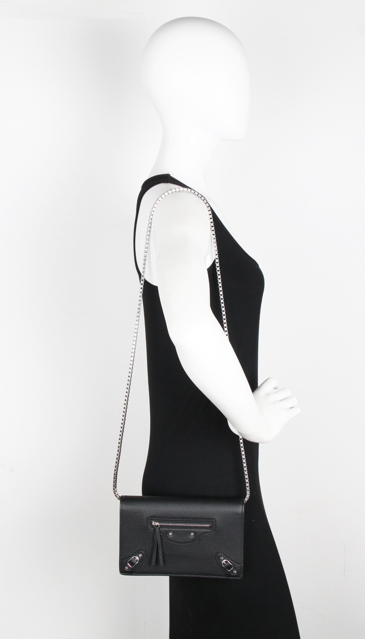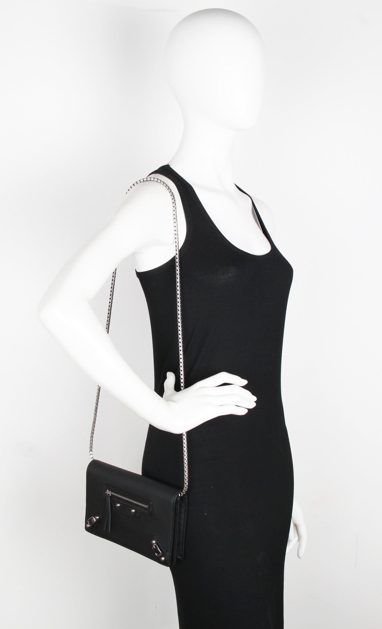 Balenciaga City Wallet on Chain bag finished with the signature stud detailing, a chain strap and interior card slots.