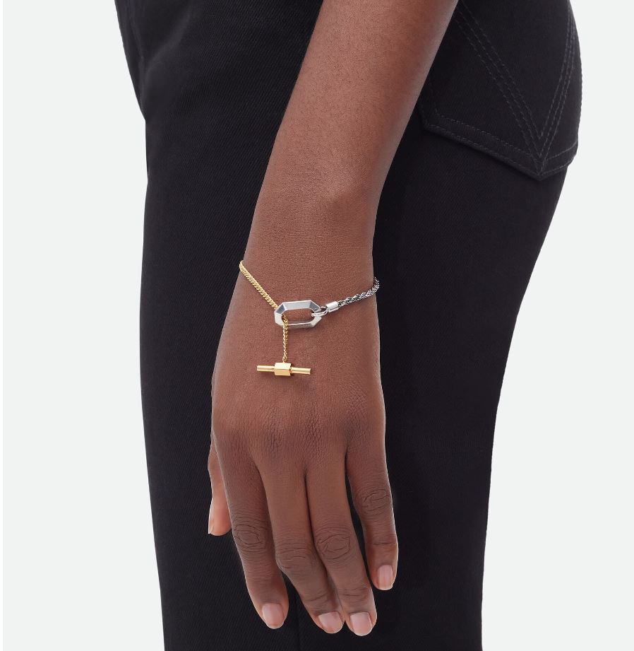 18-karat gold-plated silver and silver chain bracelet. T-bar closure.