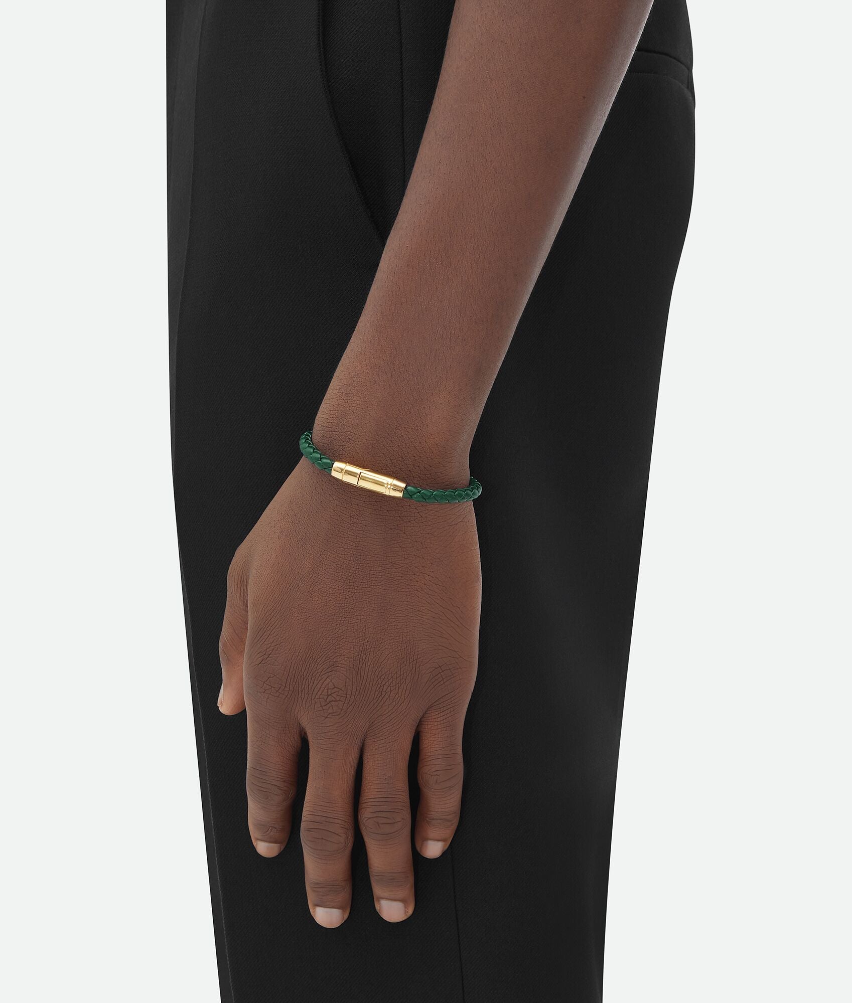 Bracelet crafted from braided leather recalling signature Intrecciato craftsmanship.