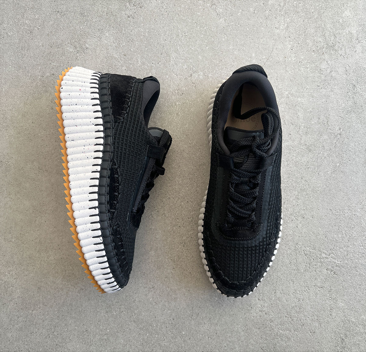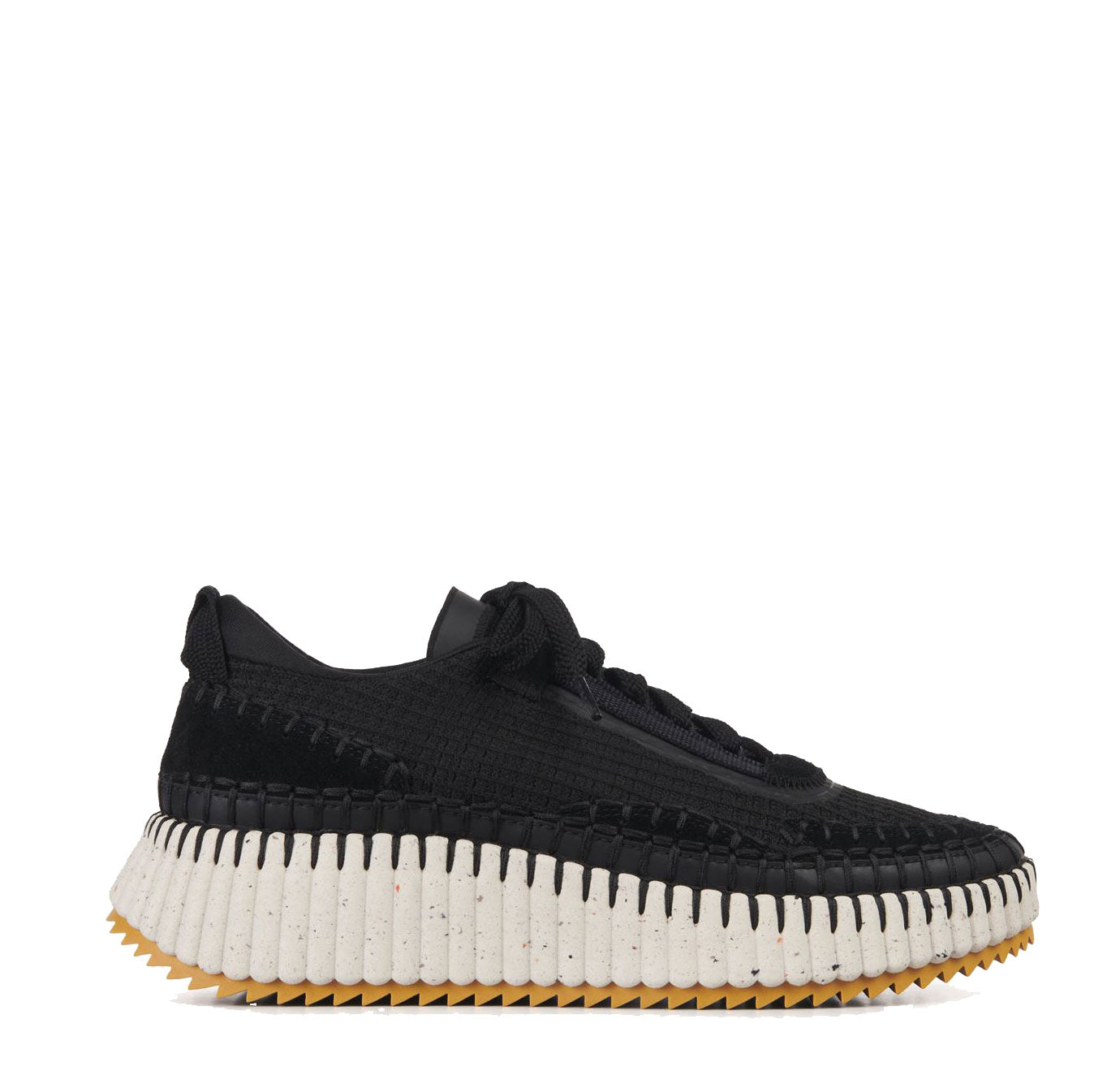 The bold, lightweight structure features a hand-stitched mesh upper, showcasing authentic Chloé craftsmanship. Set on a contrasting, ridged sole, this women's sneaker is ultra-comfortable with a cool, sporty aesthetic. The Chloé logo at the back adds a signature touch.