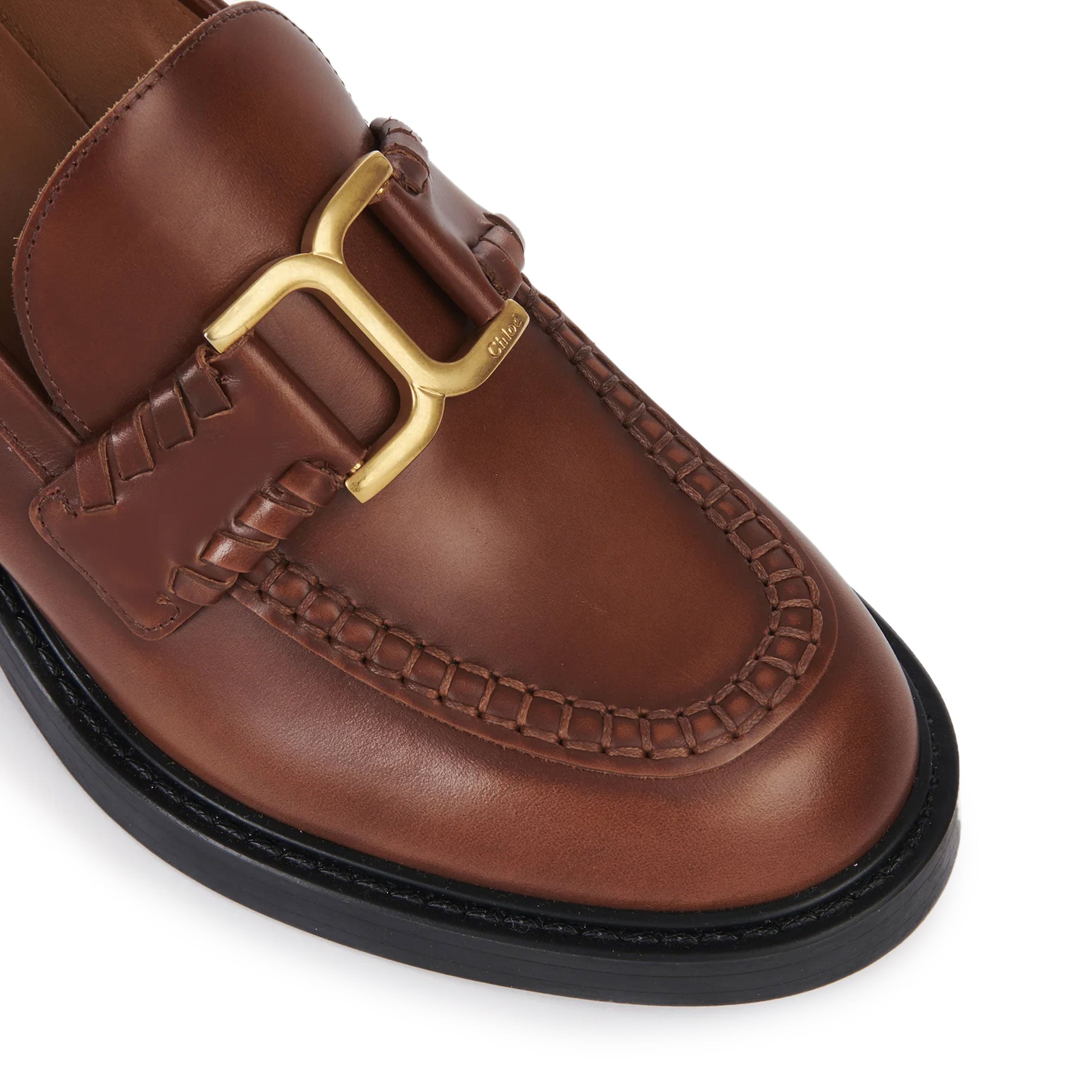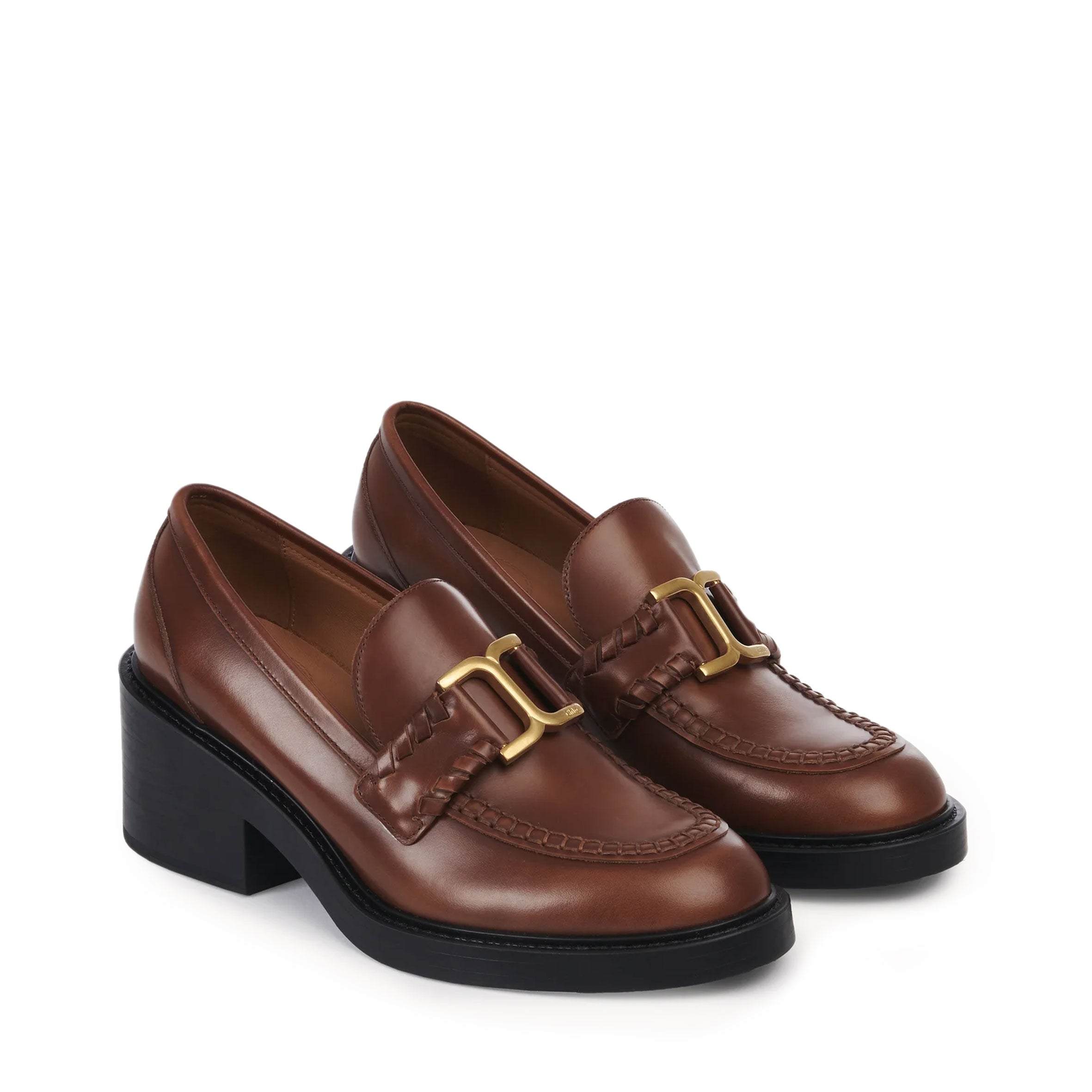 Reinterpreting the iconic leather goods line, this classic Marcie heeled loafer is crafted from brushed calfskin elevated with the distinctive braided details and Chloé-engraved gold-toned hardware found in the Maison's Marcie bags.
