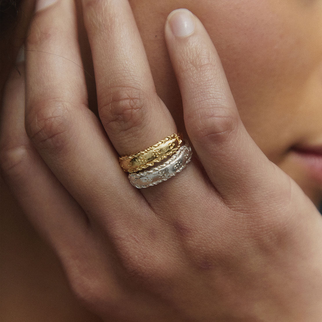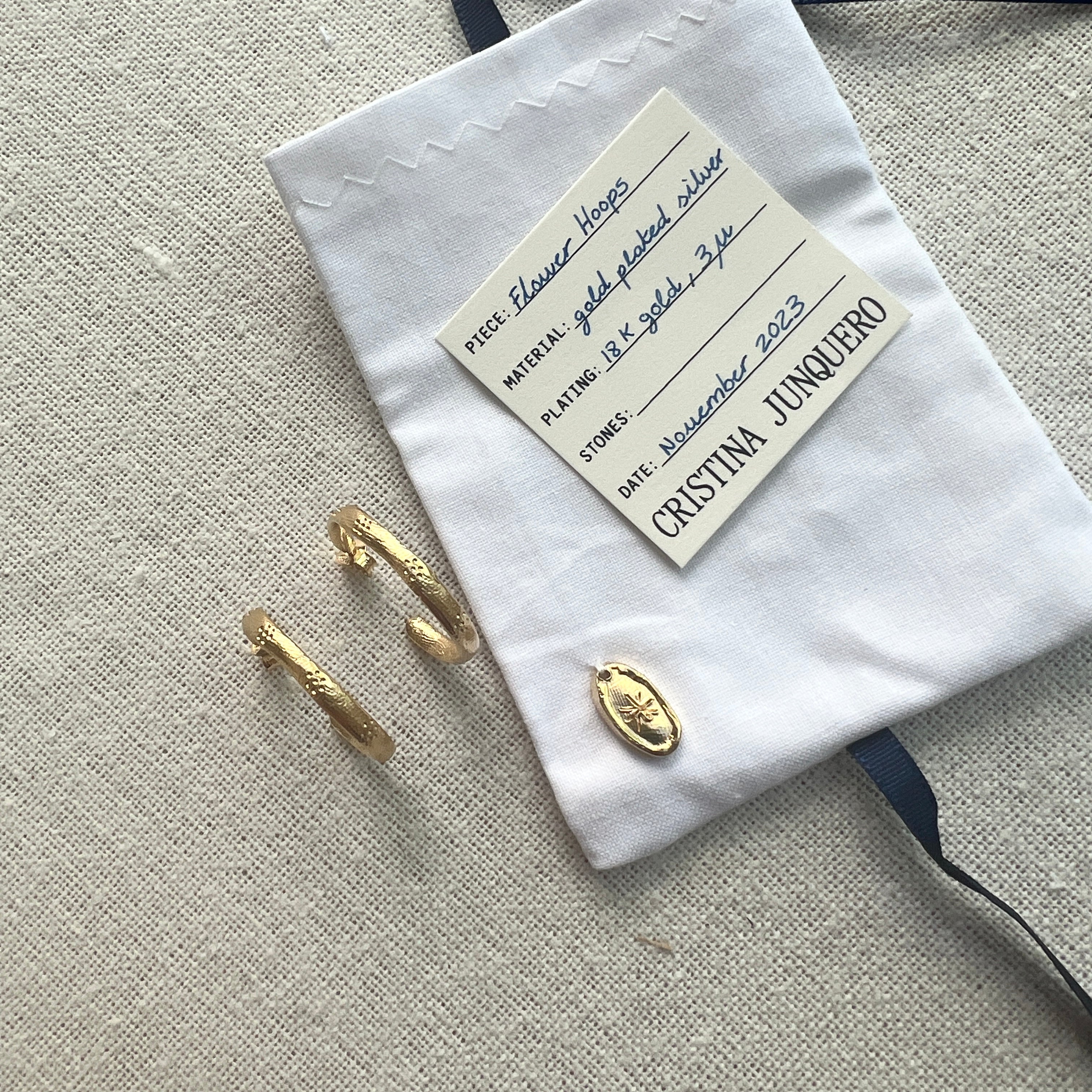 From her workshop in Barcelona, Cristina personally oversees every stage of production, embracing local craftsmanship to ensure uncompromising quality and attention to detail. She meticulously hand-models each piece in wax before casting them in 18kt gold, silver, or brass.