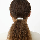 The Thea Hair Tie is redefining the classic hair tie with a voluminous yet subtle design. Crafted from silver plated brass, the Thea Hair Tie adds a noticeable and elevated look to even the simplest bun or ponytail.