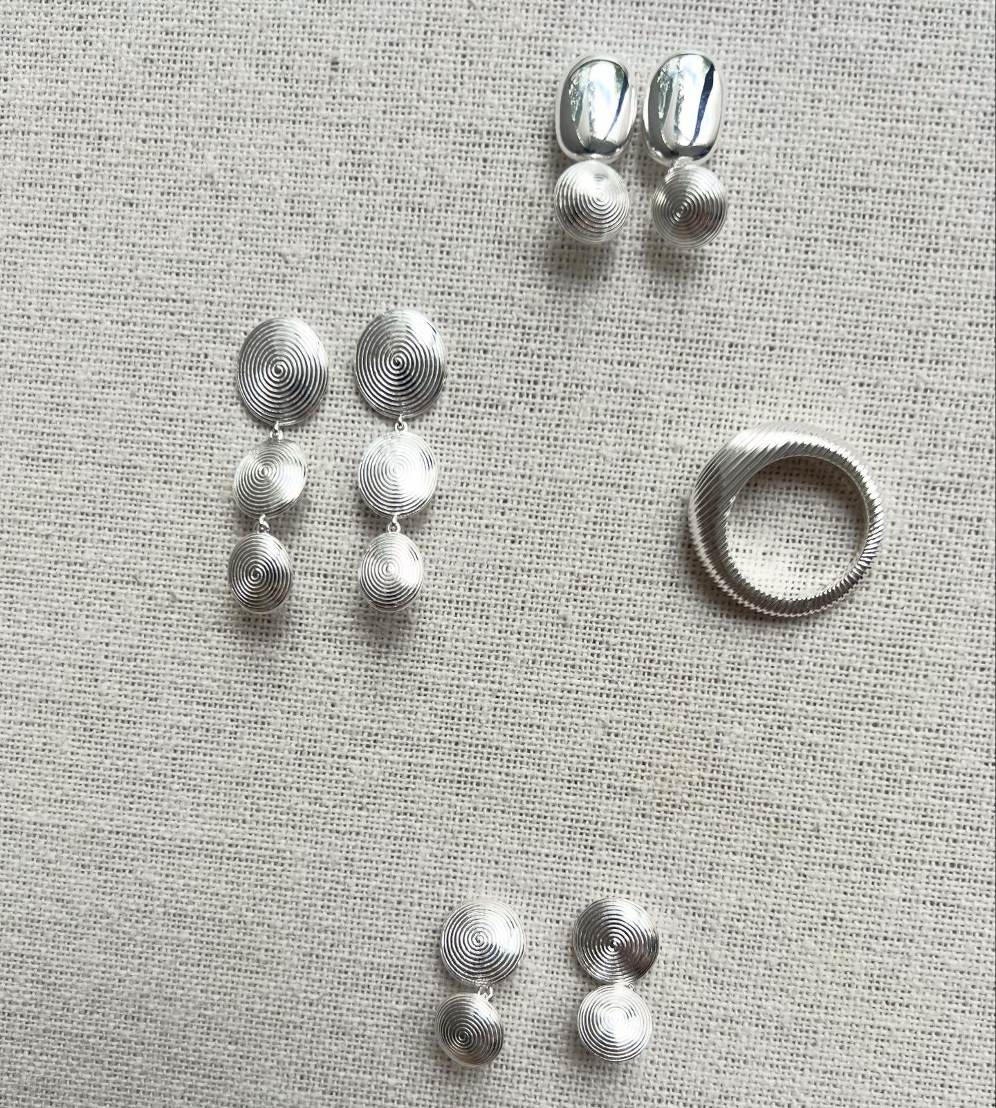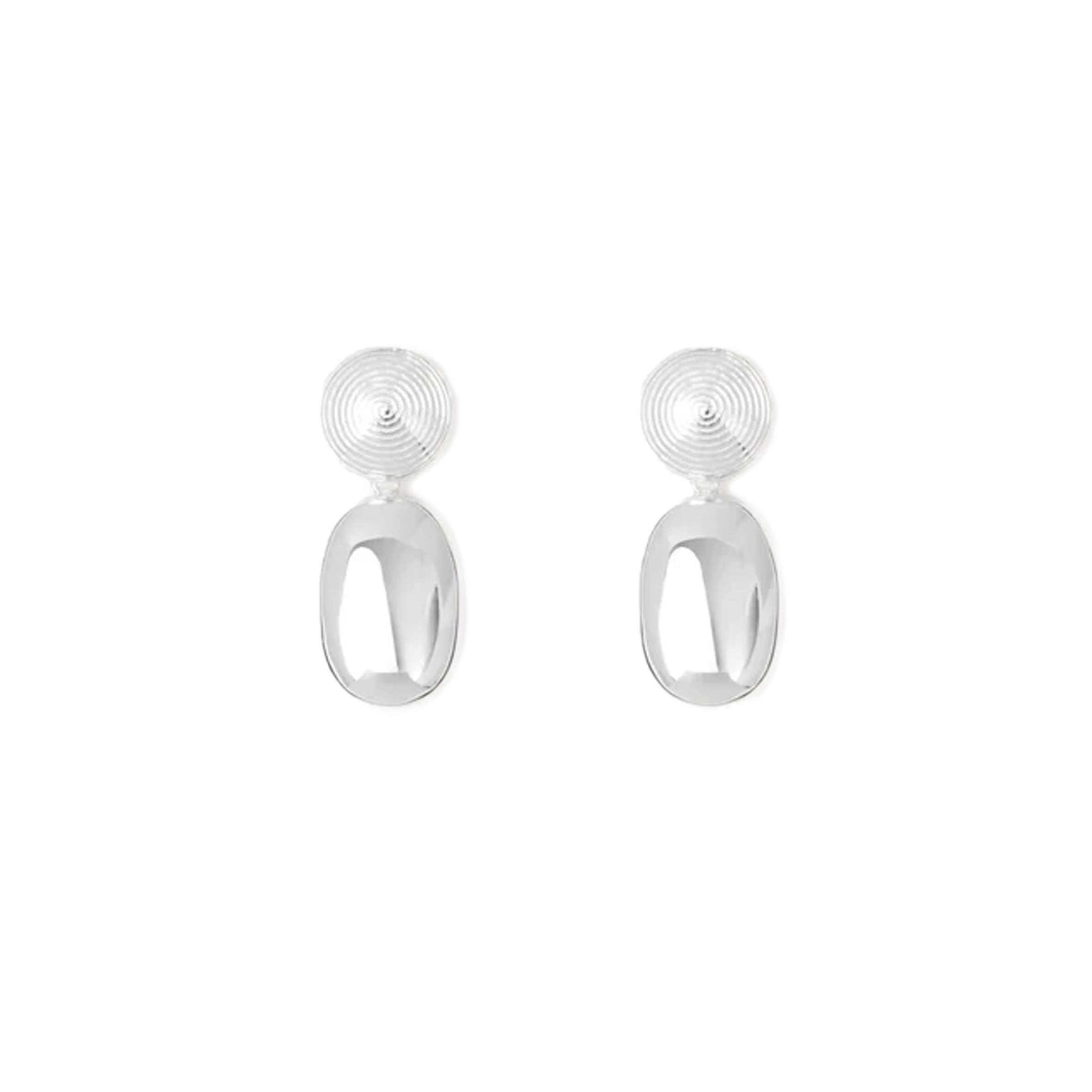 The Carla Earrings combine two contrasting elements – a delicate spiral stud and a bold oval drop – for a playful yet polished finish. Lightweight and crafted from 925 sterling silver with a strong silhouette, they transition seamlessly from day to night.
