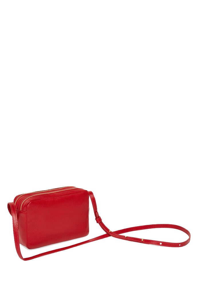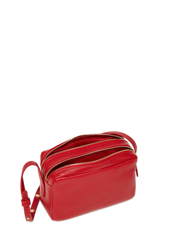 Italian leather double zip crossbody bag. This bag features double compartments and an adjustable shoulder strap.