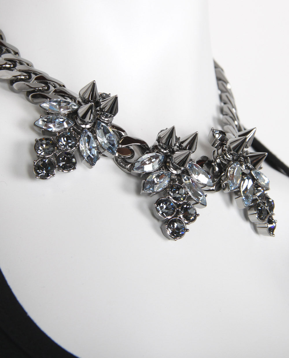 Hematite plated necklace with a trio of crystal fireflies.
