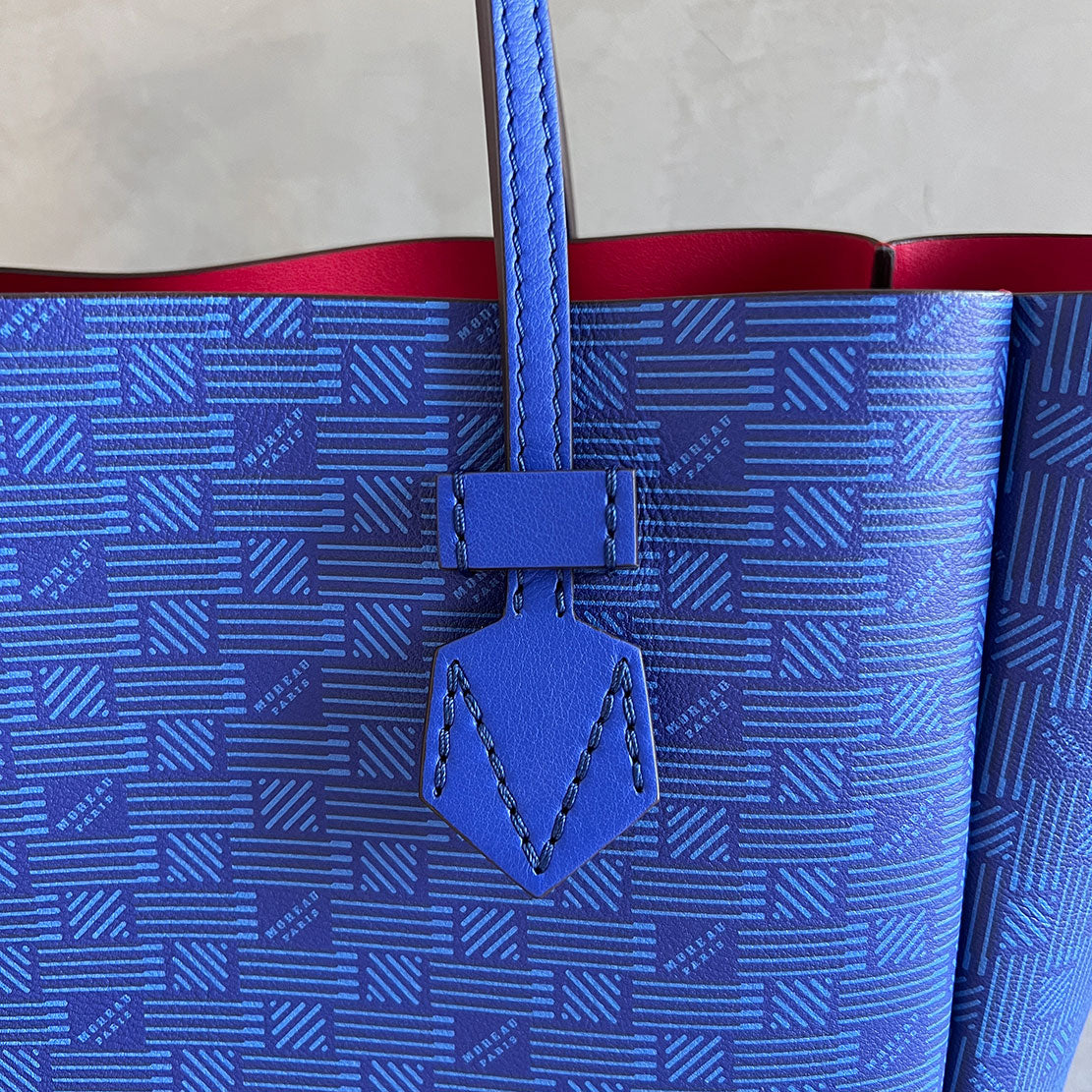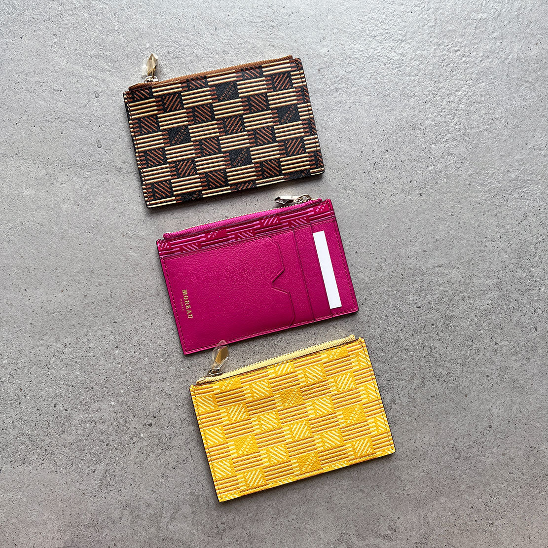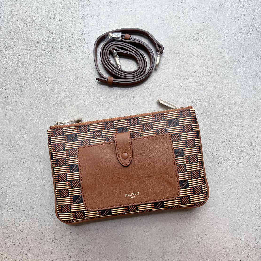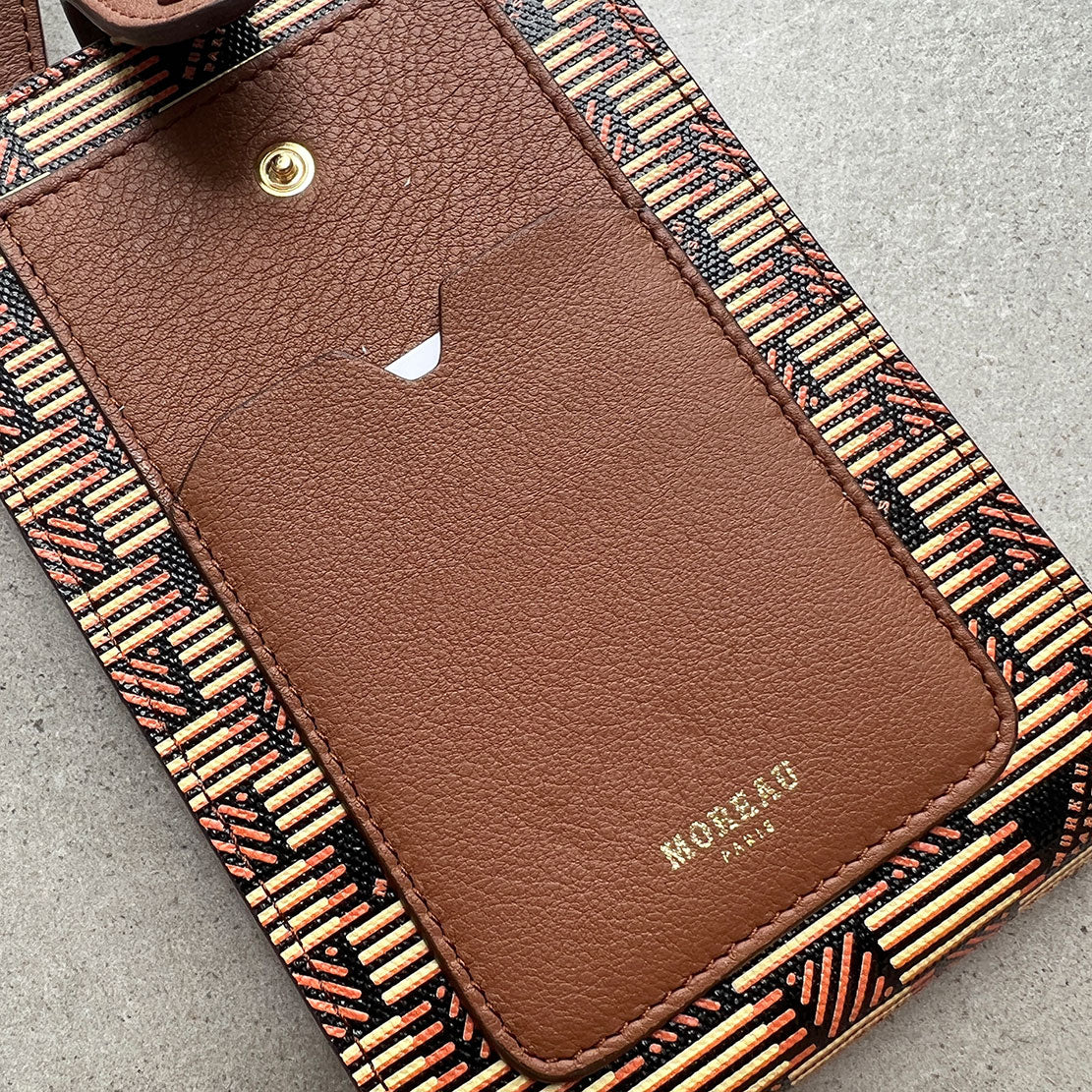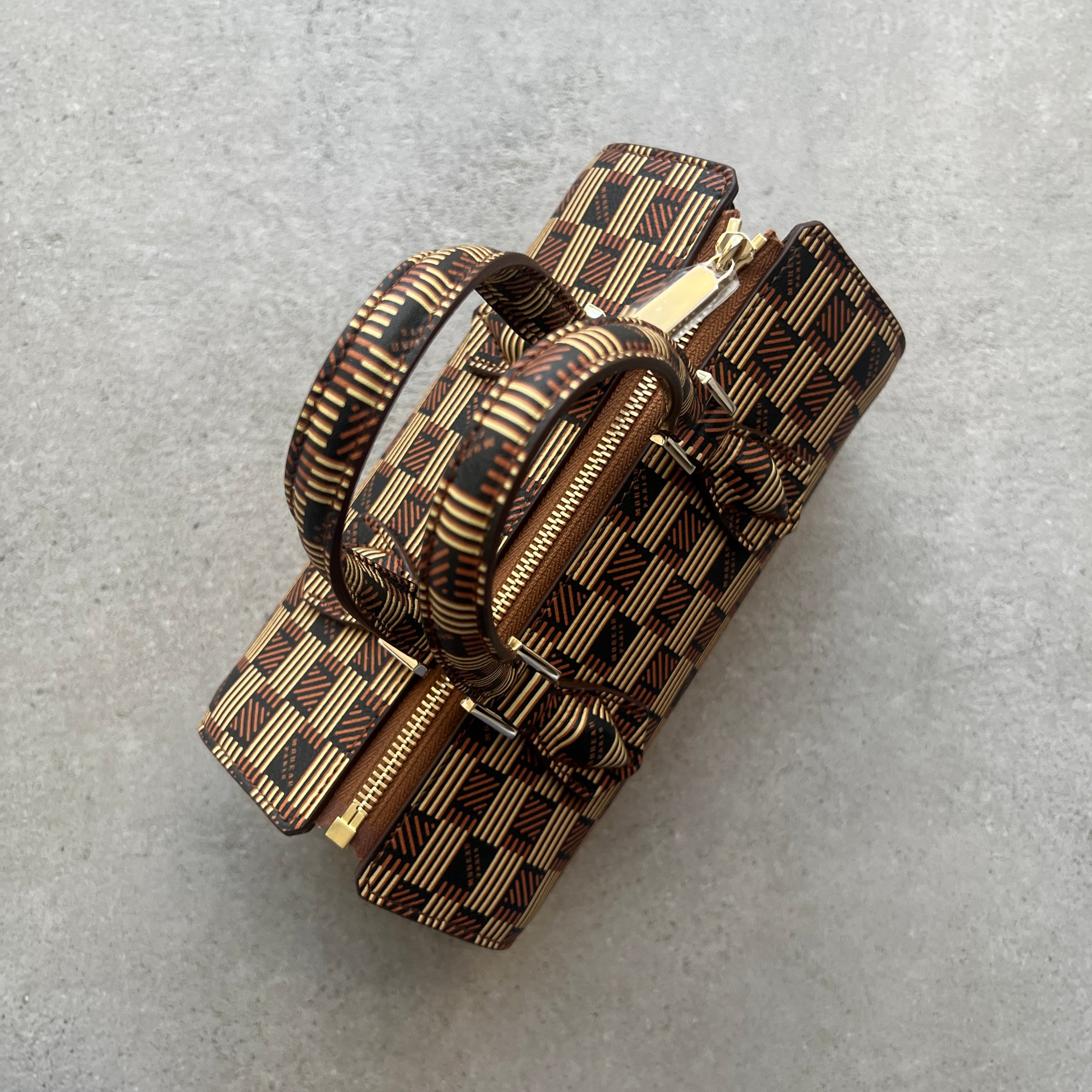 The iconic pattern of Maison Moreau is inspired by the intertwining of wicker stems, which formed the structure of different travel goods in the late 19th century. This unique signature print is reimagined on calf leather with a traditional printing technique that uses a semi-manual paint application, creating vibrant and deep colours.