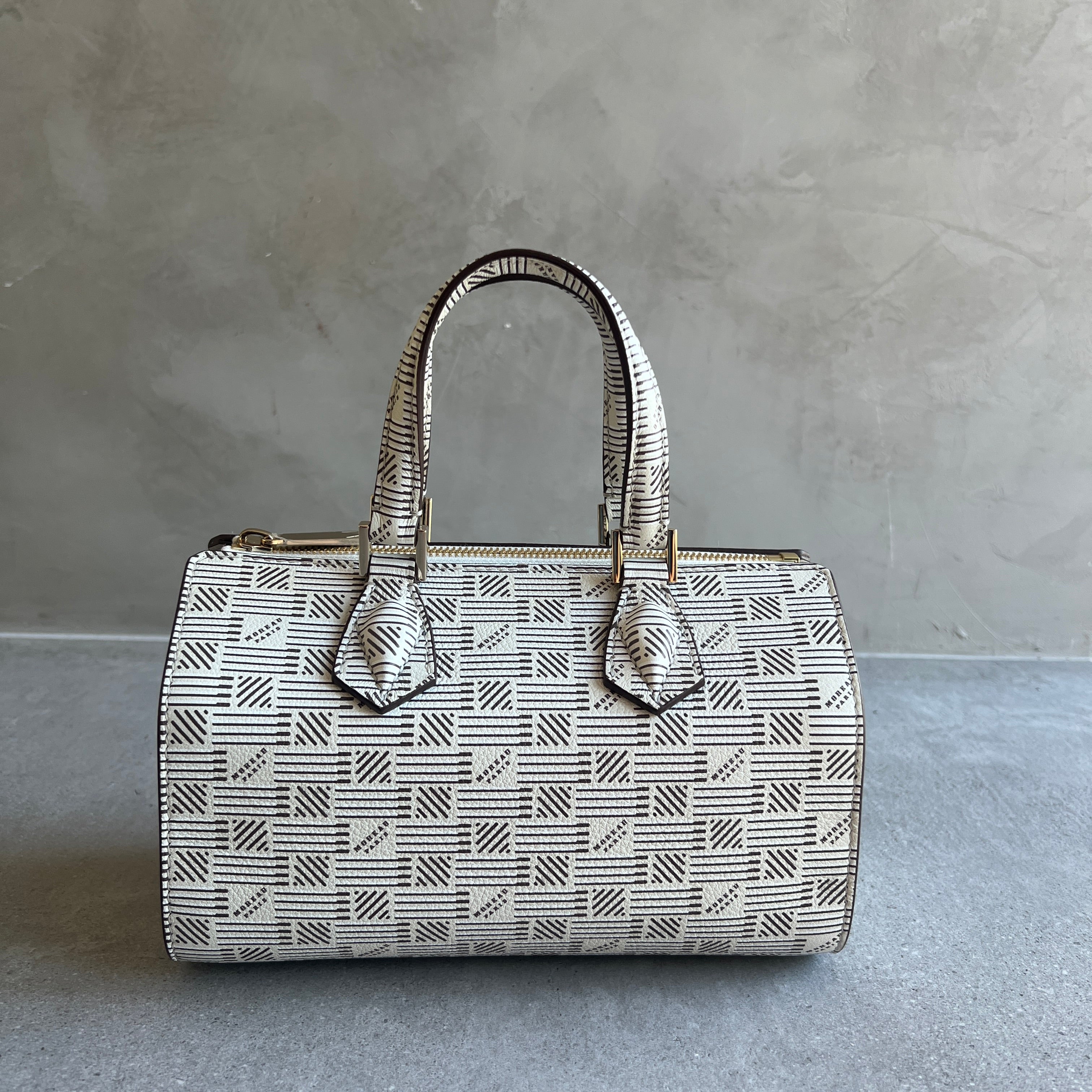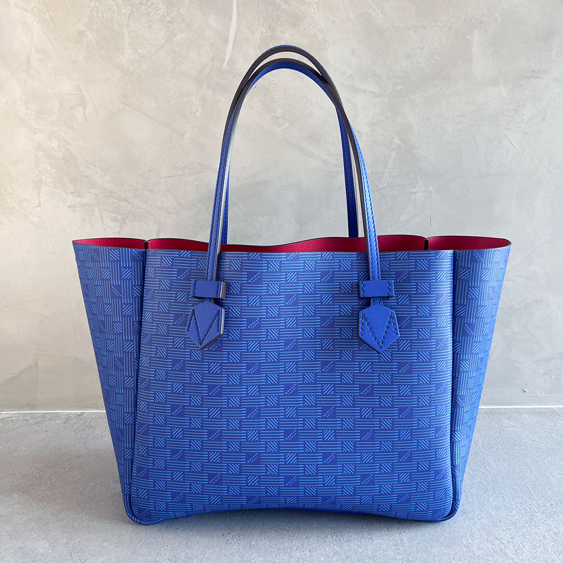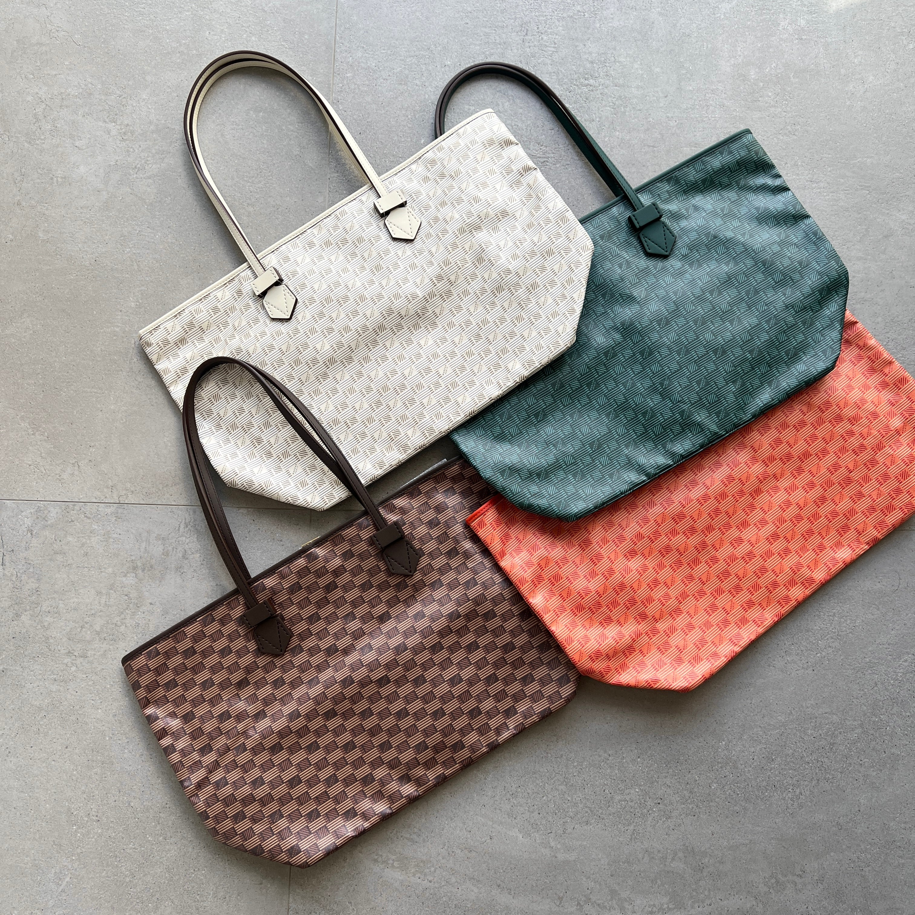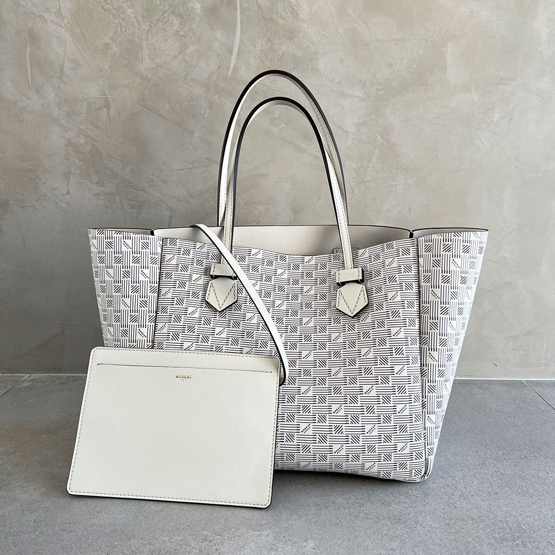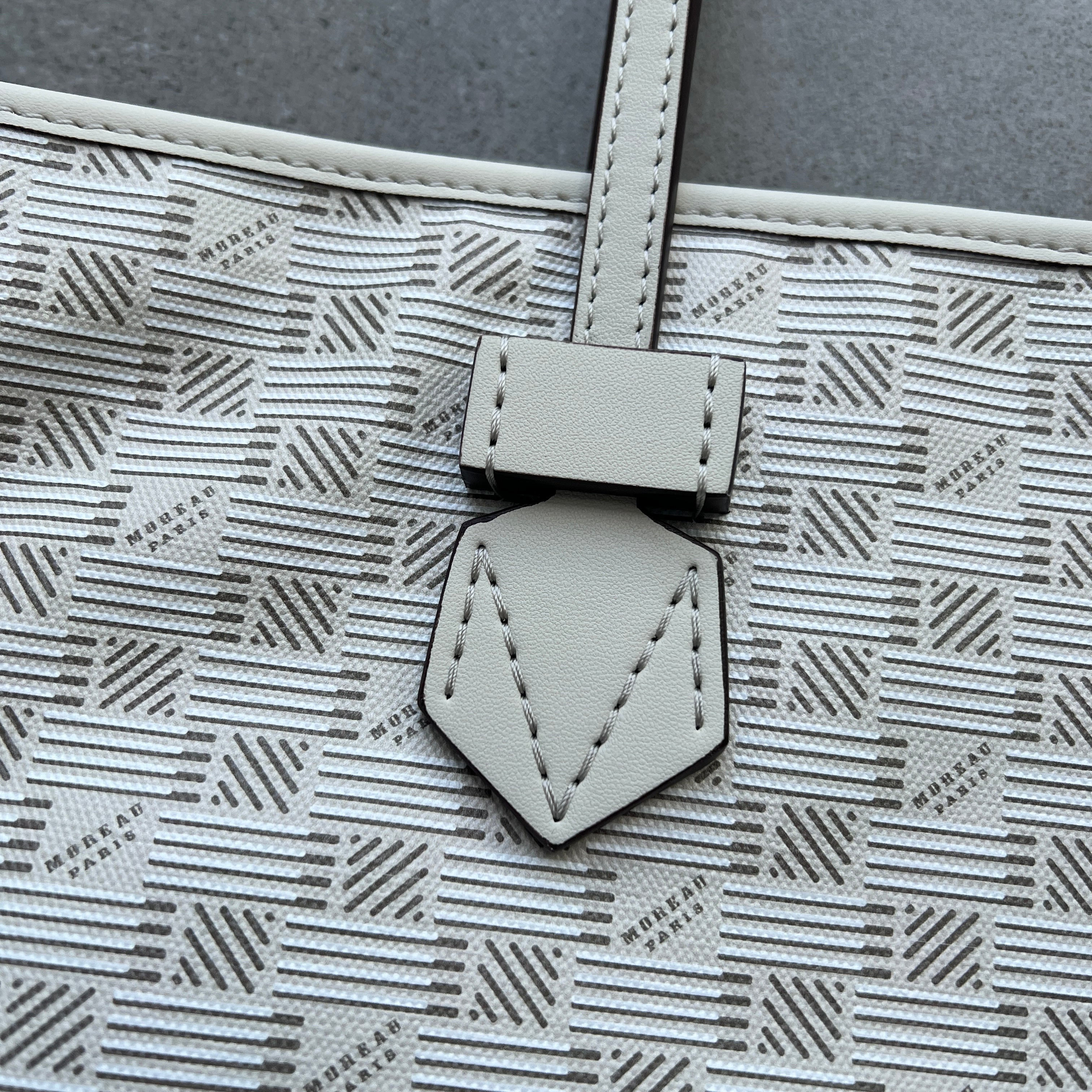 The iconic pattern of Maison Moreau is inspired by the intertwining of wicker stems, which formed the structure of different travel goods in the late 19th century. This unique signature print is reimagined on calf leather with a traditional printing technique that uses a semi-manual paint application, creating vibrant and deep colours.