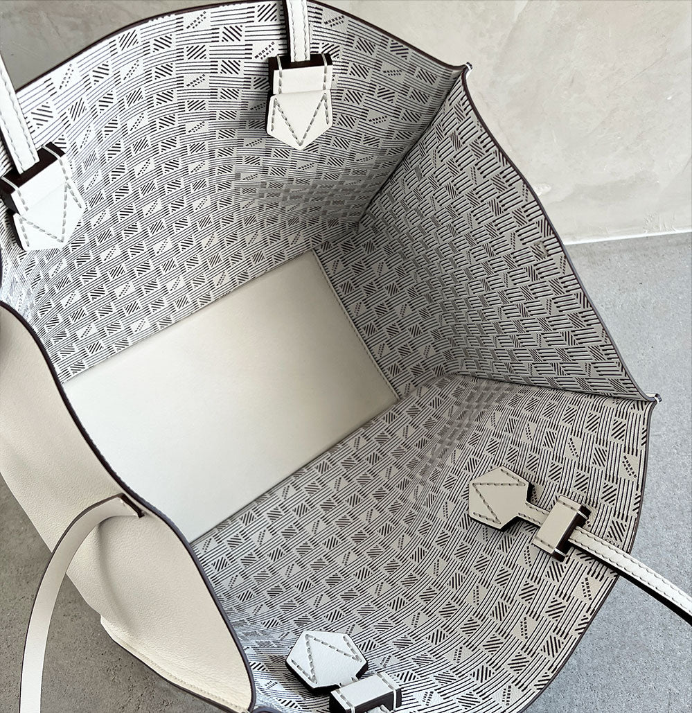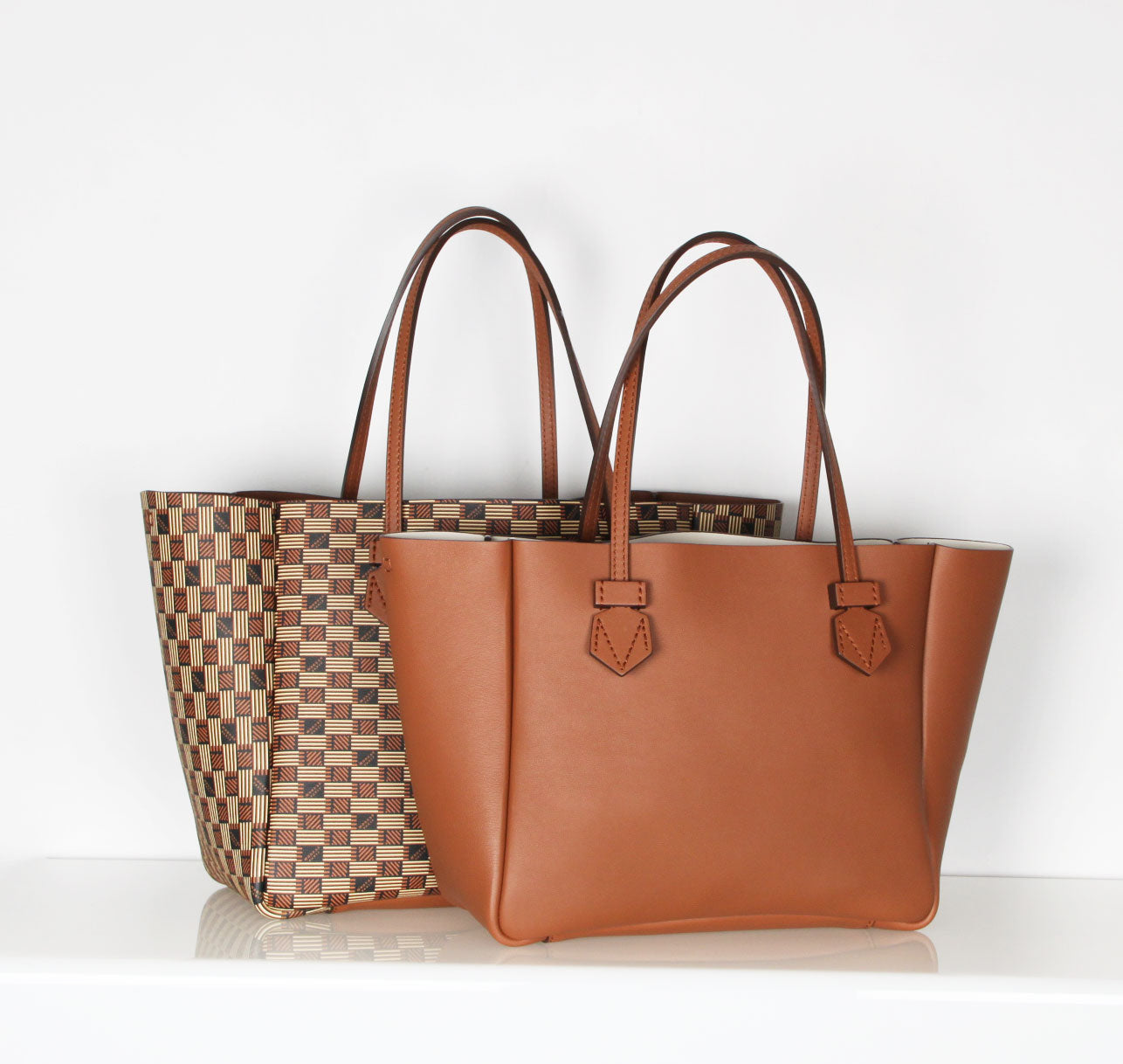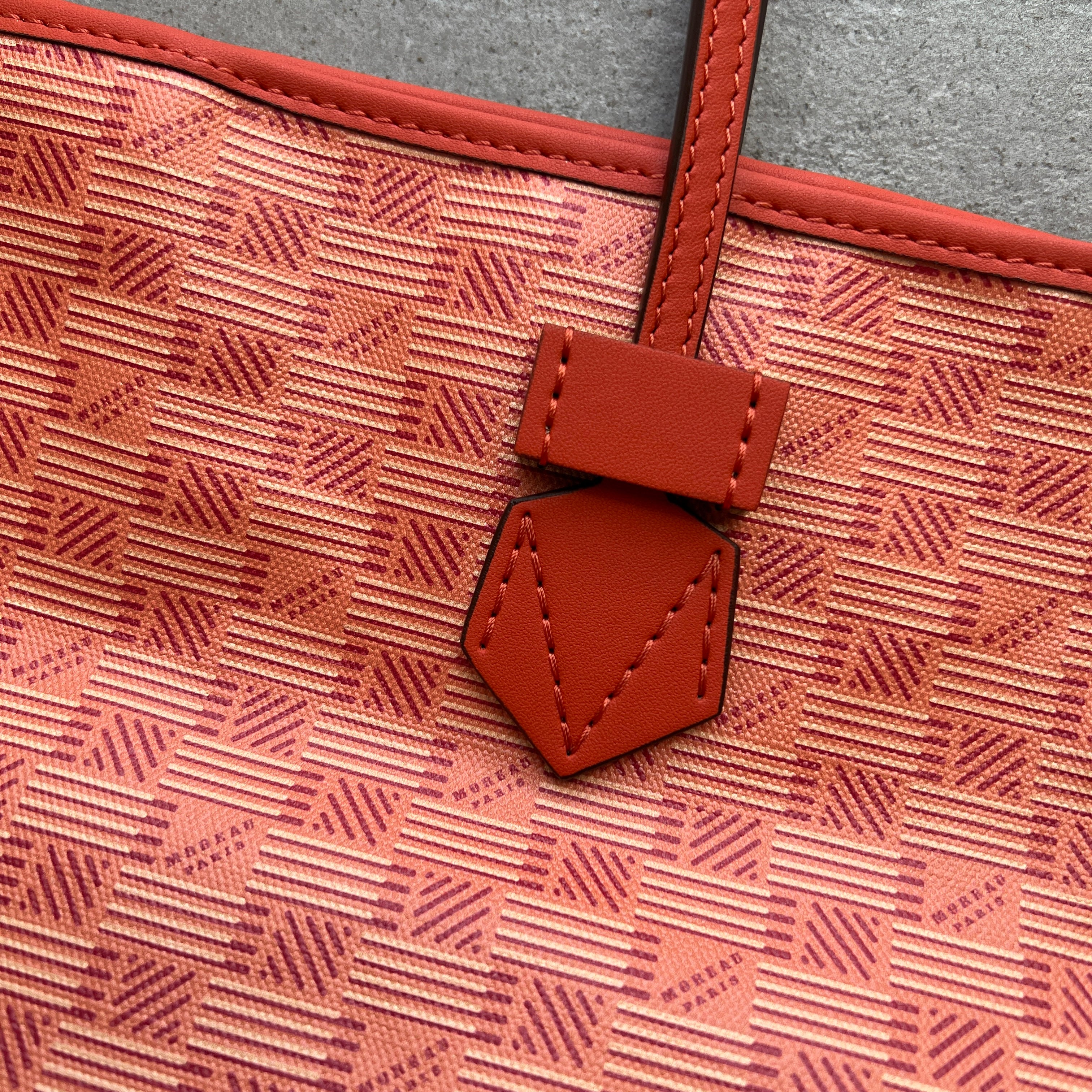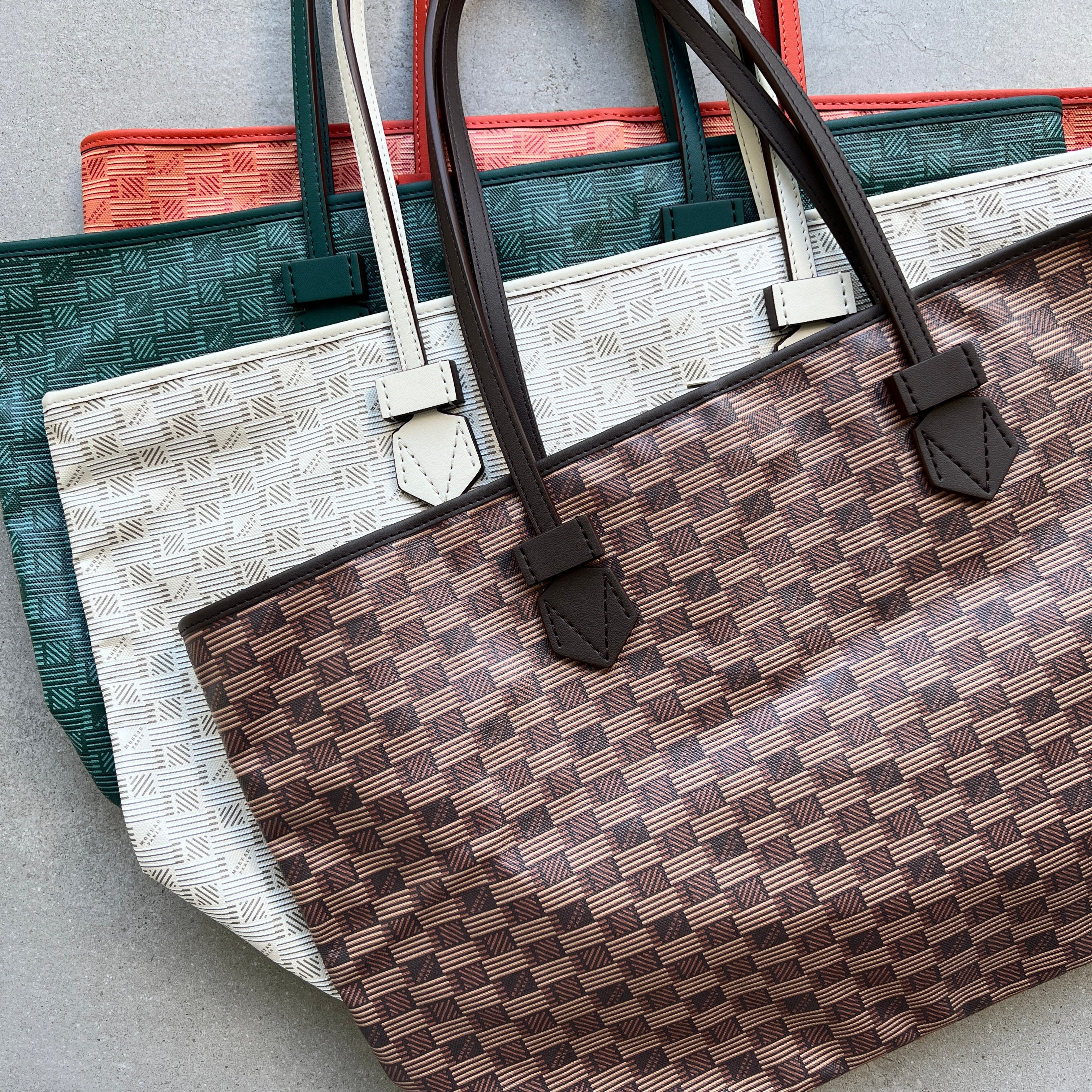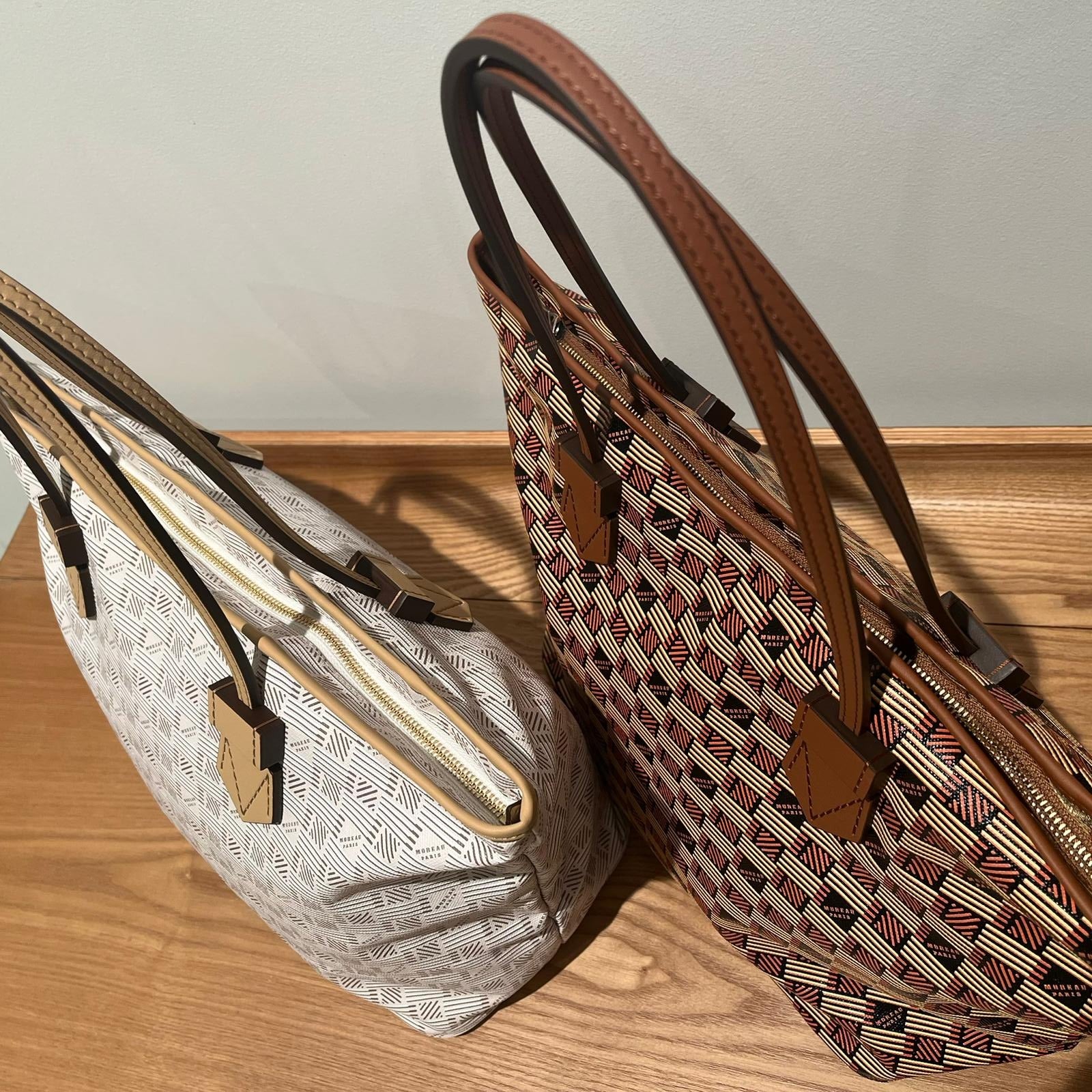 The iconic pattern of Maison Moreau is inspired by the intertwining of wicker stems, which formed the structure of different travel goods in the late 19th century. This unique signature print is reimagined on calf leather with a traditional printing technique that uses a semi-manual paint application, creating vibrant and deep colours.