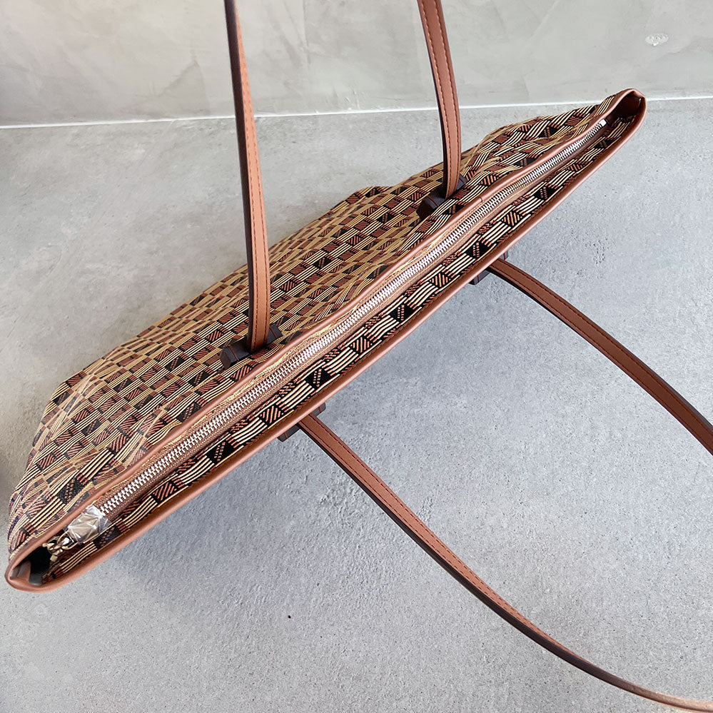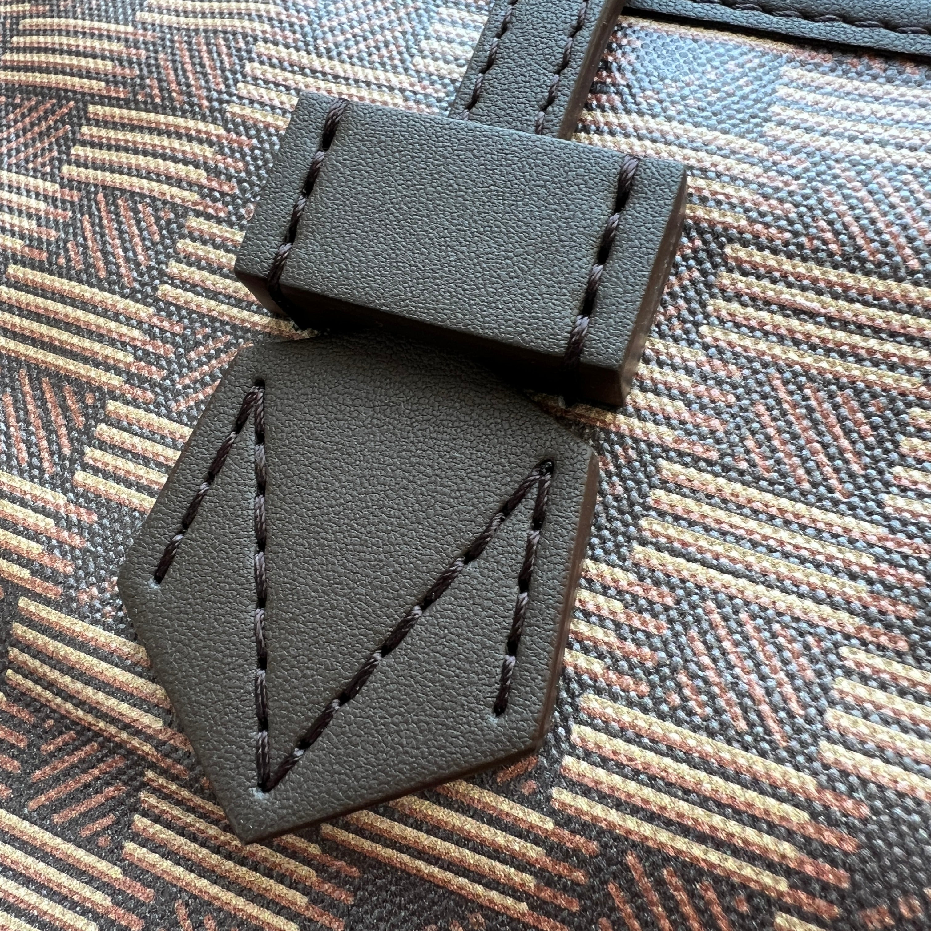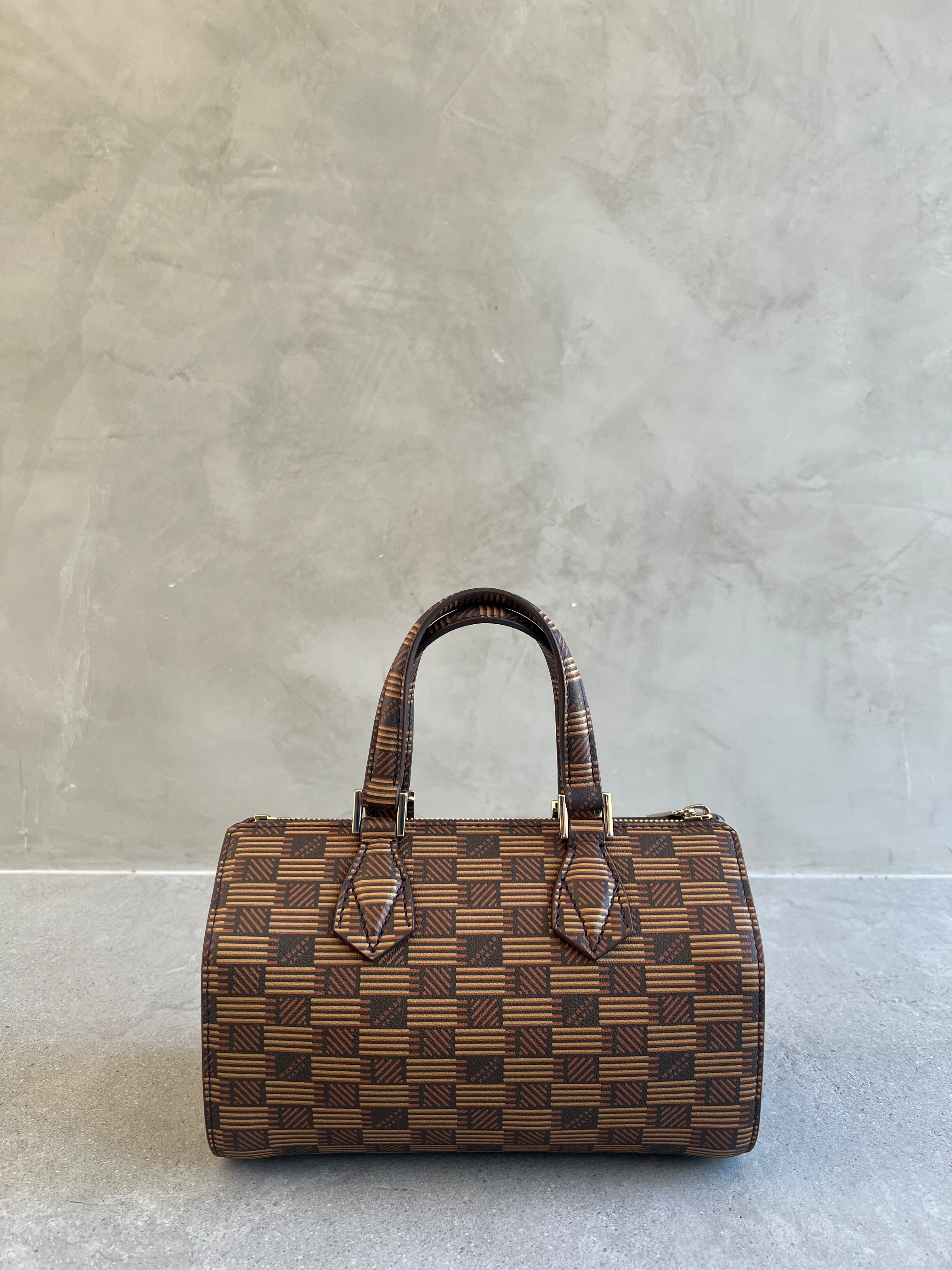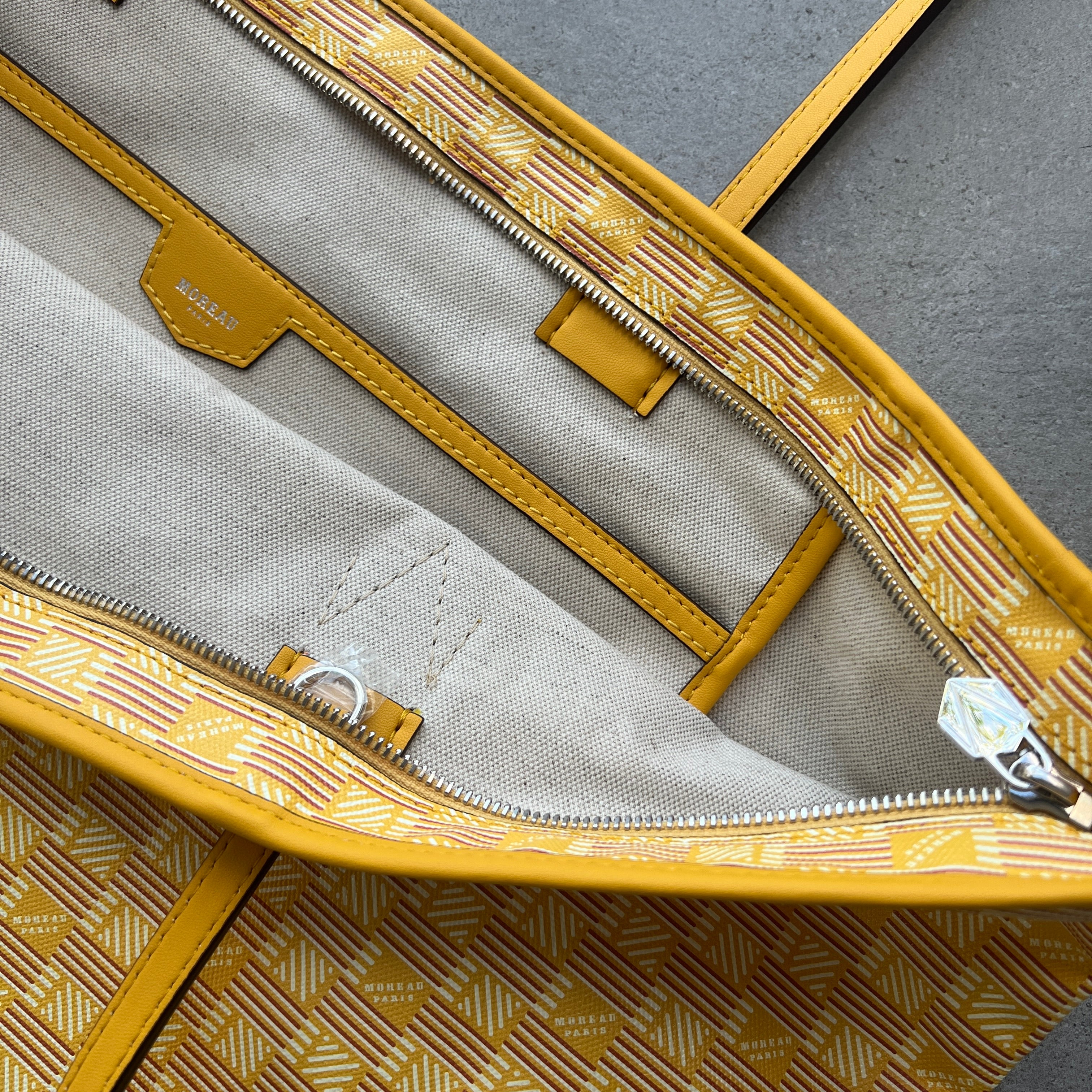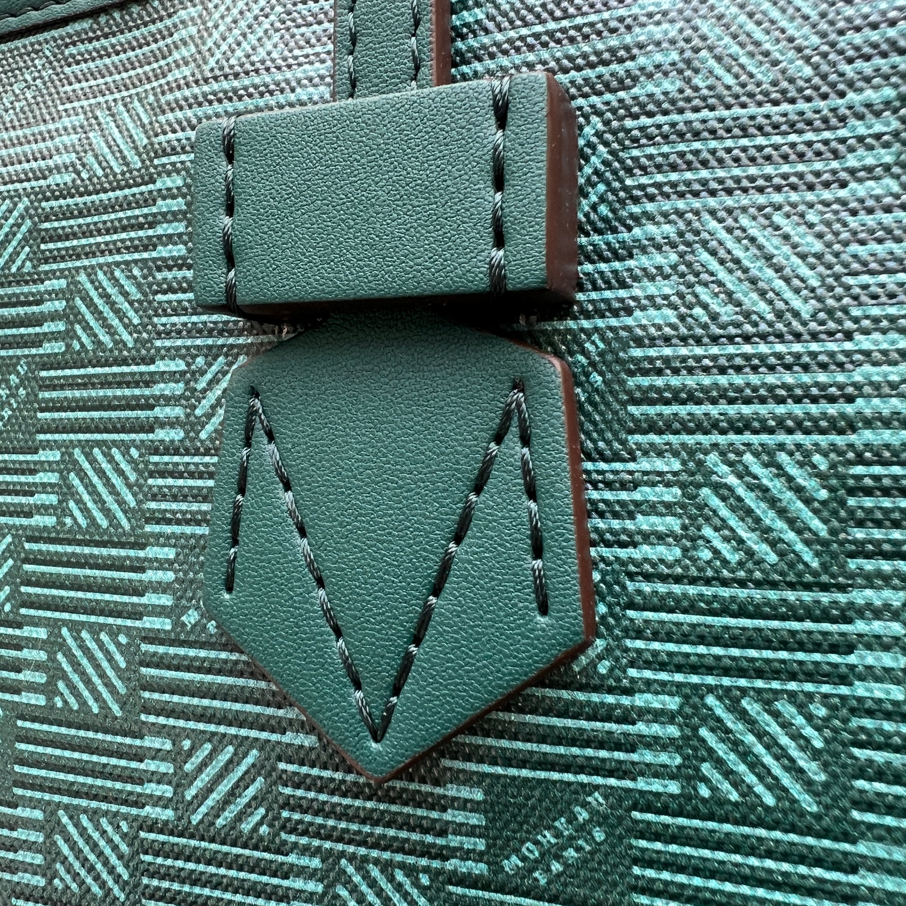 The iconic pattern of Maison Moreau is inspired by the intertwining of wicker stems, which formed the structure of different travel goods in the late 19th century. This unique signature print is reimagined on calf leather with a traditional printing technique that uses a semi-manual paint application, creating vibrant and deep colours.