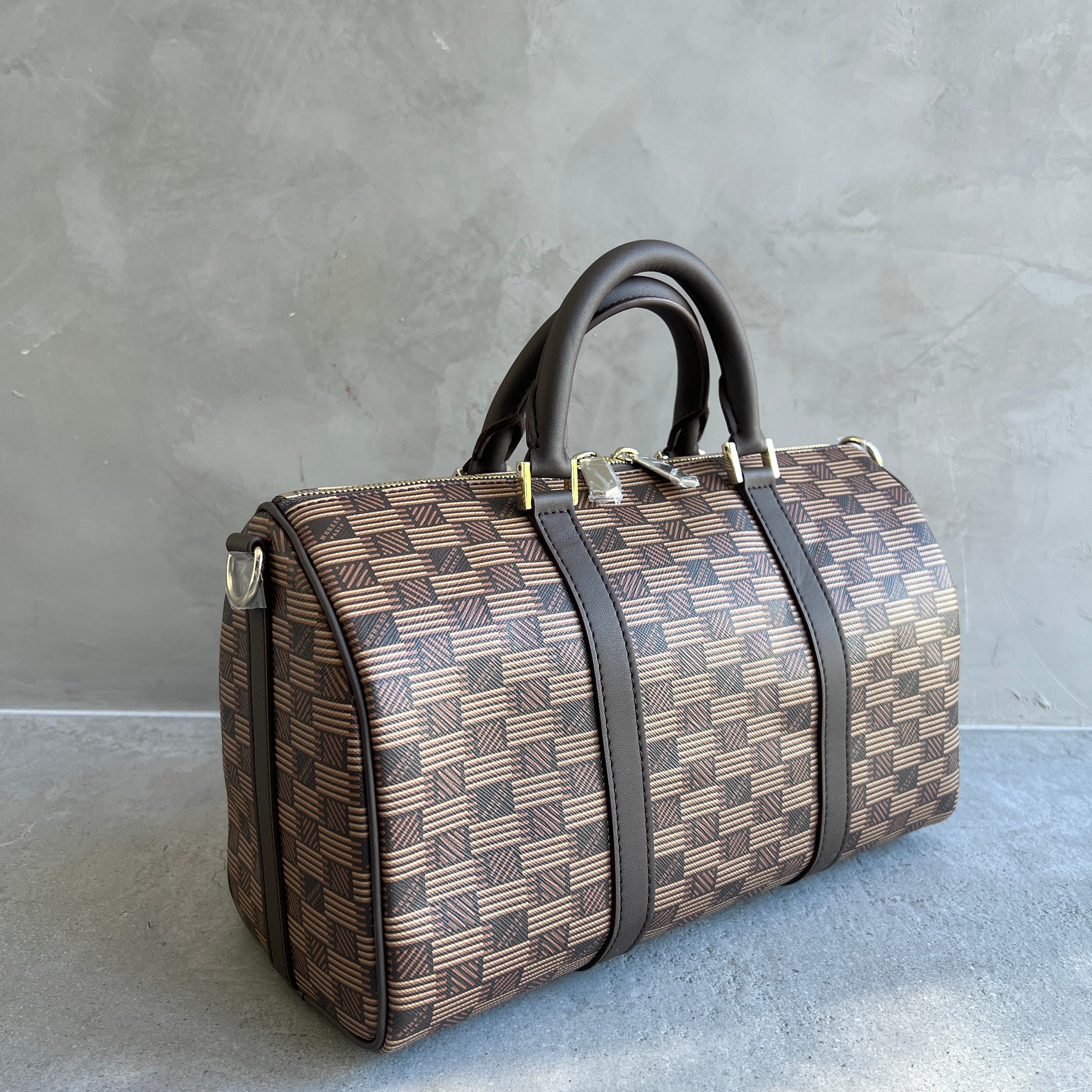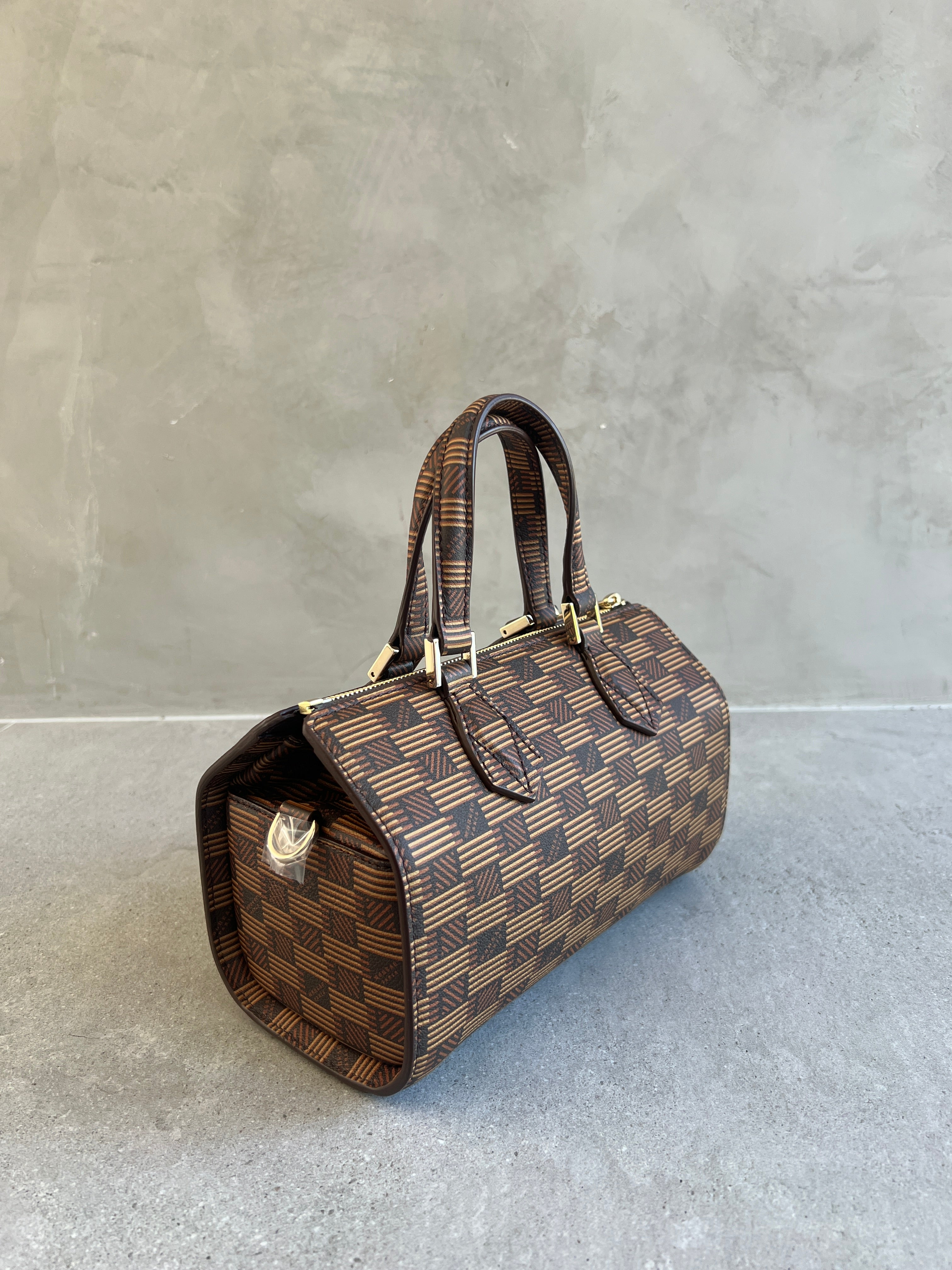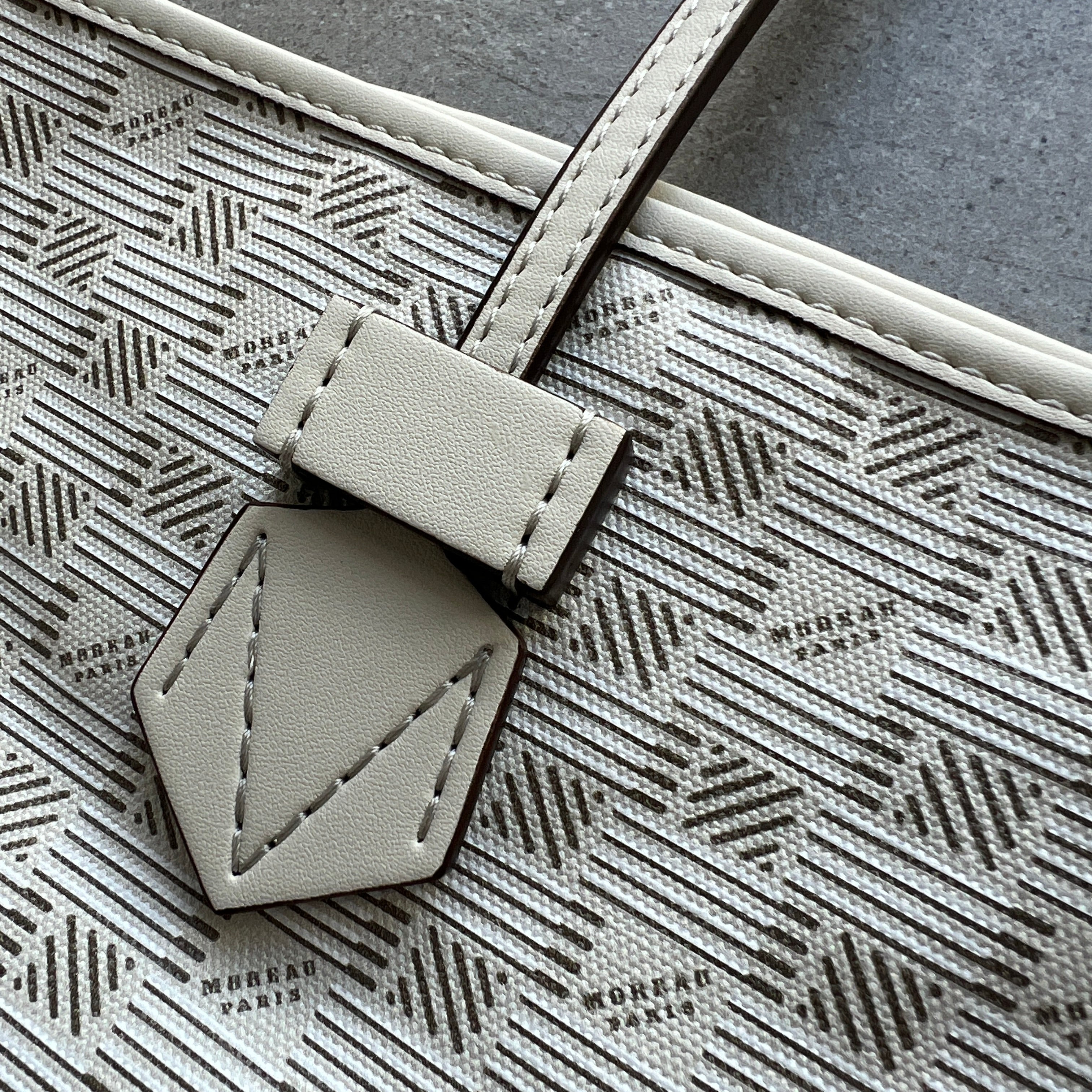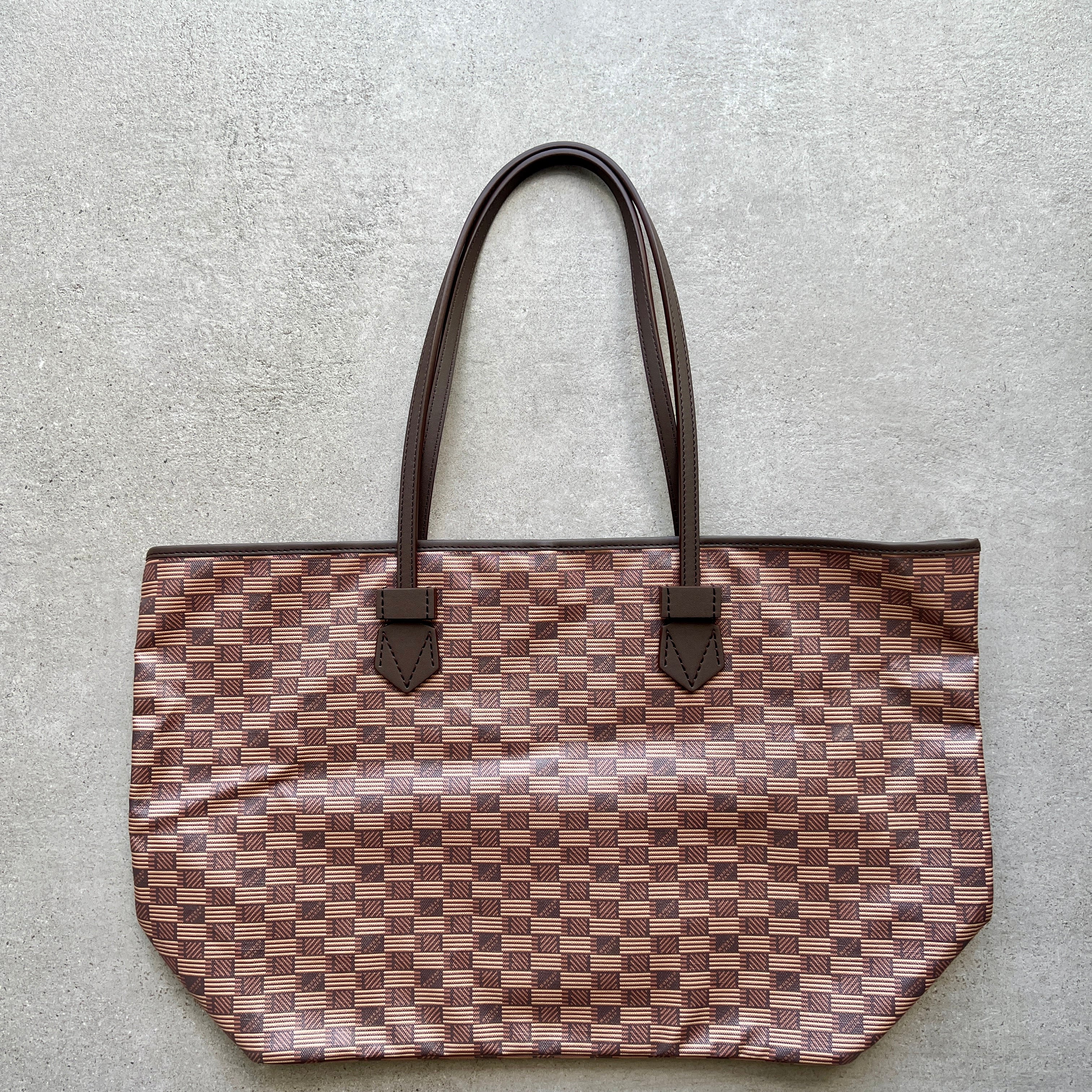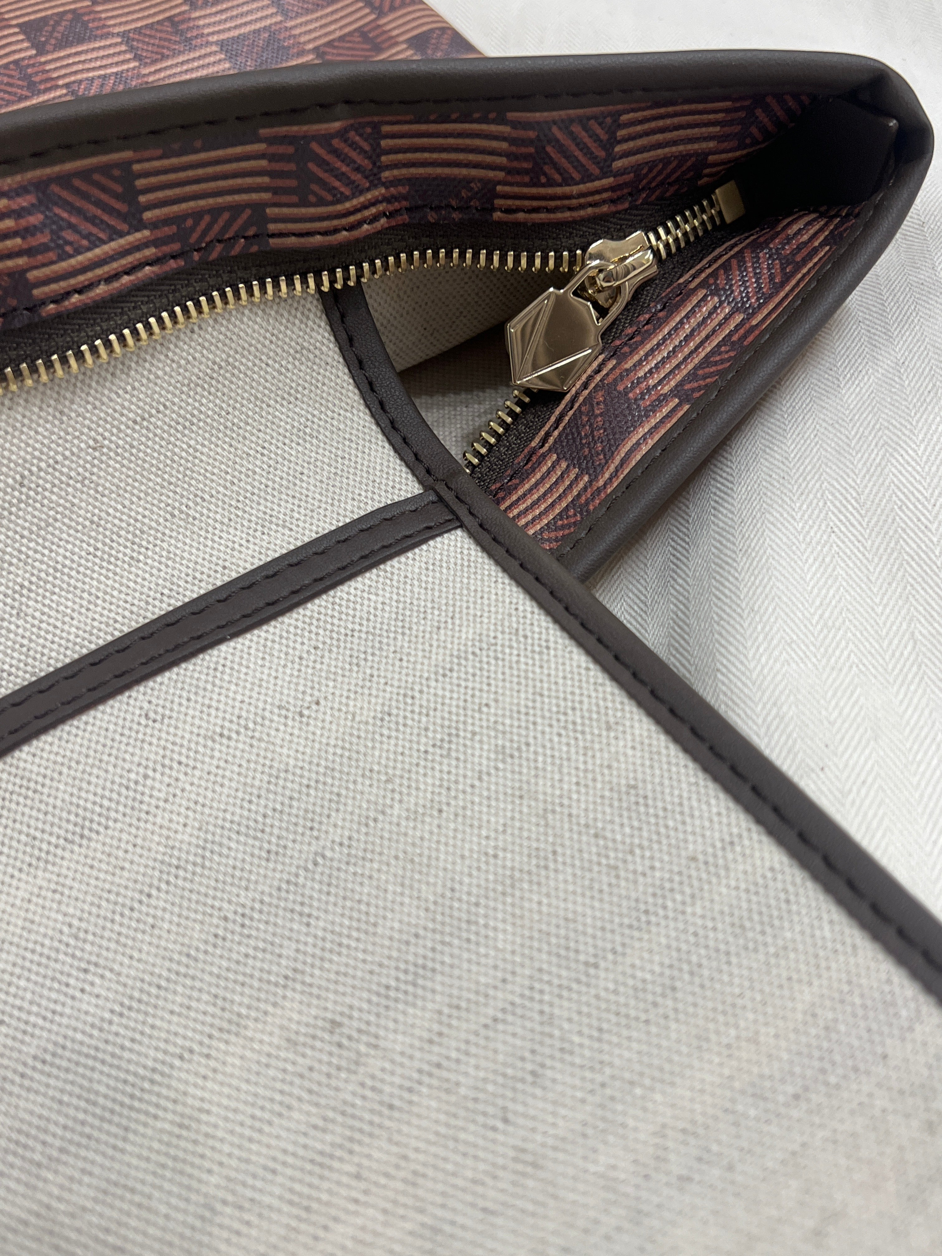 The iconic pattern of Maison Moreau is inspired by the intertwining of wicker stems, which formed the structure of different travel goods in the late 19th century. This unique signature print is reimagined on calf leather with a traditional printing technique that uses a semi-manual paint application, creating vibrant and deep colours.