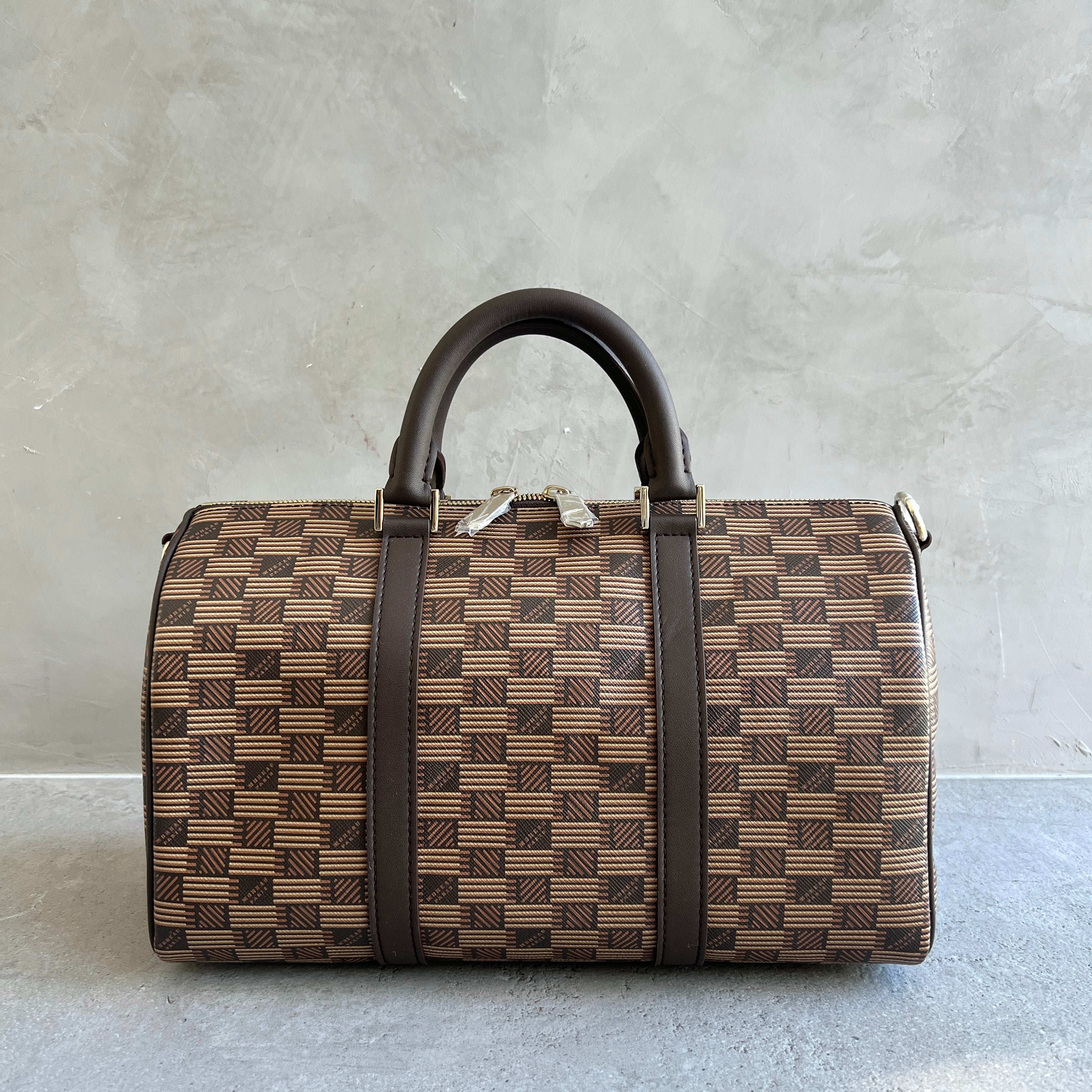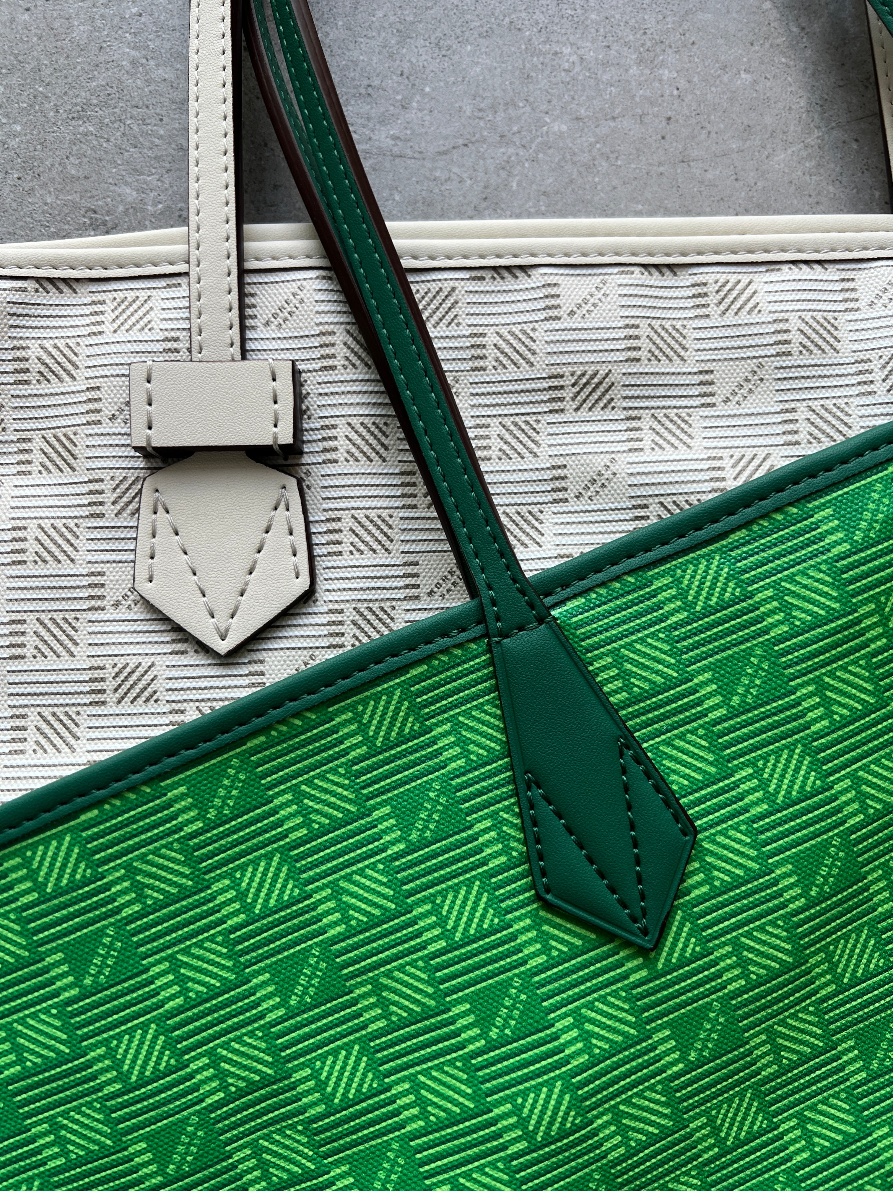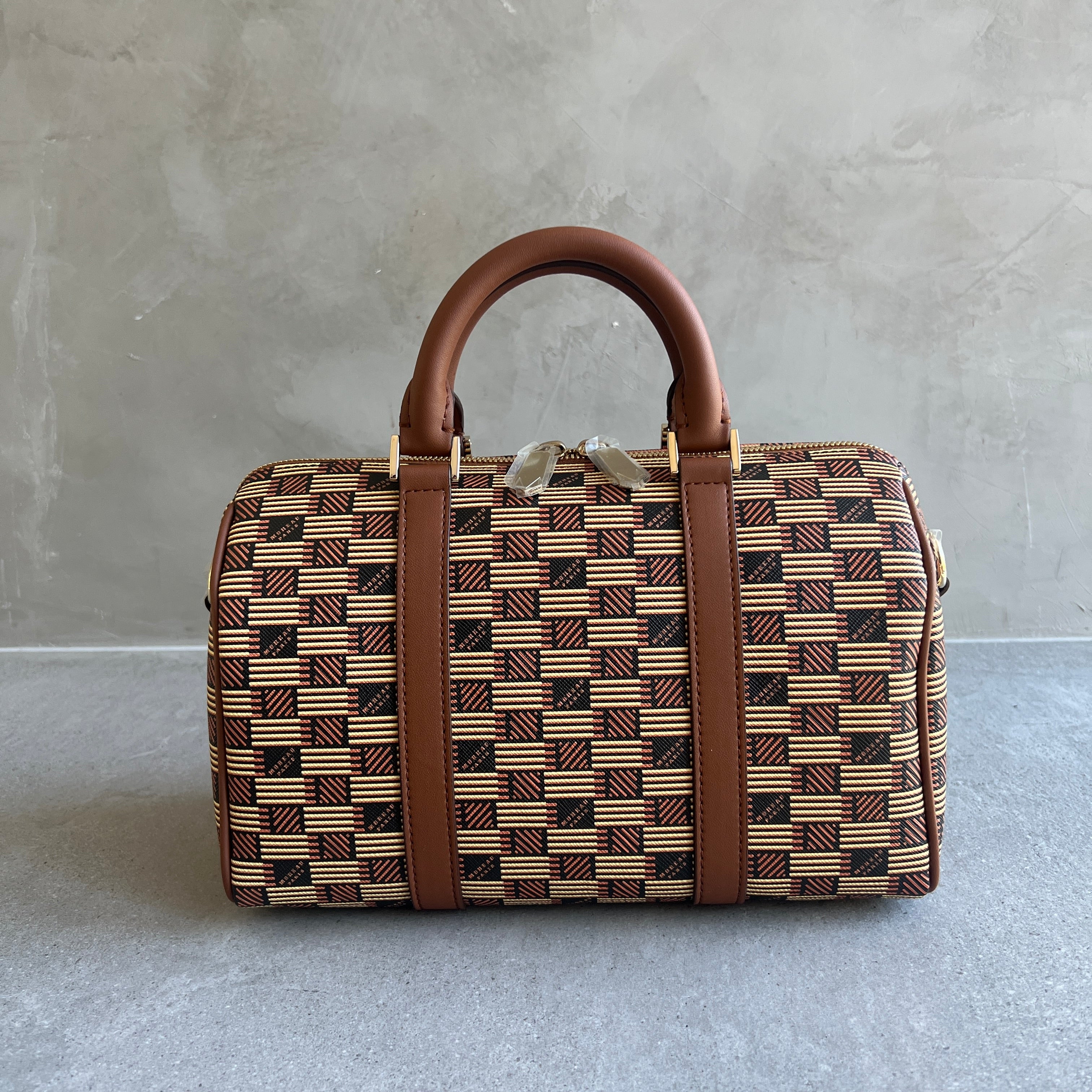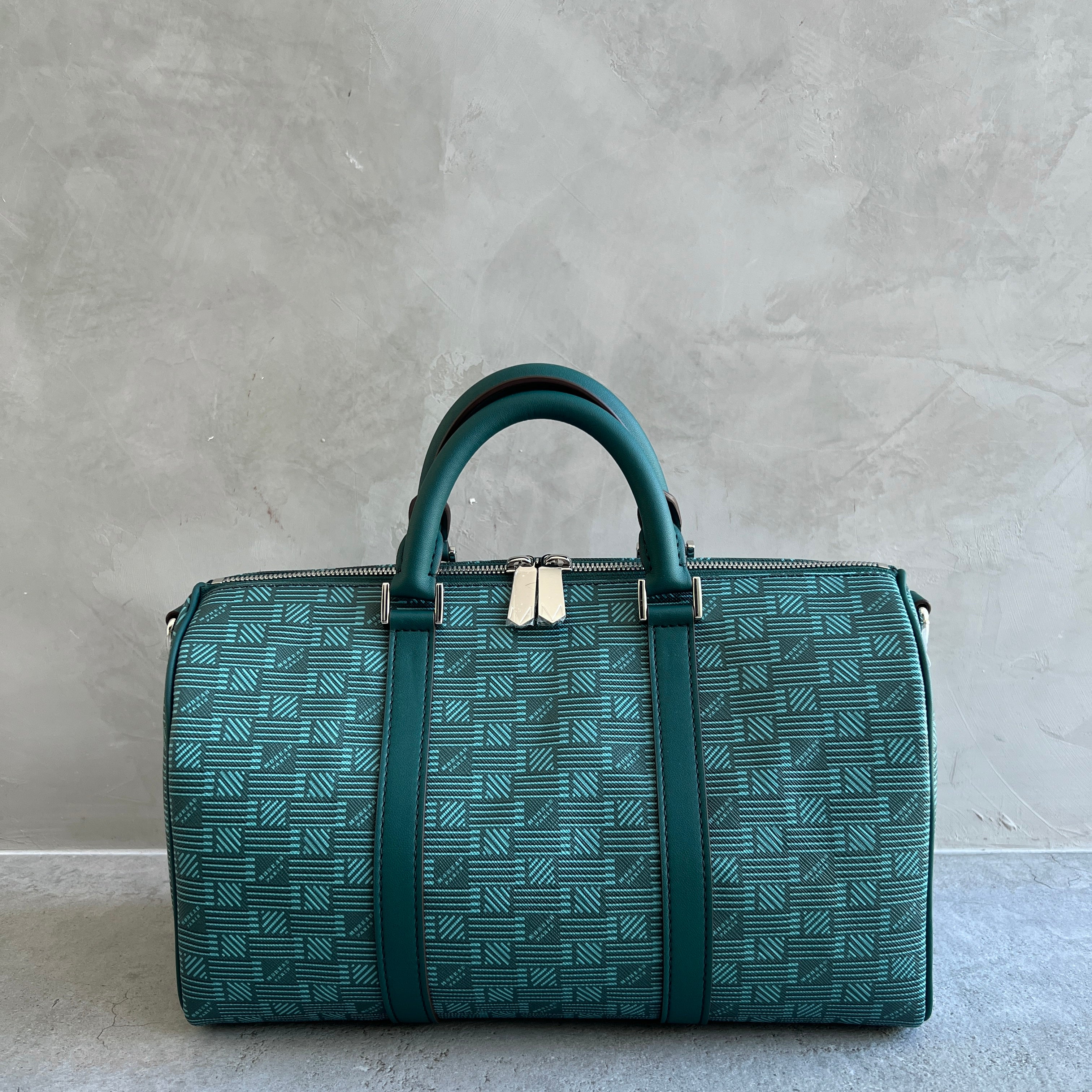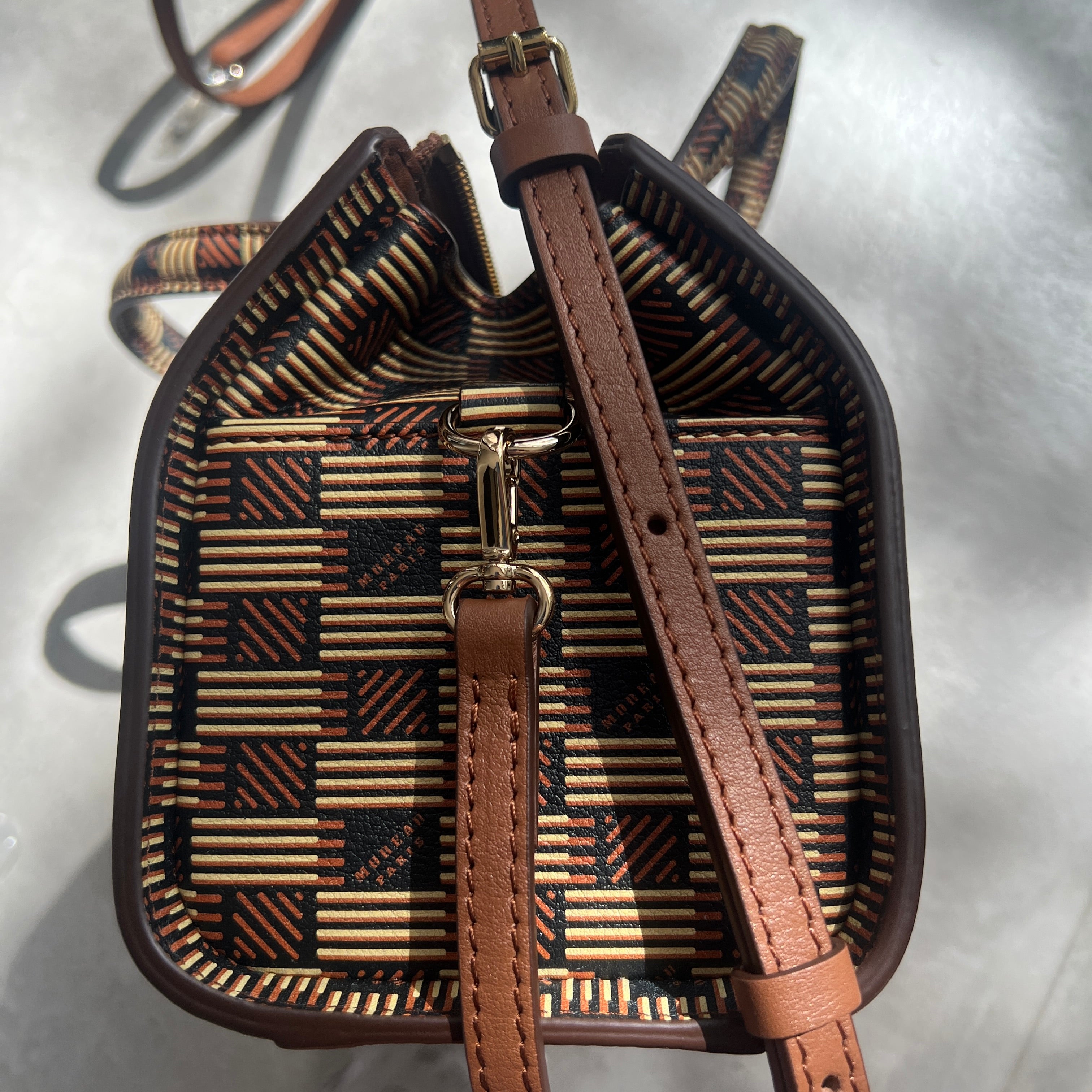 The iconic pattern of Maison Moreau is inspired by the intertwining of wicker stems, which formed the structure of different travel goods in the late 19th century. This unique signature print is reimagined on calf leather with a traditional printing technique that uses a semi-manual paint application, creating vibrant and deep colours.