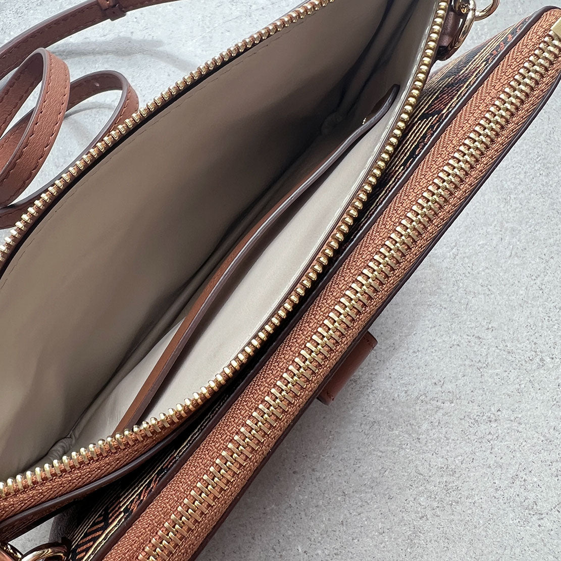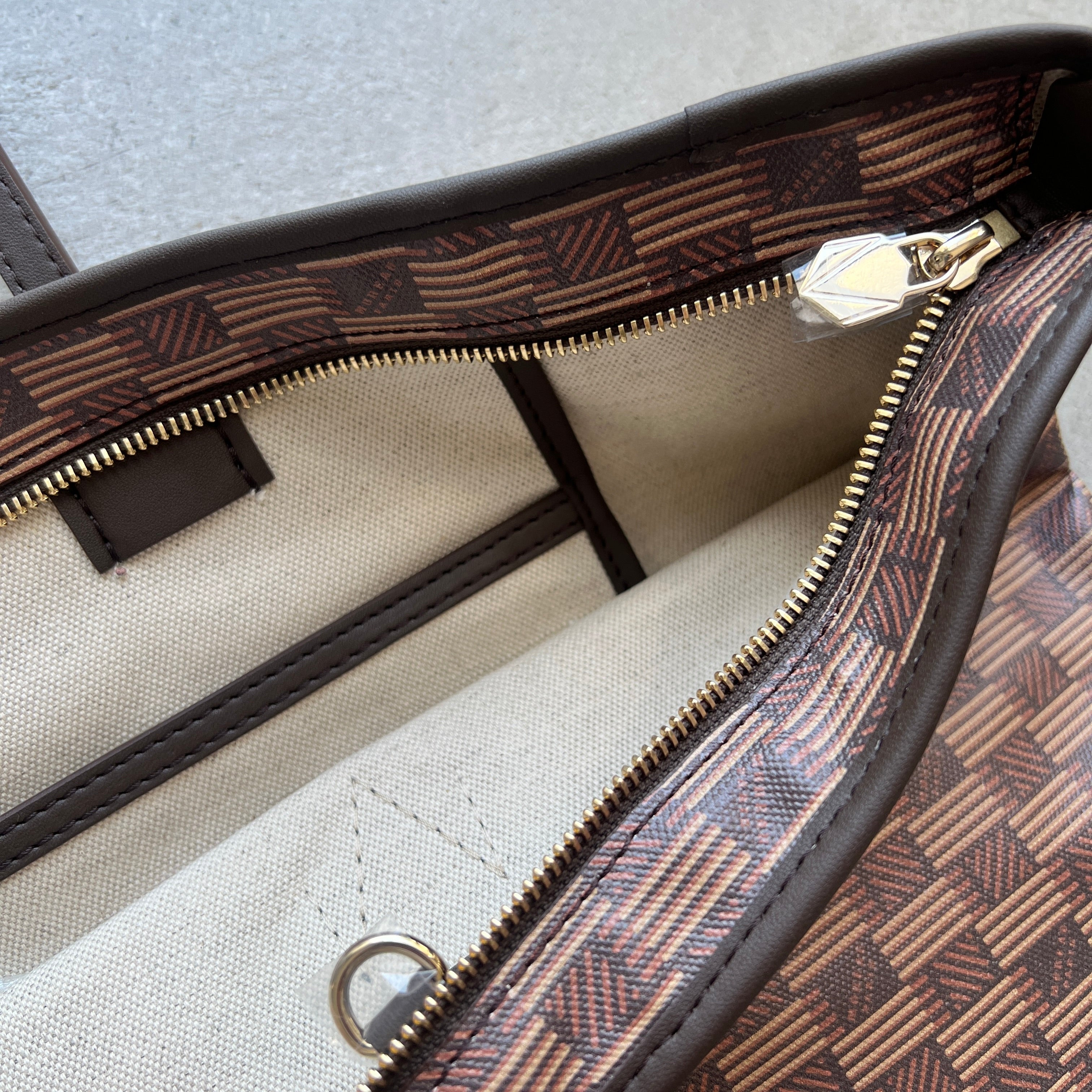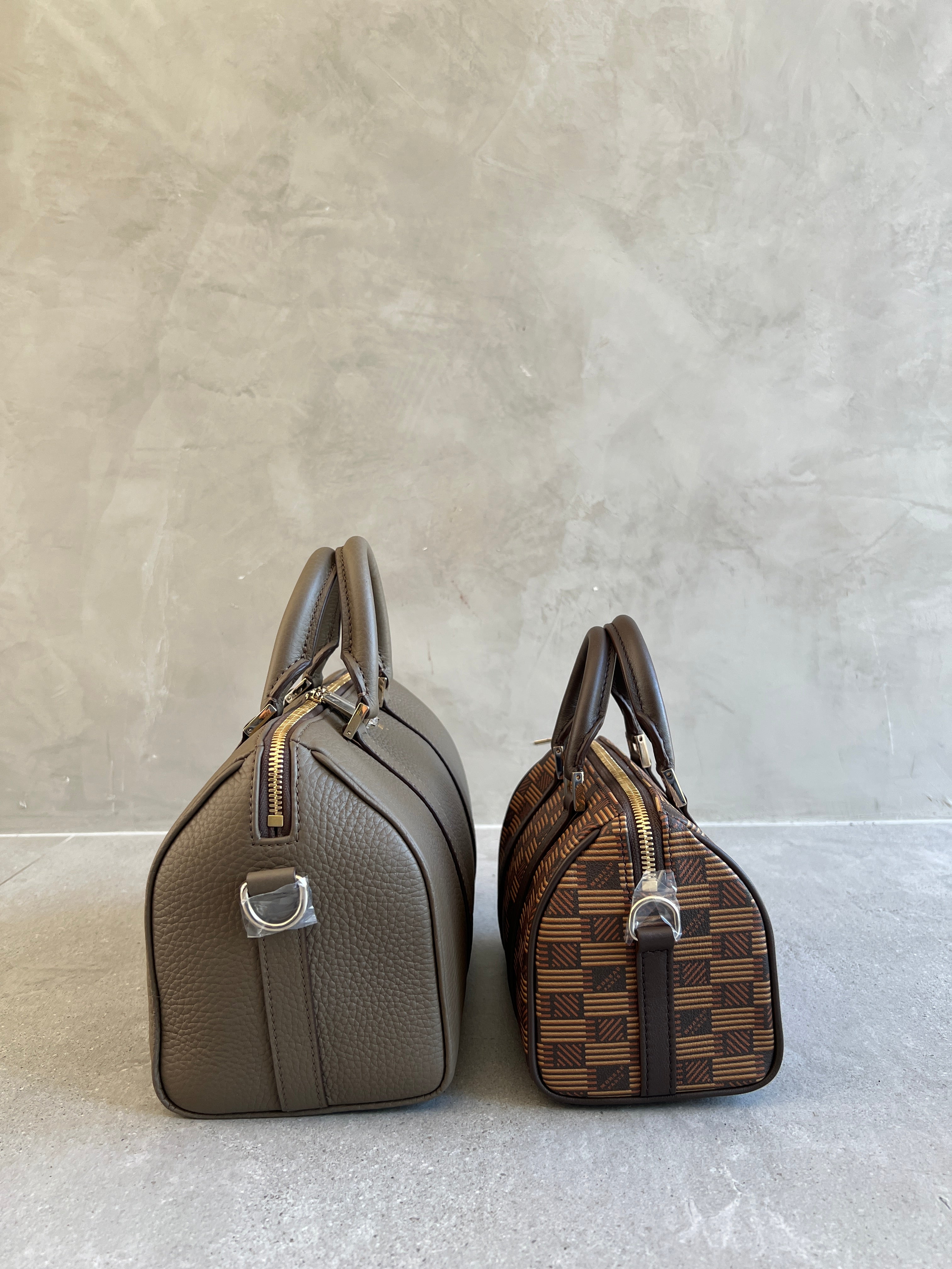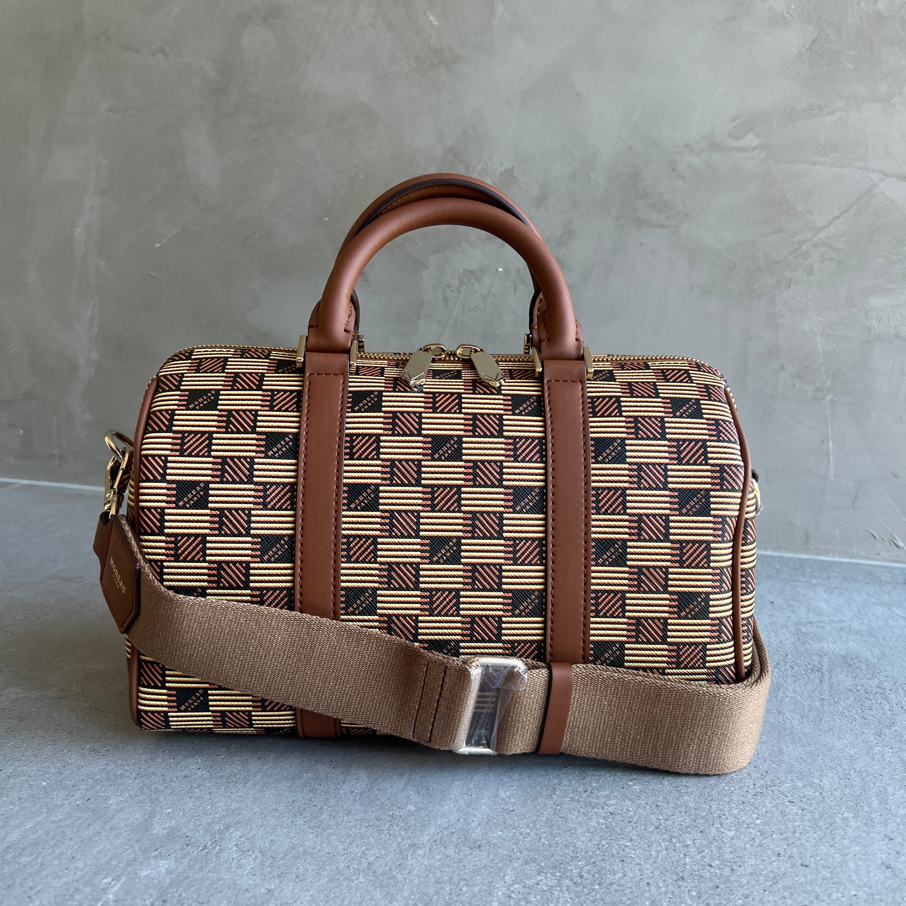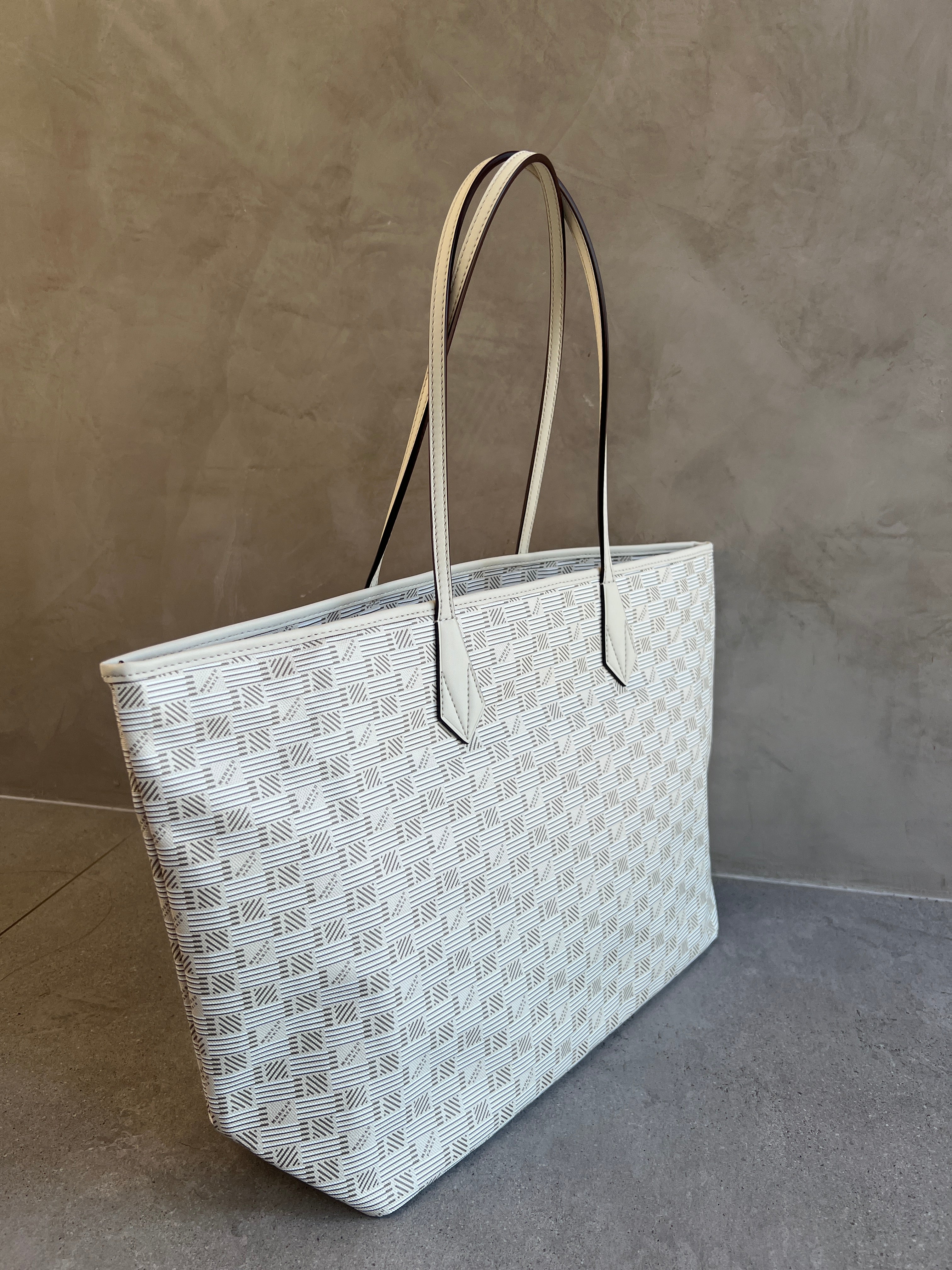 The iconic pattern of Maison Moreau is inspired by the intertwining of wicker stems, which formed the structure of different travel goods in the late 19th century. This unique signature print is reimagined on calf leather with a traditional printing technique that uses a semi-manual paint application, creating vibrant and deep colours.