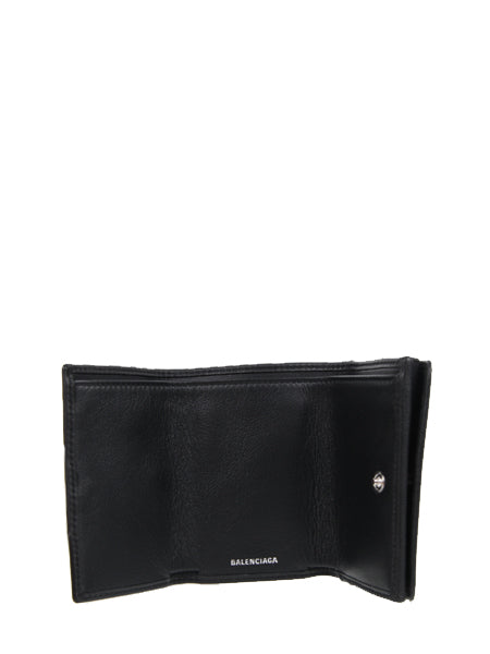 Balenciaga tiny petite wallet features a coin section with snap fastening, 3 card slots, and 1 bill compartment.
