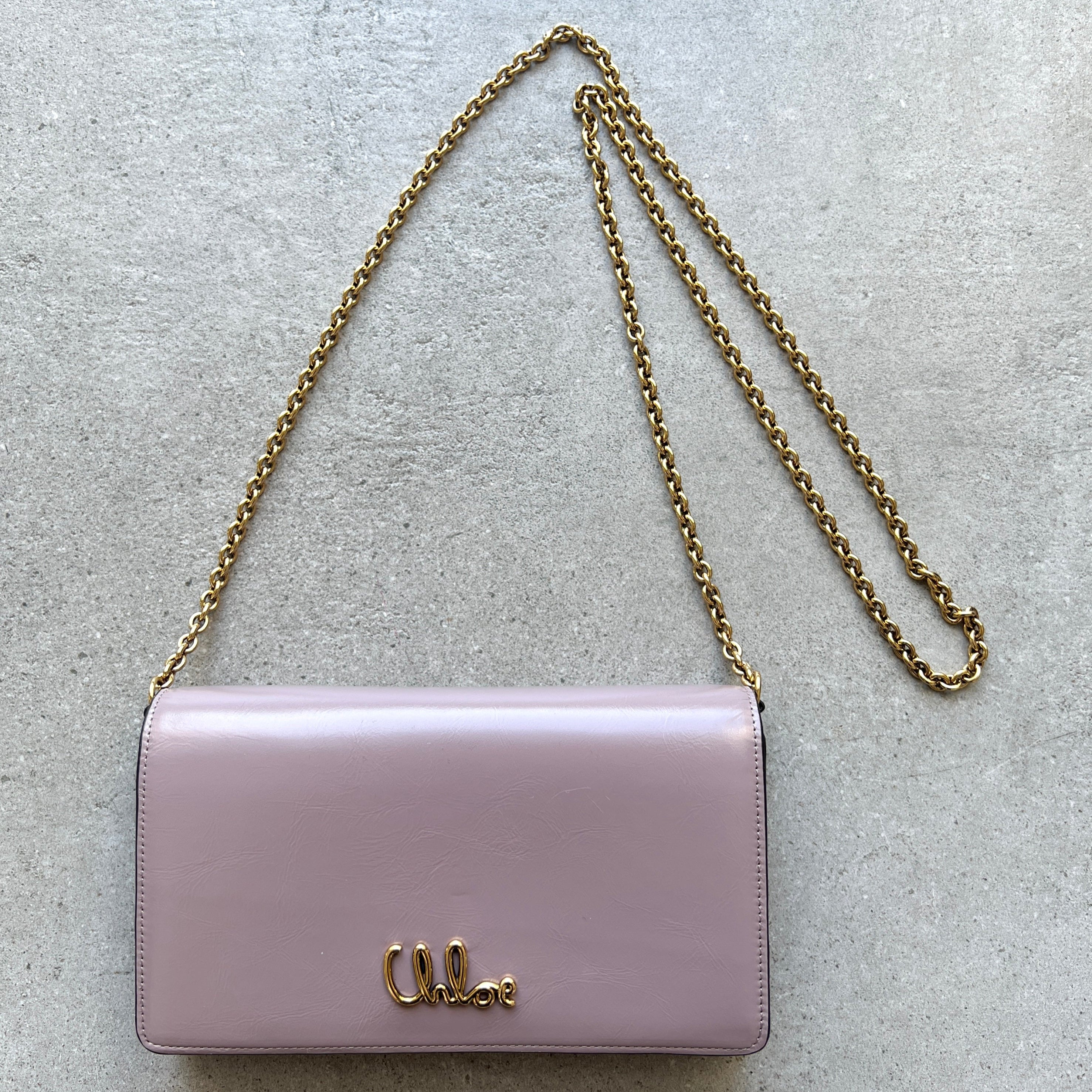 Crafted from shiny calfskin, the Chloé Iconic flap wallet on chain combines a minimalist silhouette with a metallic signature from the Maison's archives.