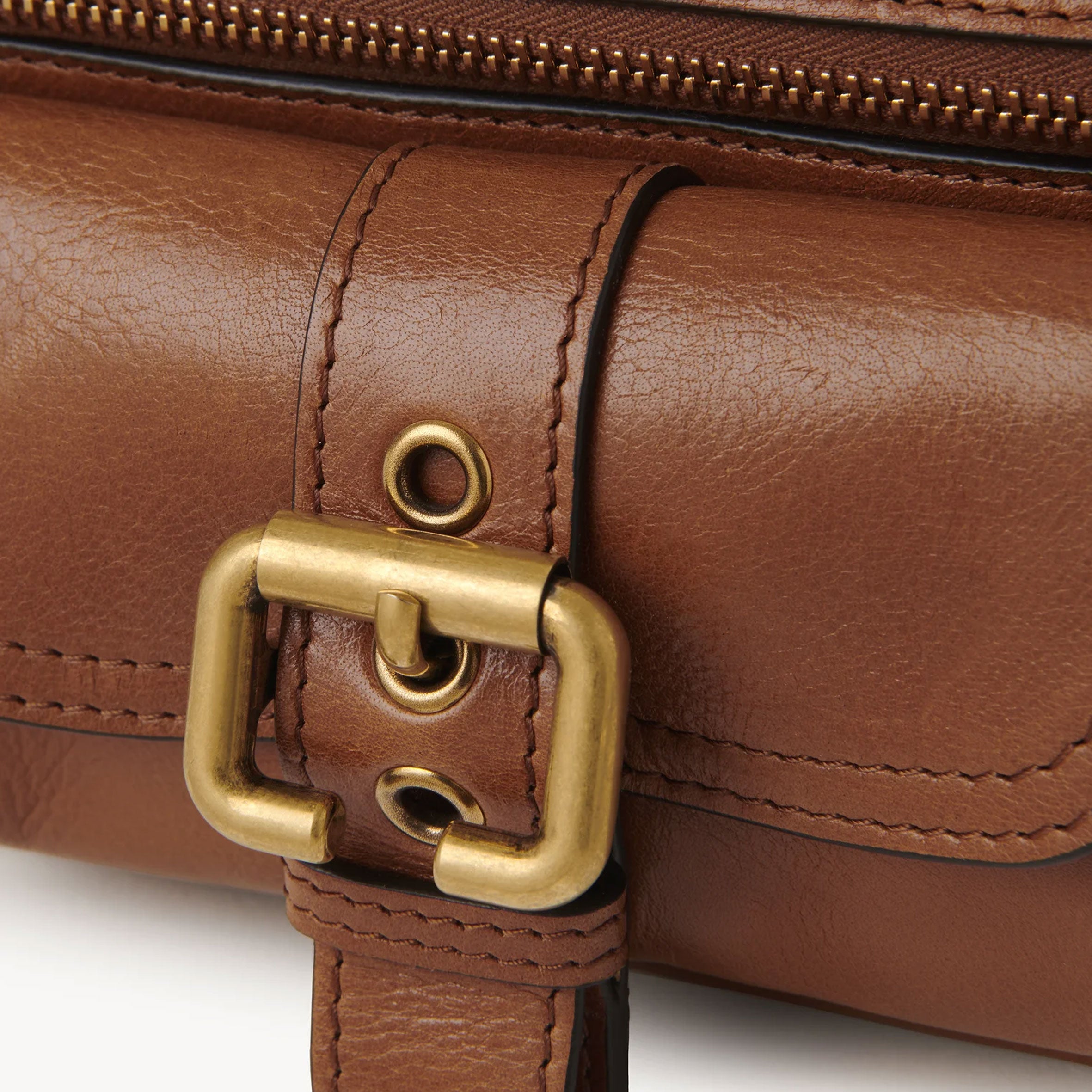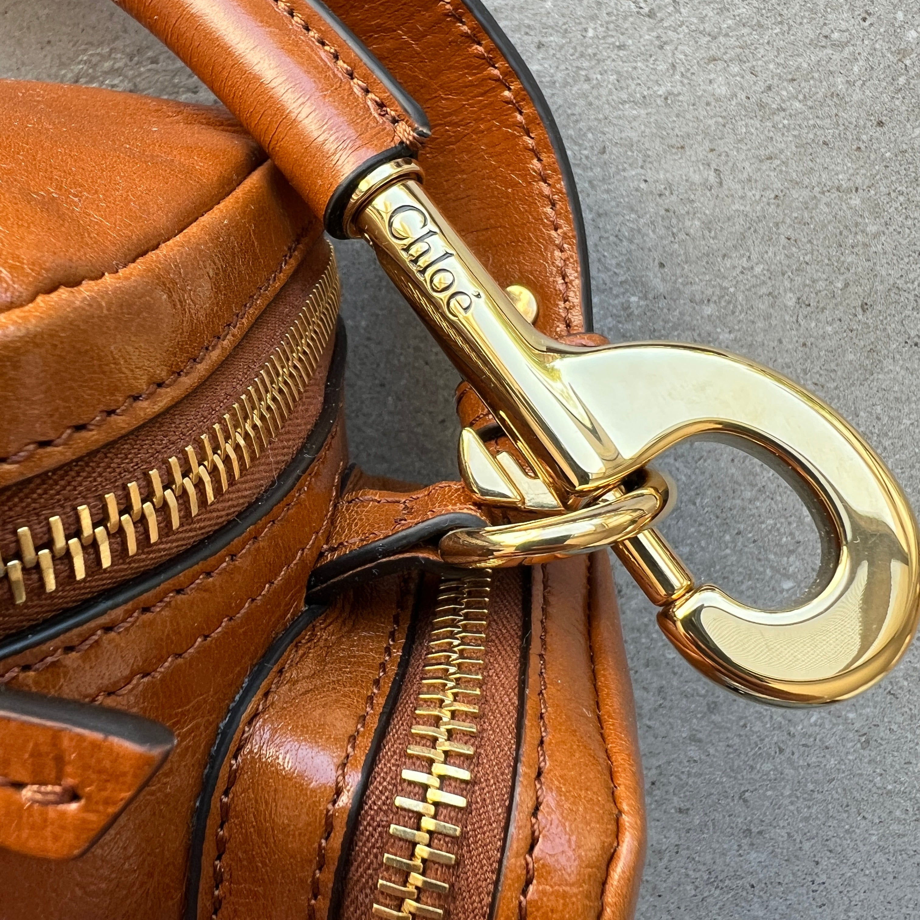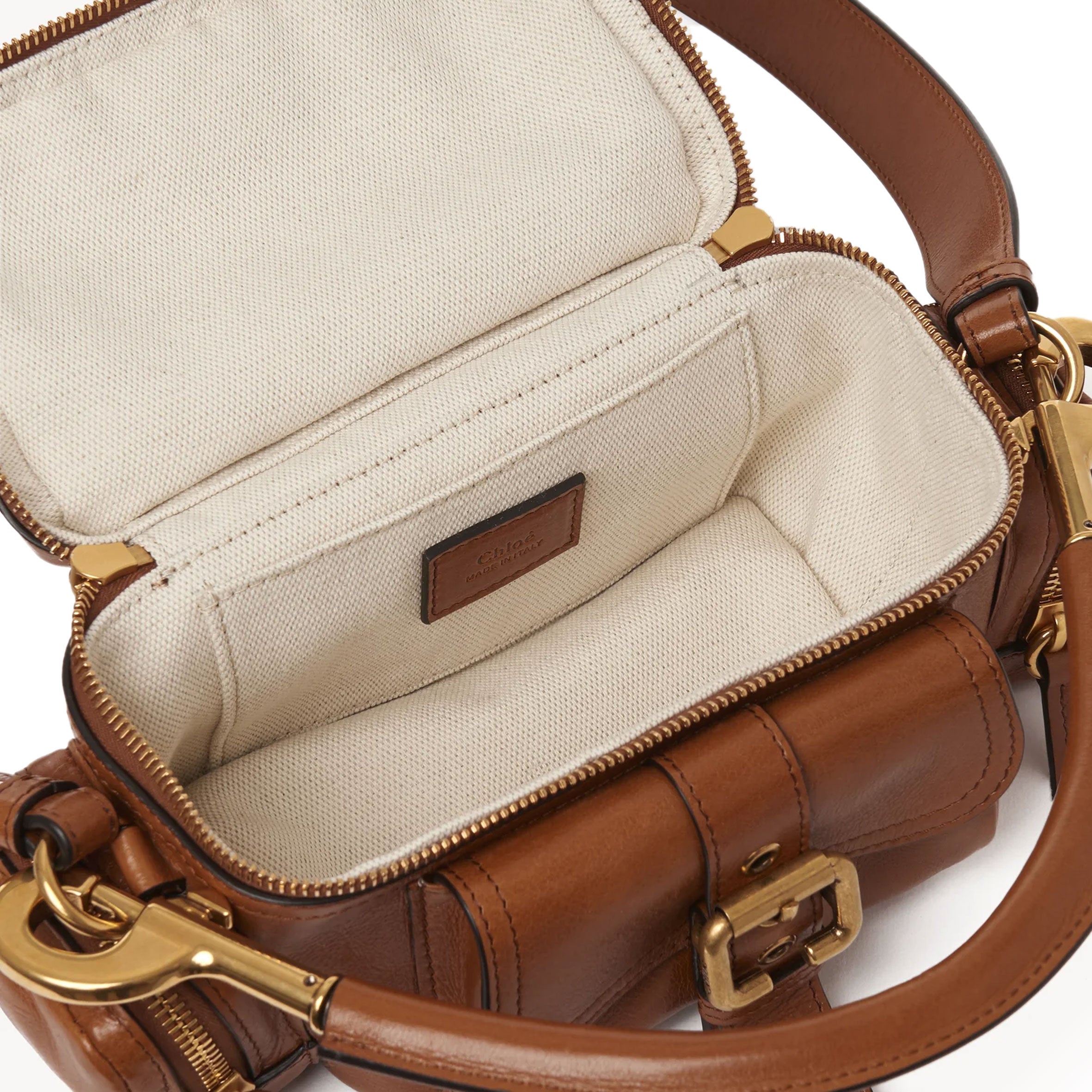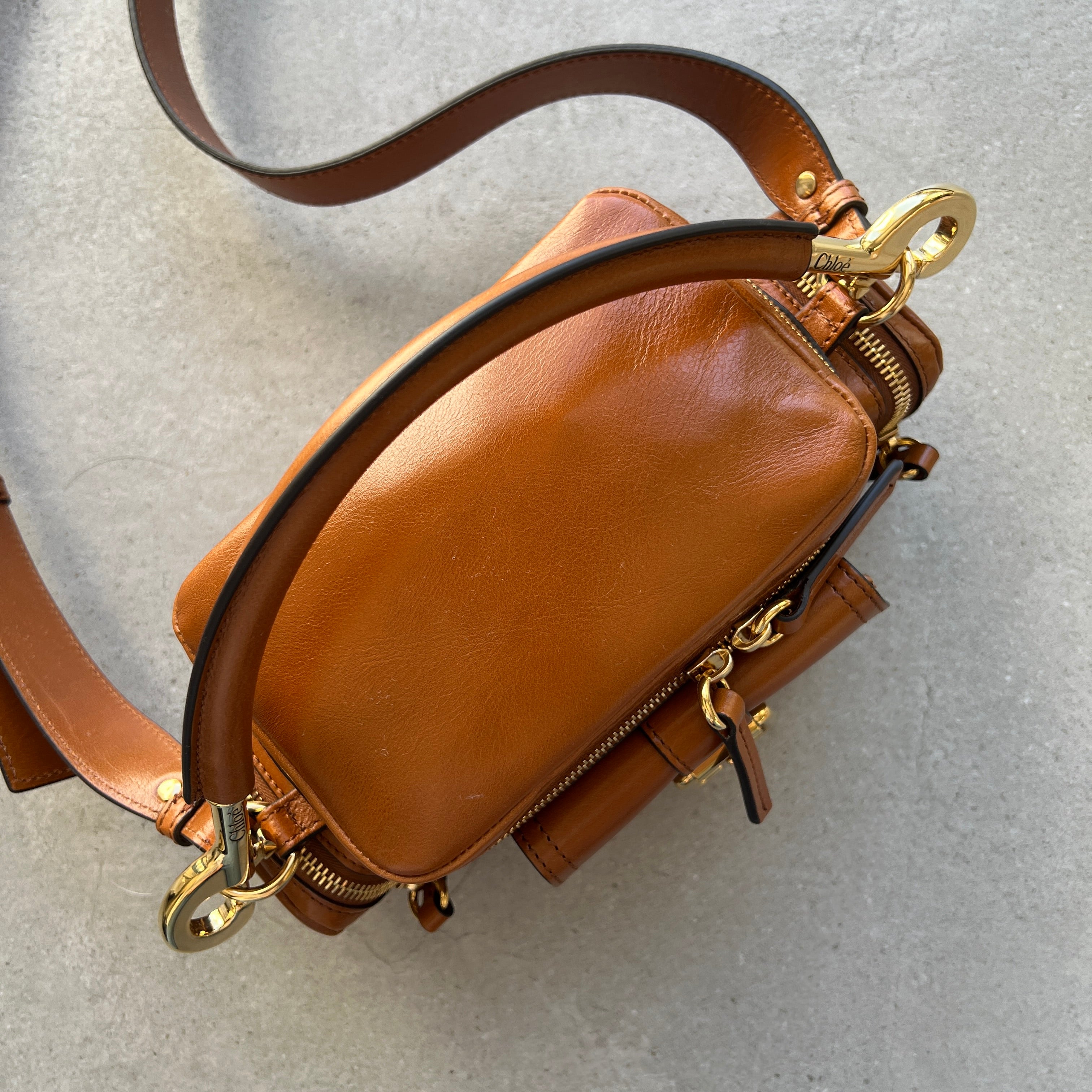 This small Camera bag is crafted from natural shiny buffalo leather. Its multiple pockets are embellished with revamped zippers and buckles from the iconic Paddington bag.