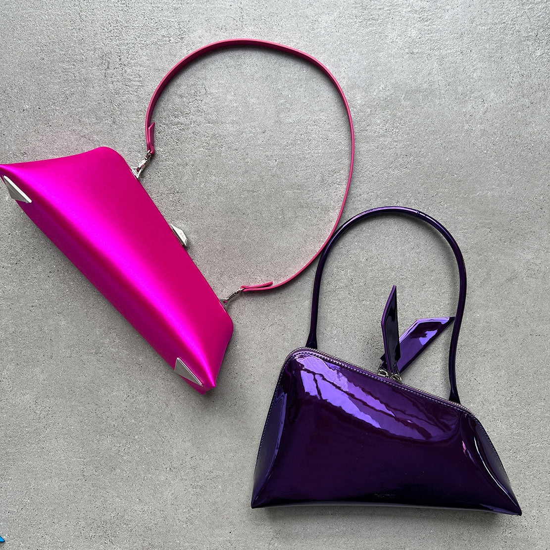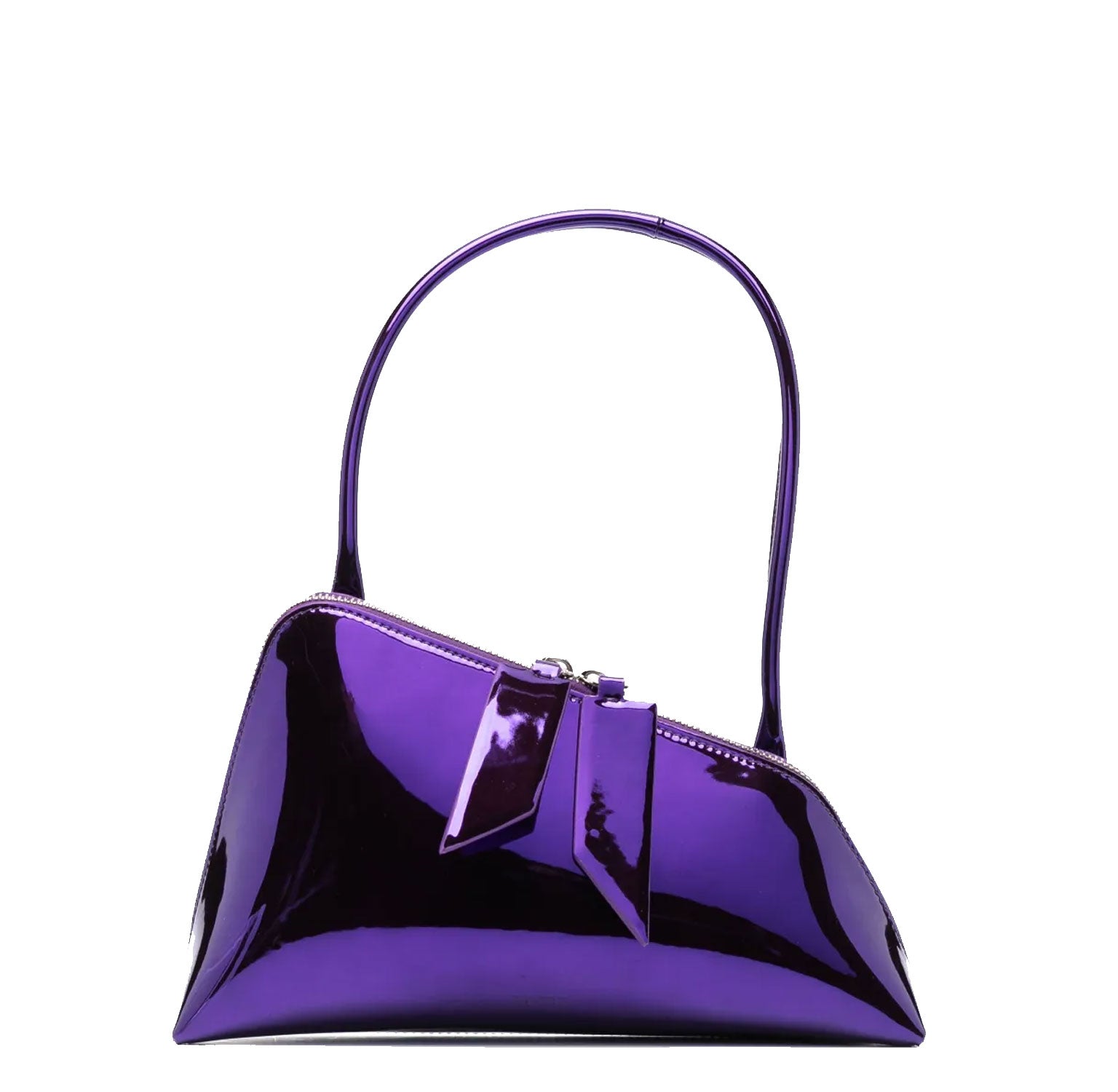 "Sunrise" shoulder bag in emerald laminated material with shoulder strap and ziptop closure.