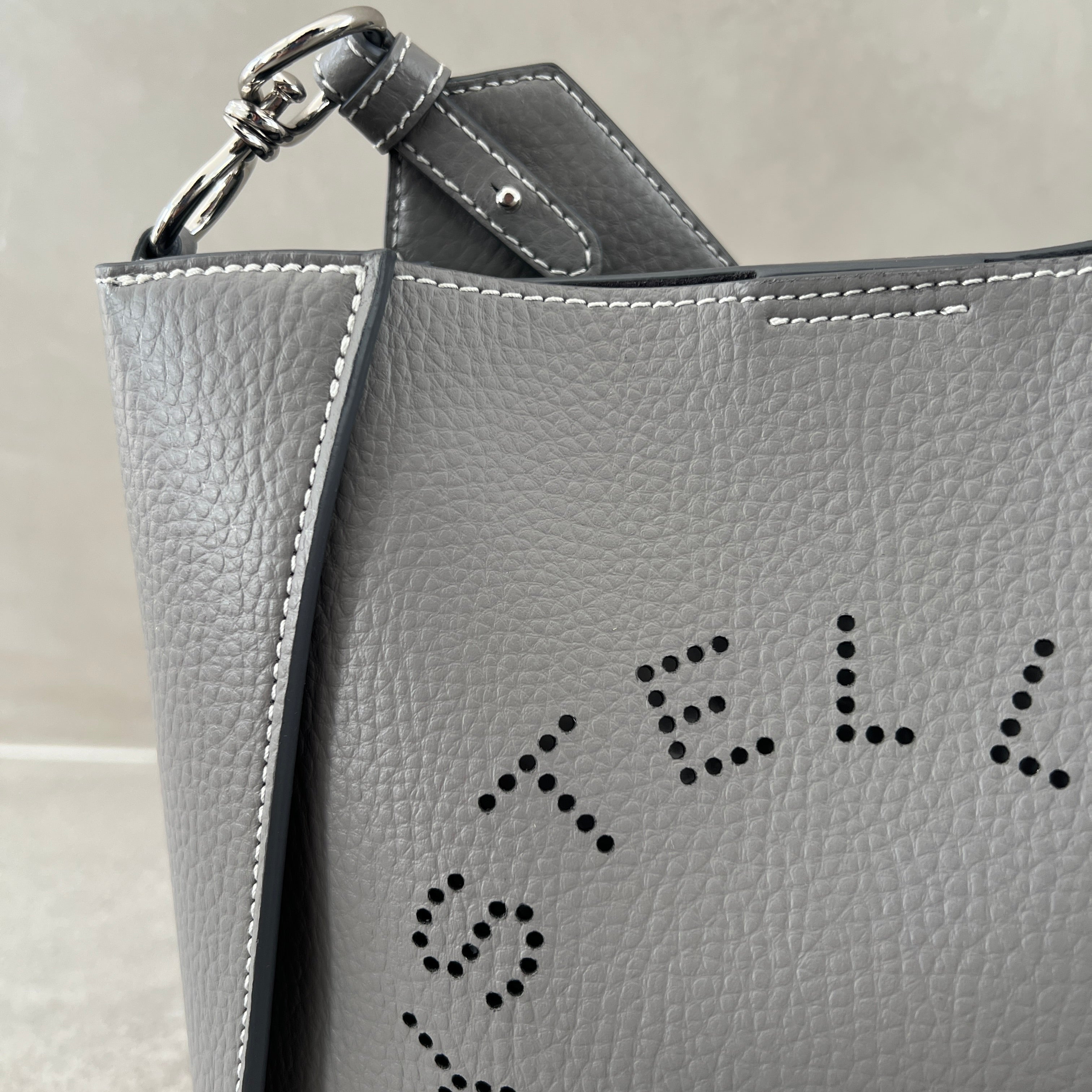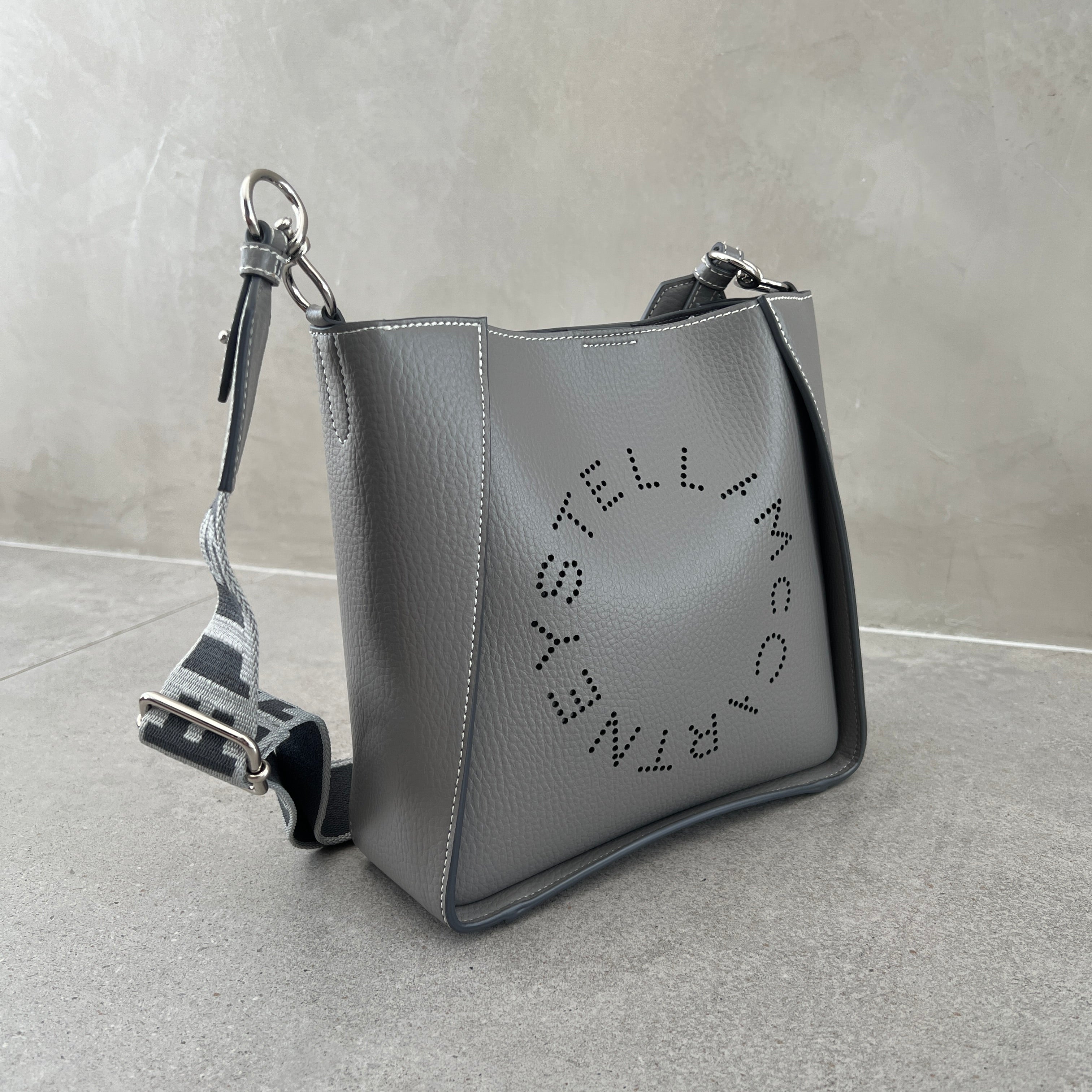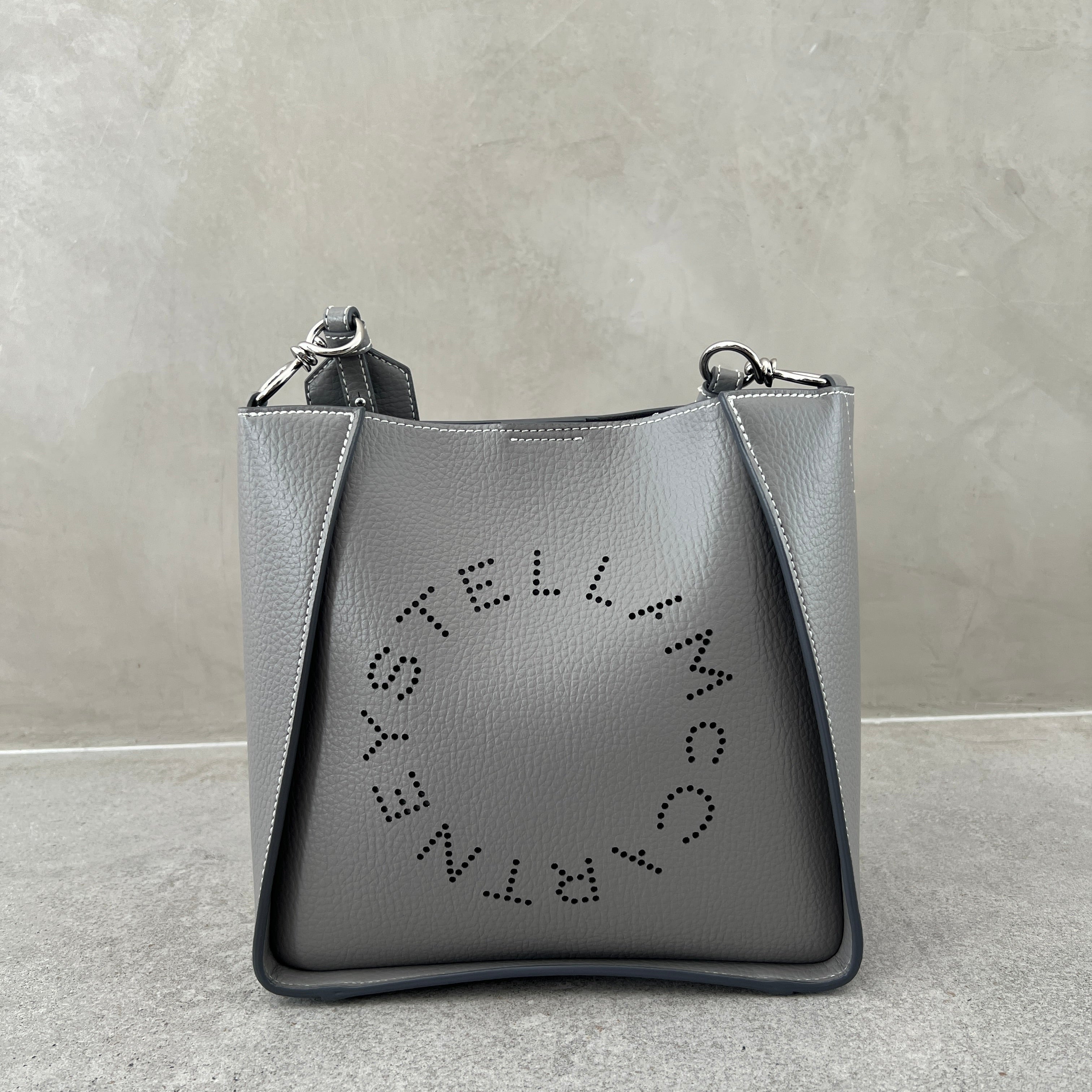 Stella Logo Mini Crossbody Hobo Grain Perforated, Smoke