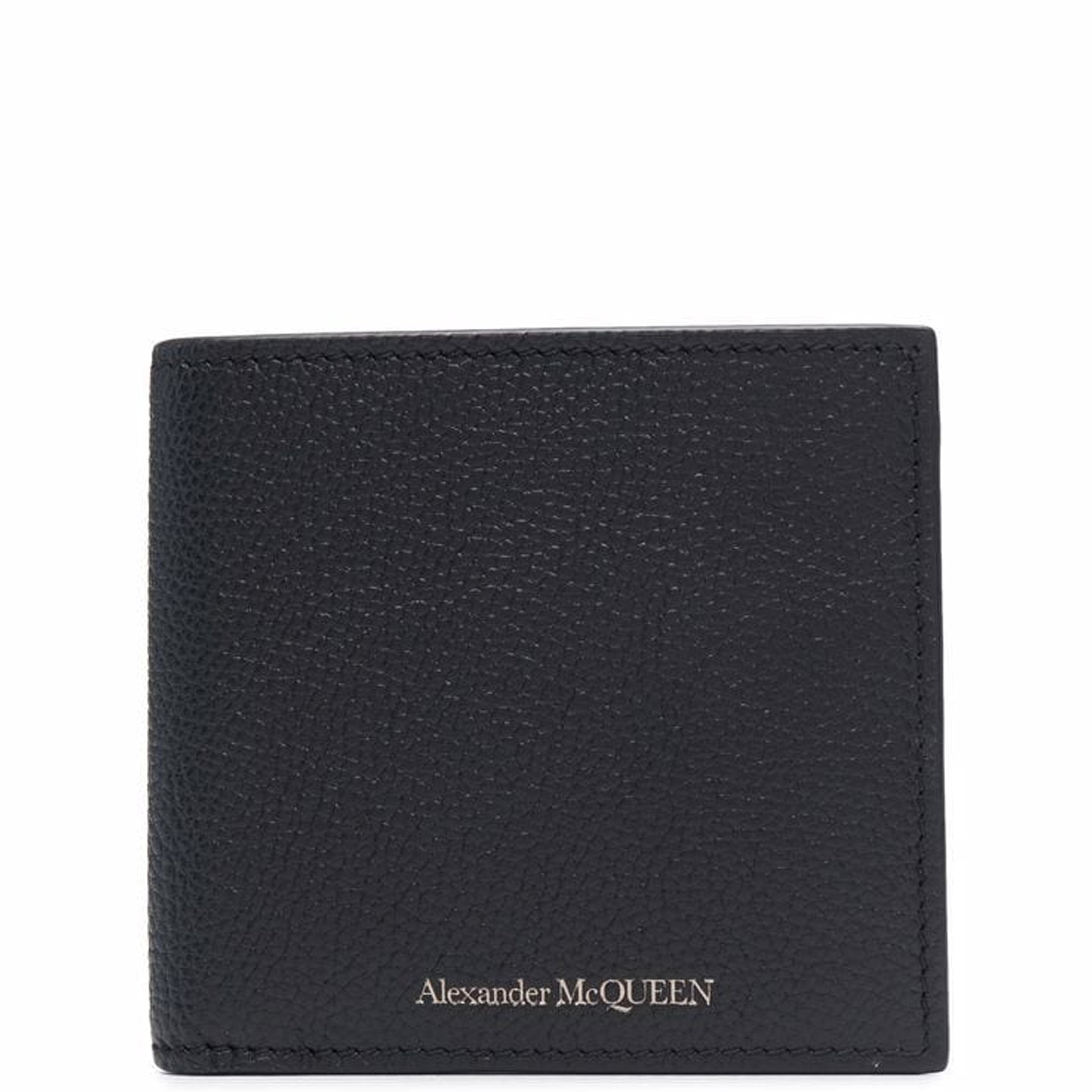 Calf leather billfold wallet featuring Alexander McQueen Logo. The wallet has eight card slots, two flat pockets and two bill compartments.