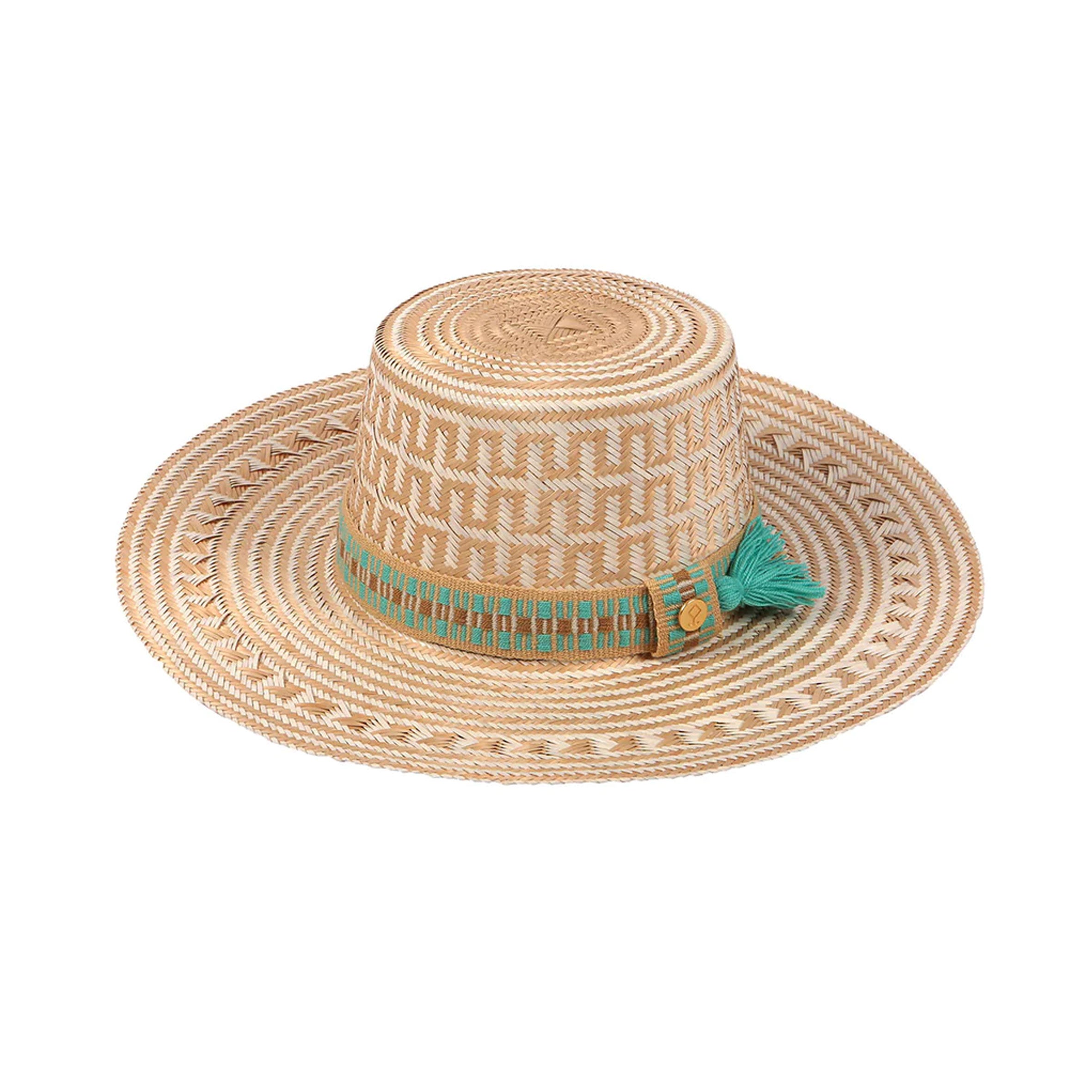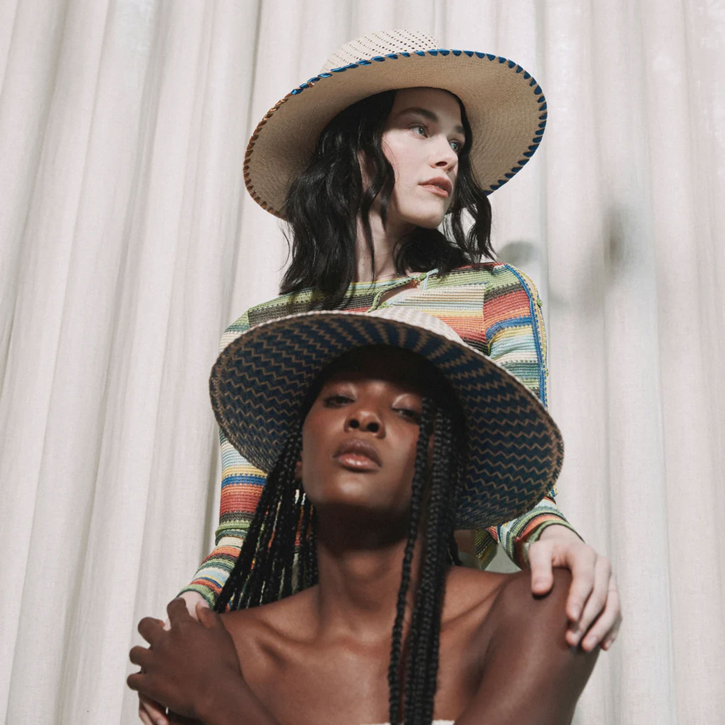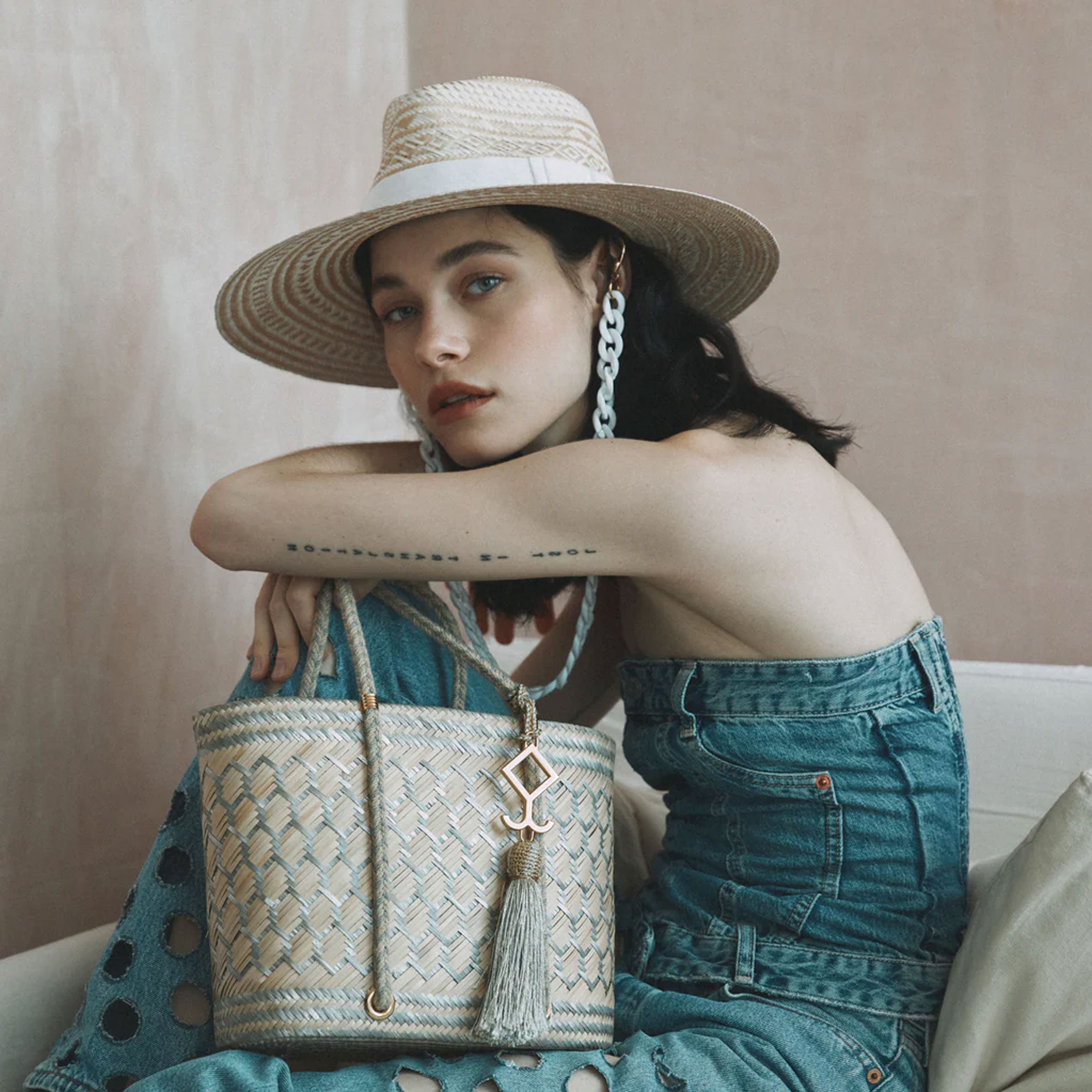 In 2015, London-based designer Yosuzi Sylvester founded her eponymous brand featuring a collection of whimsical hats after traveling to her native Venezuela and becoming inspired by the local millinery craftsmanship. Working with indigenous artisans in the country’s La Guajira desert, the label finishes each hand-woven hat, trims and Yosuzi’s ancestral crest, now also the brand’s logo. Since its debut, the line has expanded to include straw