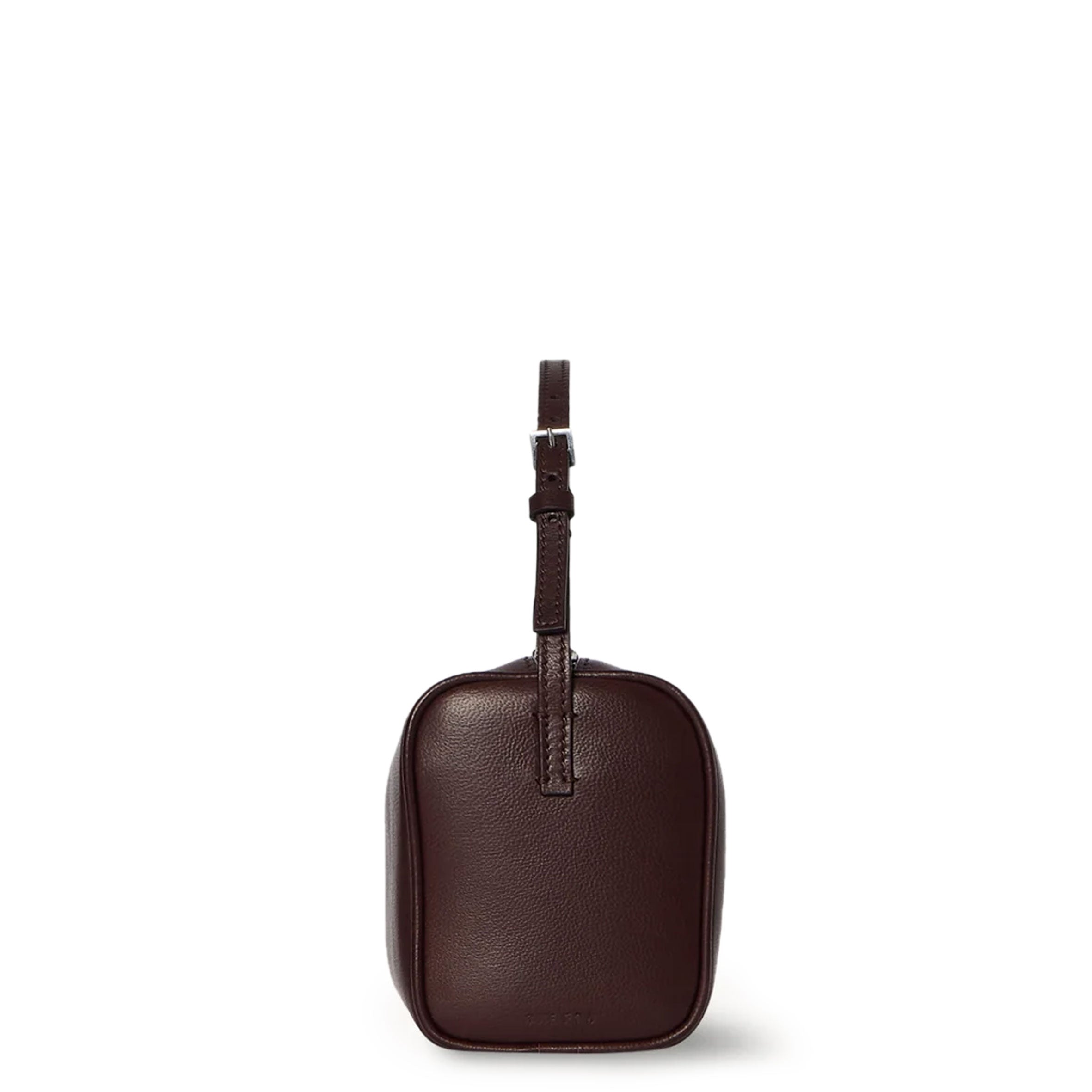 Top handle bag in buttery lambskin leather with softly rounded edges, leather piping, and adjustable slim leather strap.