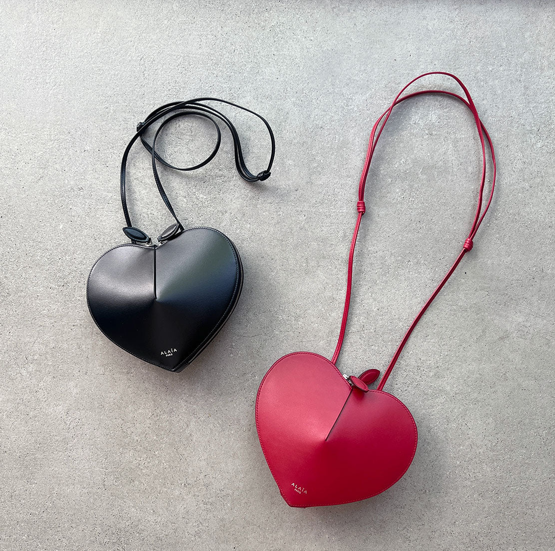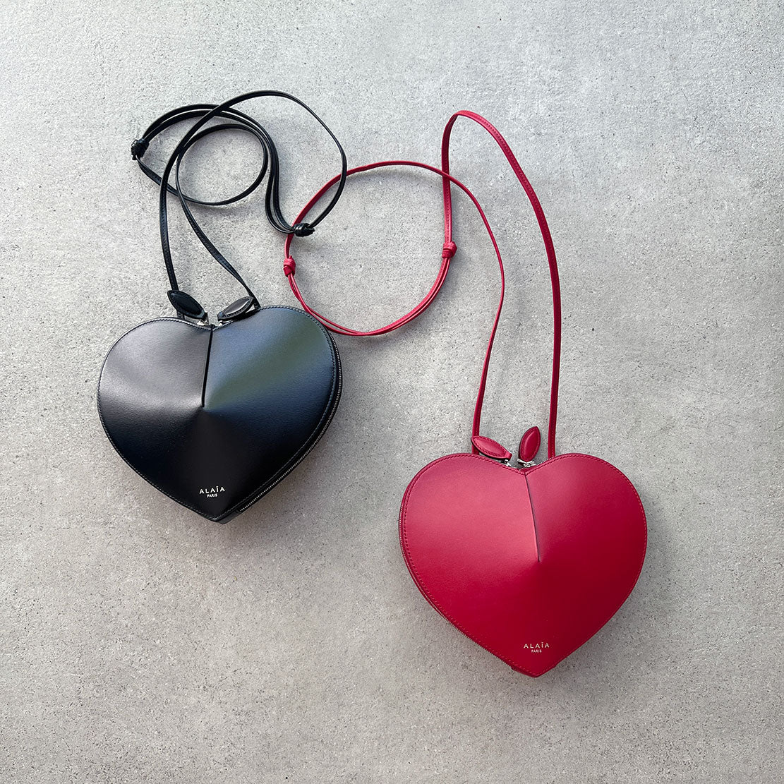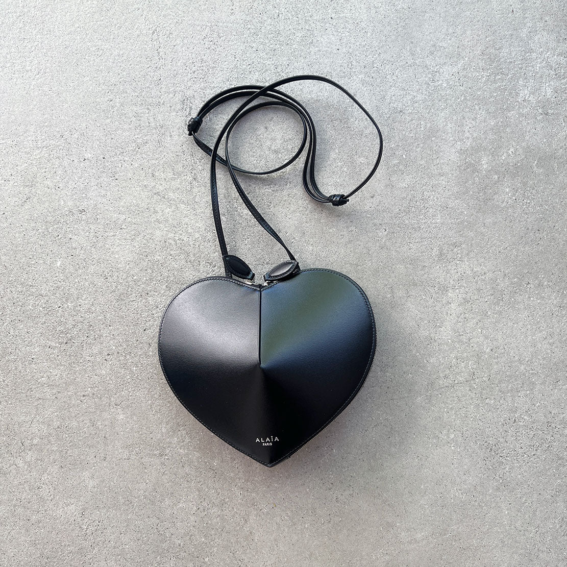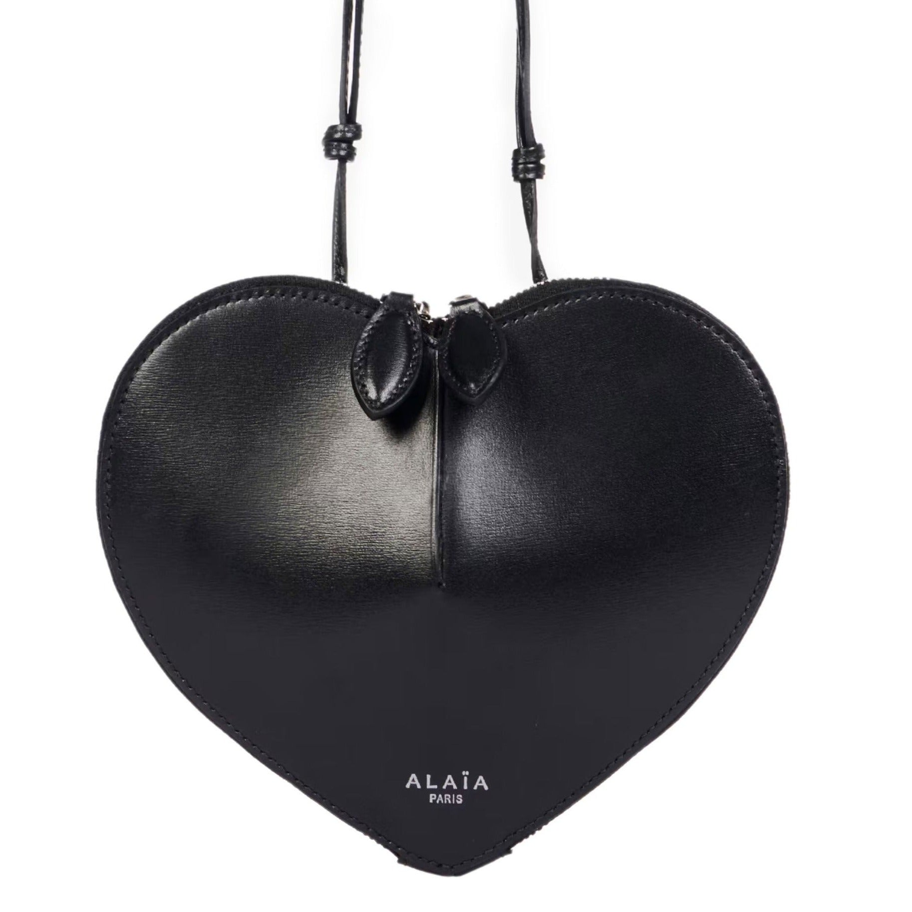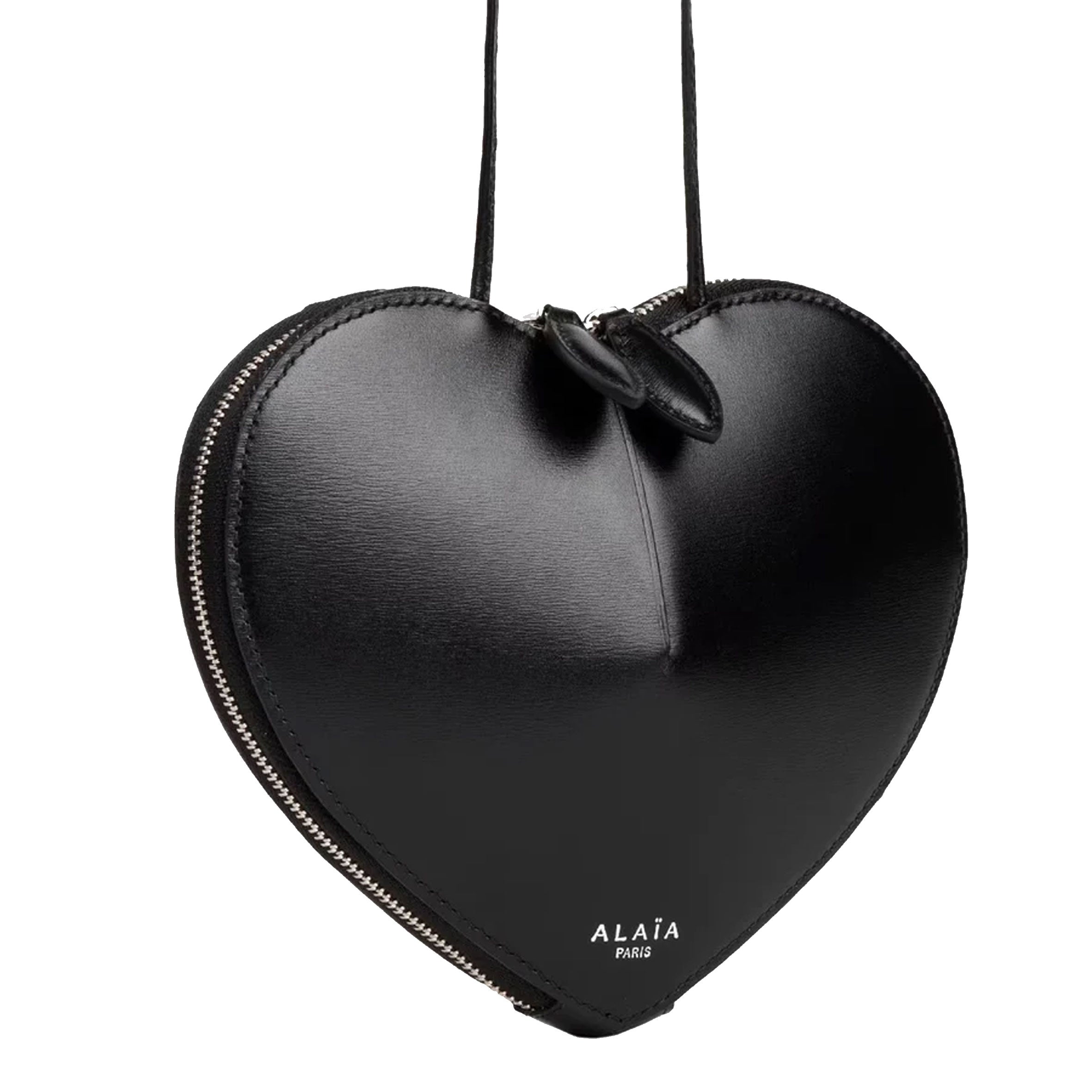 The iconic heart-shaped bag of the Alaïa Maison. Crafted in premium italian calfskin, featuring a zip pouch, an adjustable strap and silver logo detailing.