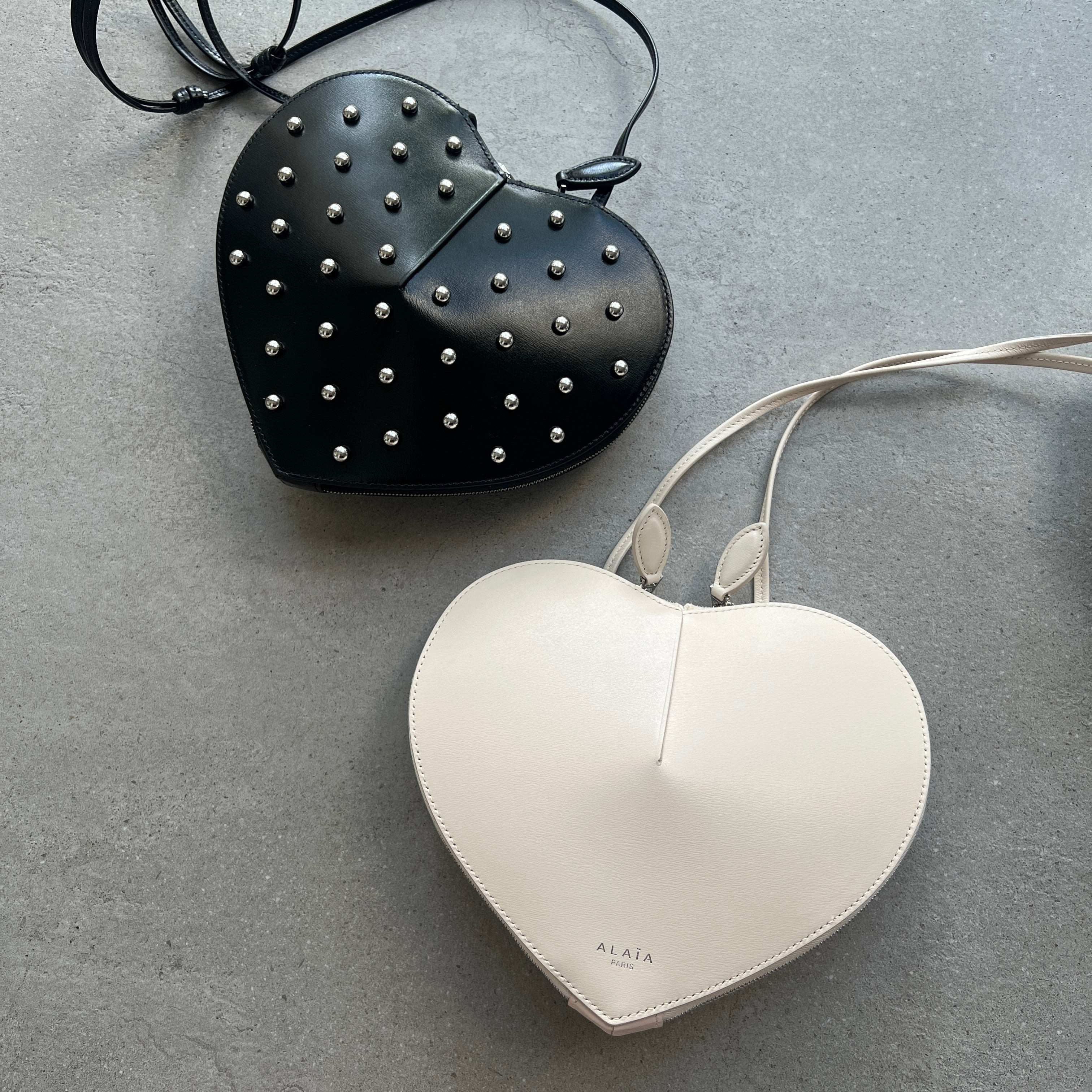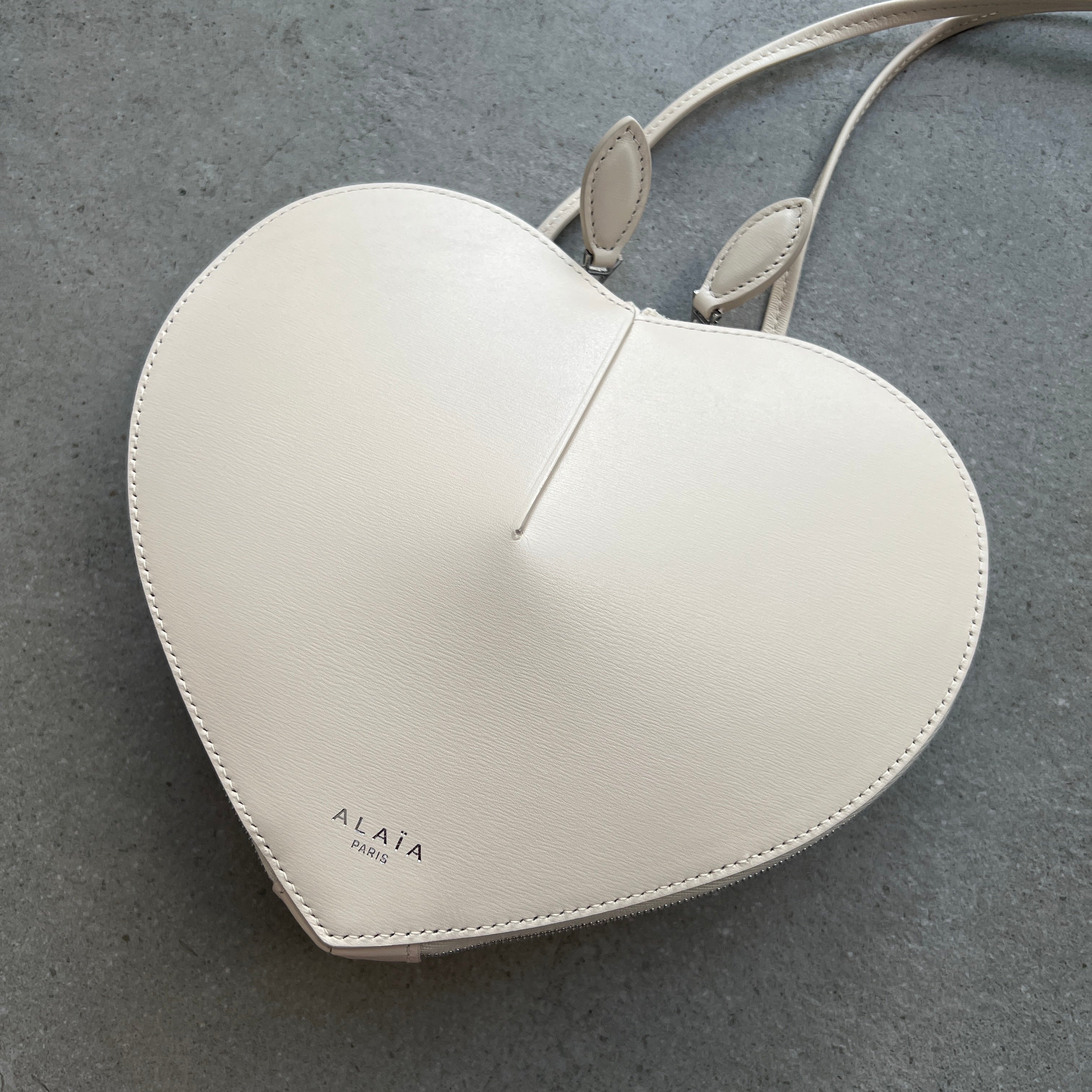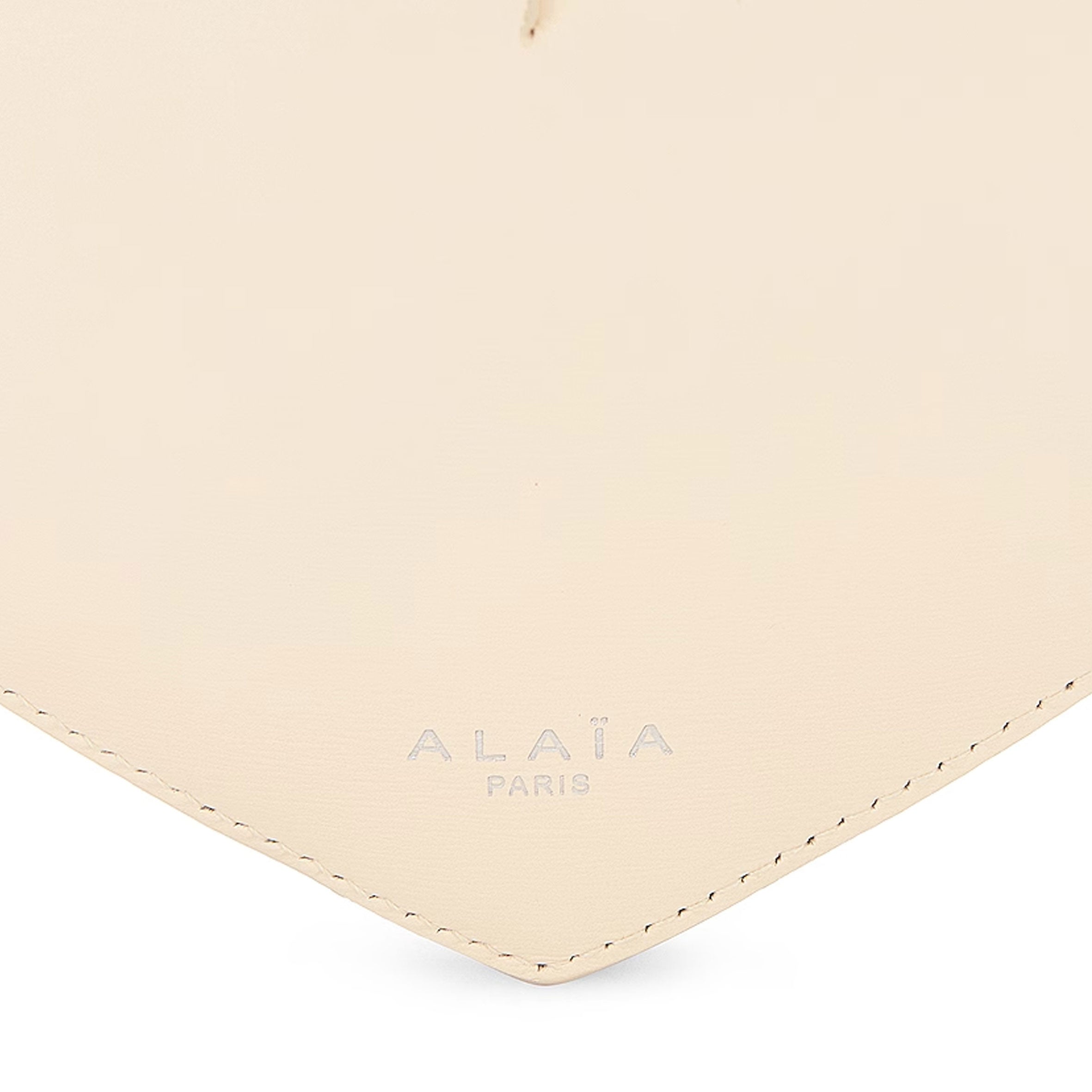 The iconic heart-shaped bag of the Alaïa Maison. Crafted in premium italian calfskin, featuring a zip pouch, an adjustable strap and silver logo detailing.