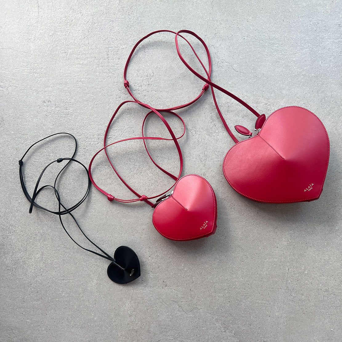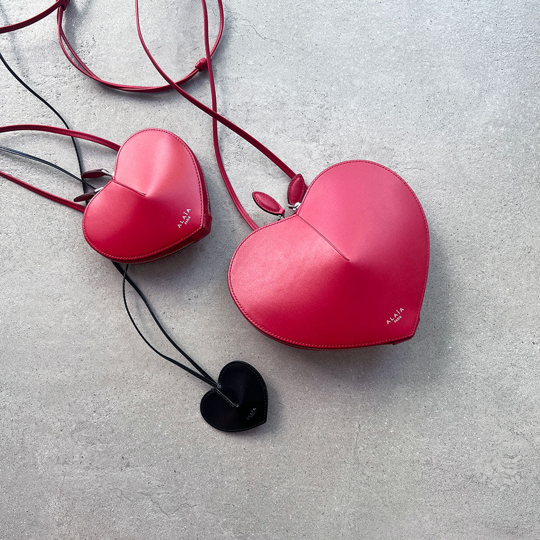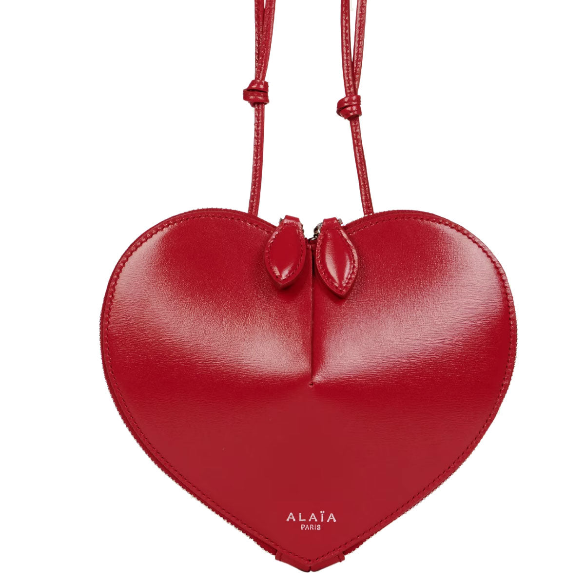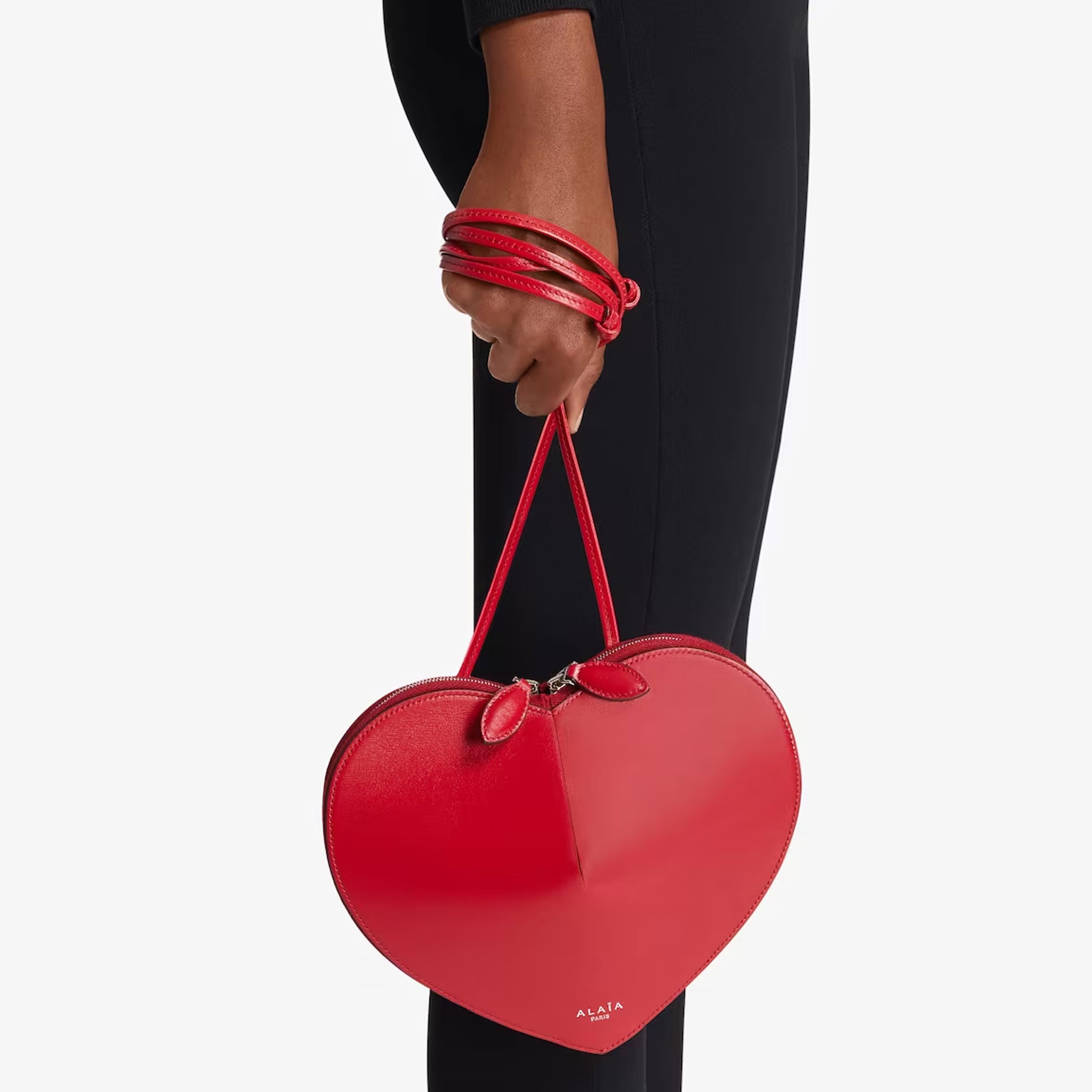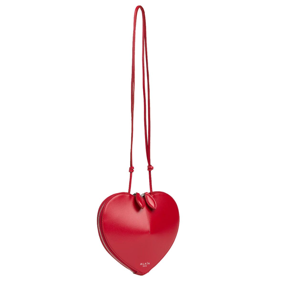 The iconic heart-shaped bag of the Alaïa Maison. Crafted in premium italian calfskin, featuring a zip pouch, an adjustable strap and silver logo detailing.