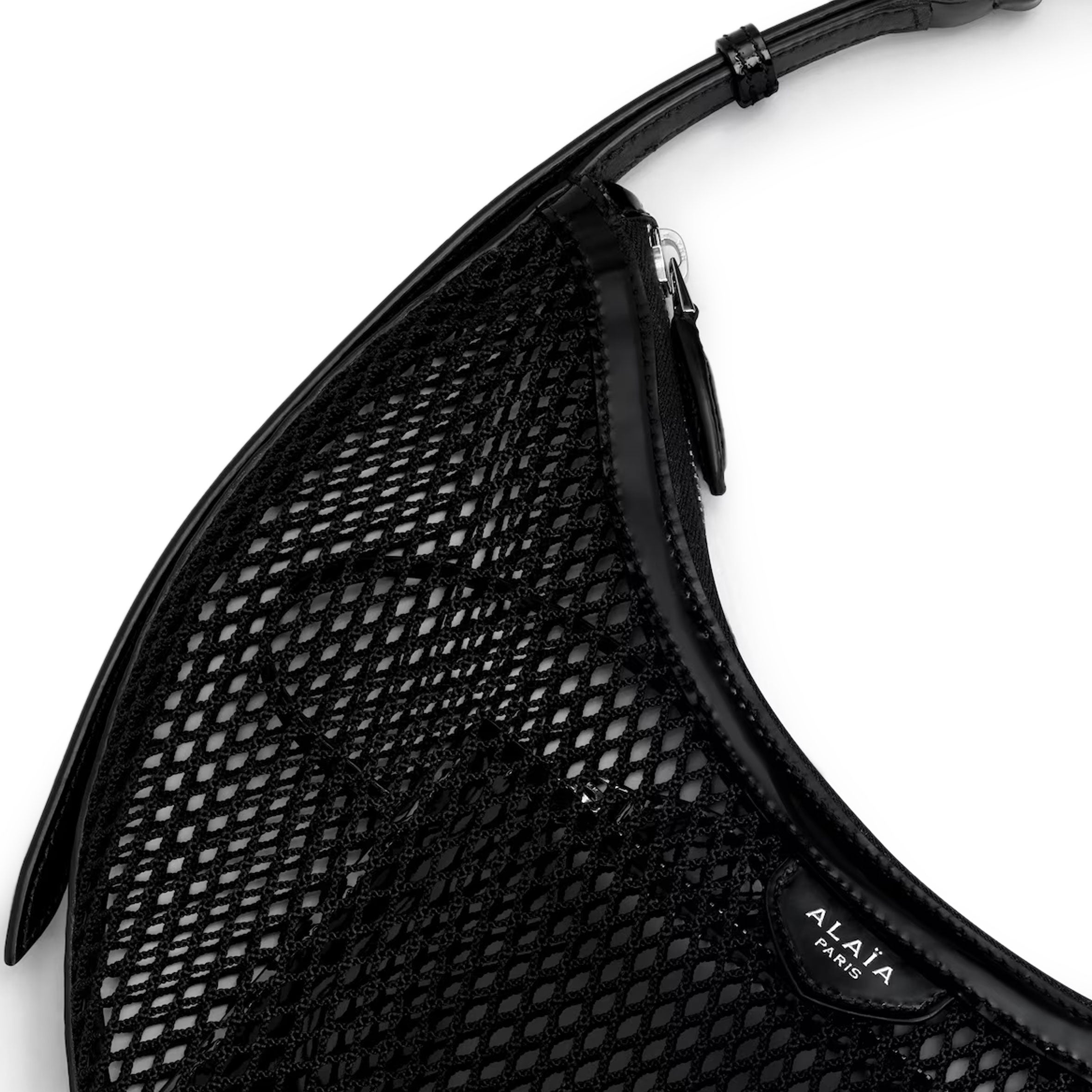 The One Piece small shoulder zipped bag from Maison Alaia. A flat fishnet bag featuring a detachable inner pocket in patent leather.