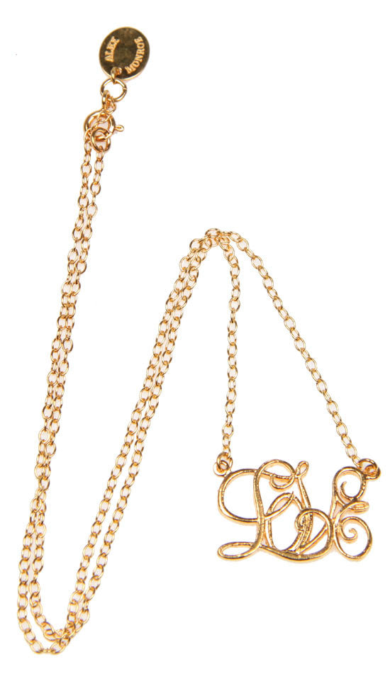 Written in an ornate, scroll script, the 'Love' measures approximately 20mm by 15mm, and sits on a 40cm length chain. 22-karat gold-plated sterling silver with designer-stamped tag. Lobster clasp fastening.