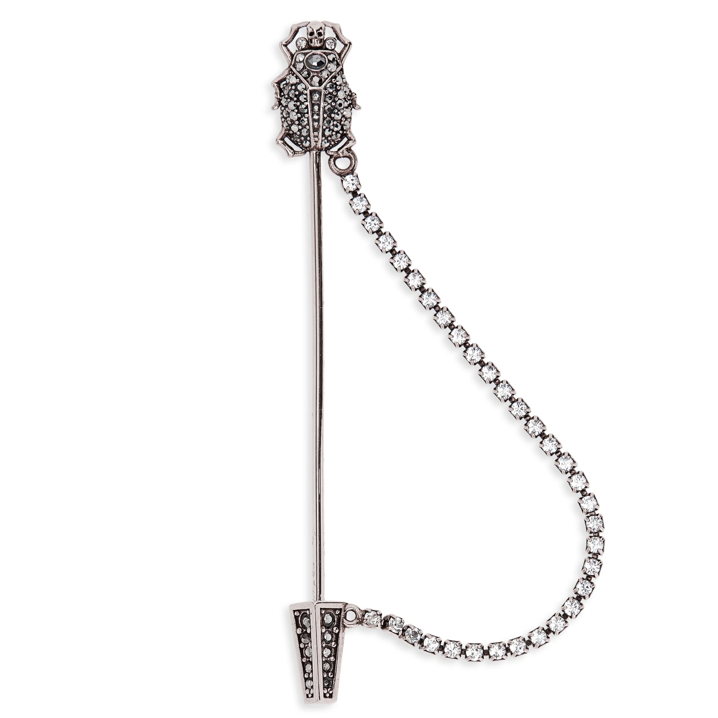 Antique silver-finished Beetle brooch, adorned with Swarovski crystals.
