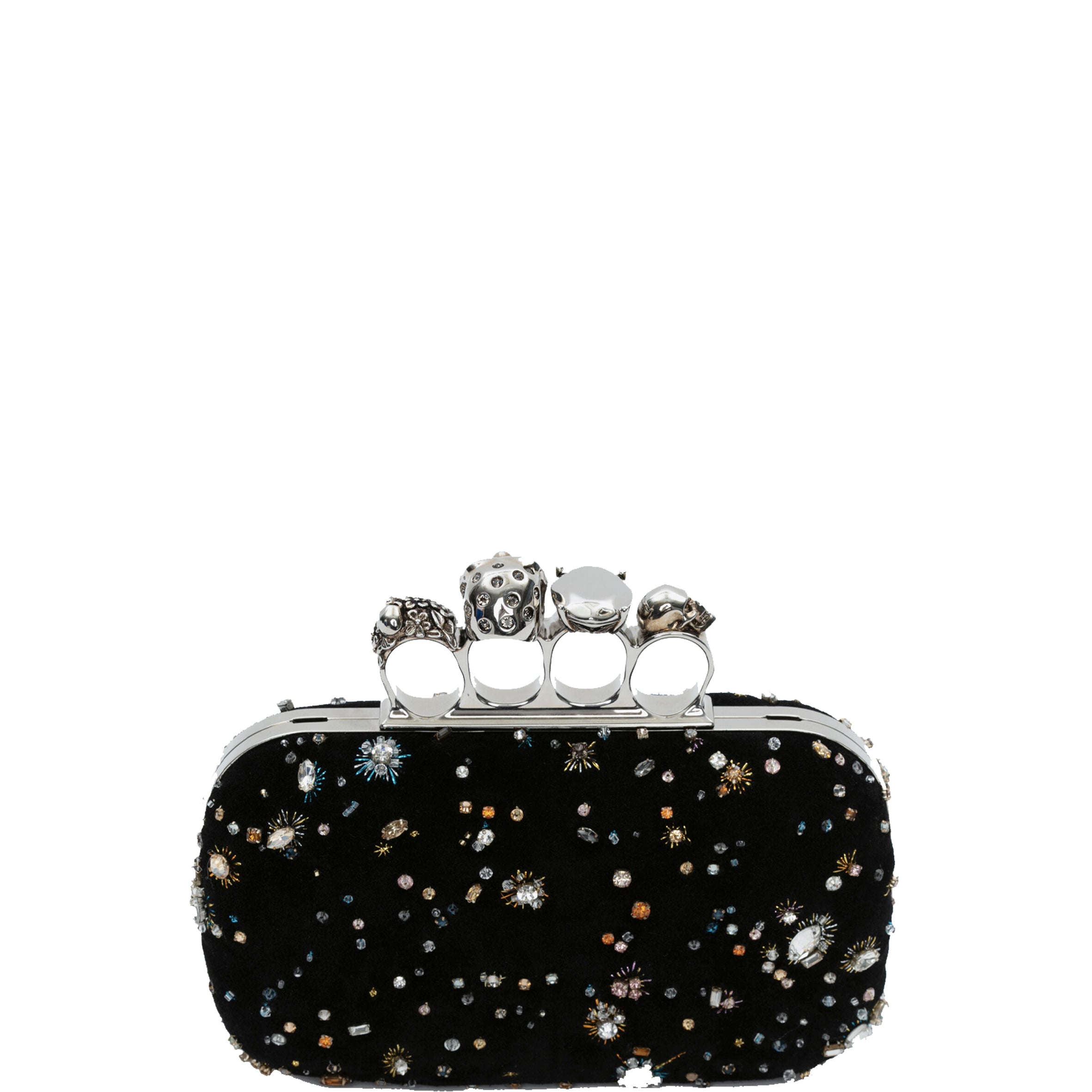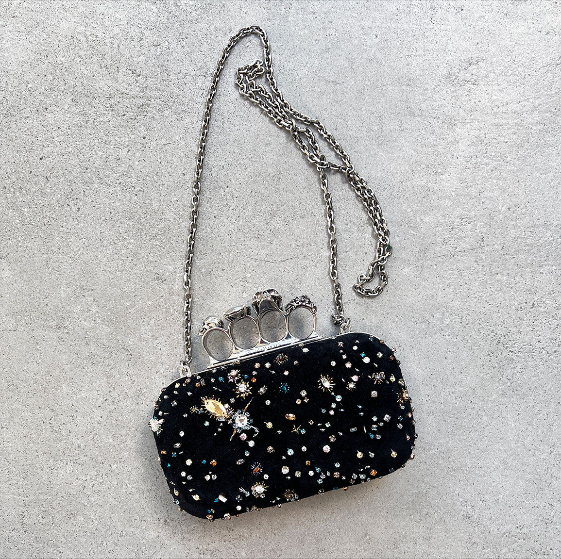 Classic Alexander McQueen Box clutch with skull clasp closure. Finished in new season design with intricate beading.