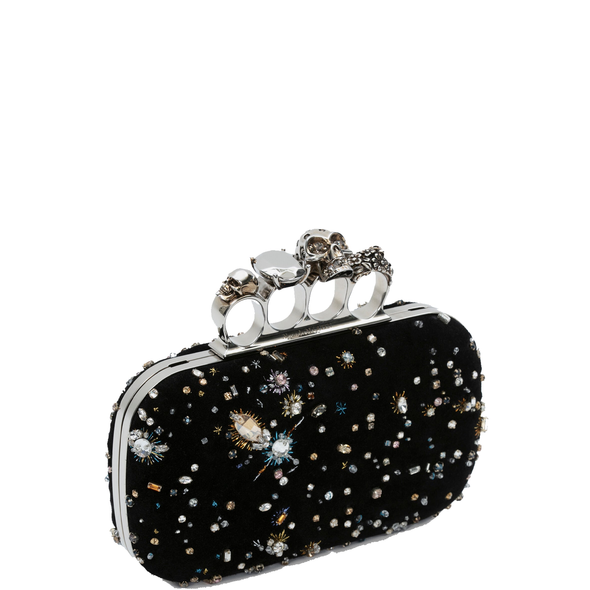 Celestial Box Skull Clutch with Strap, Black/Gold