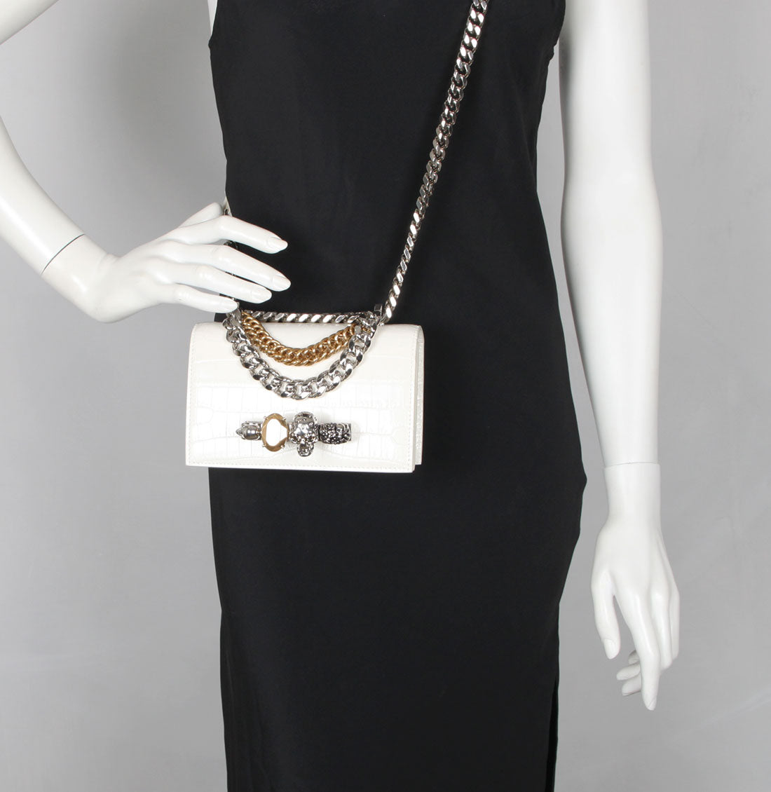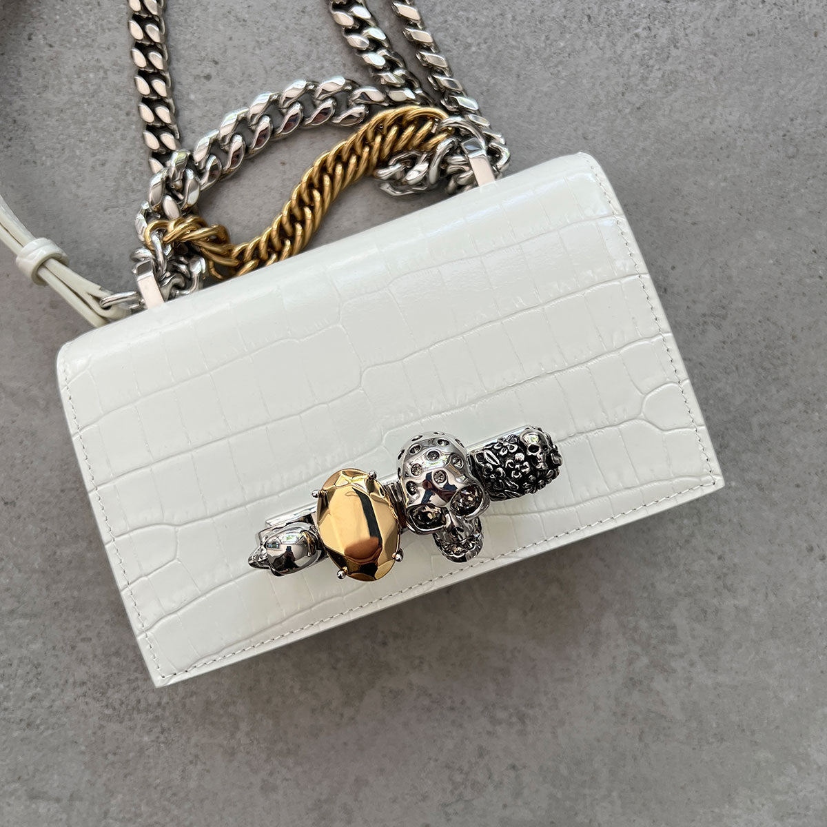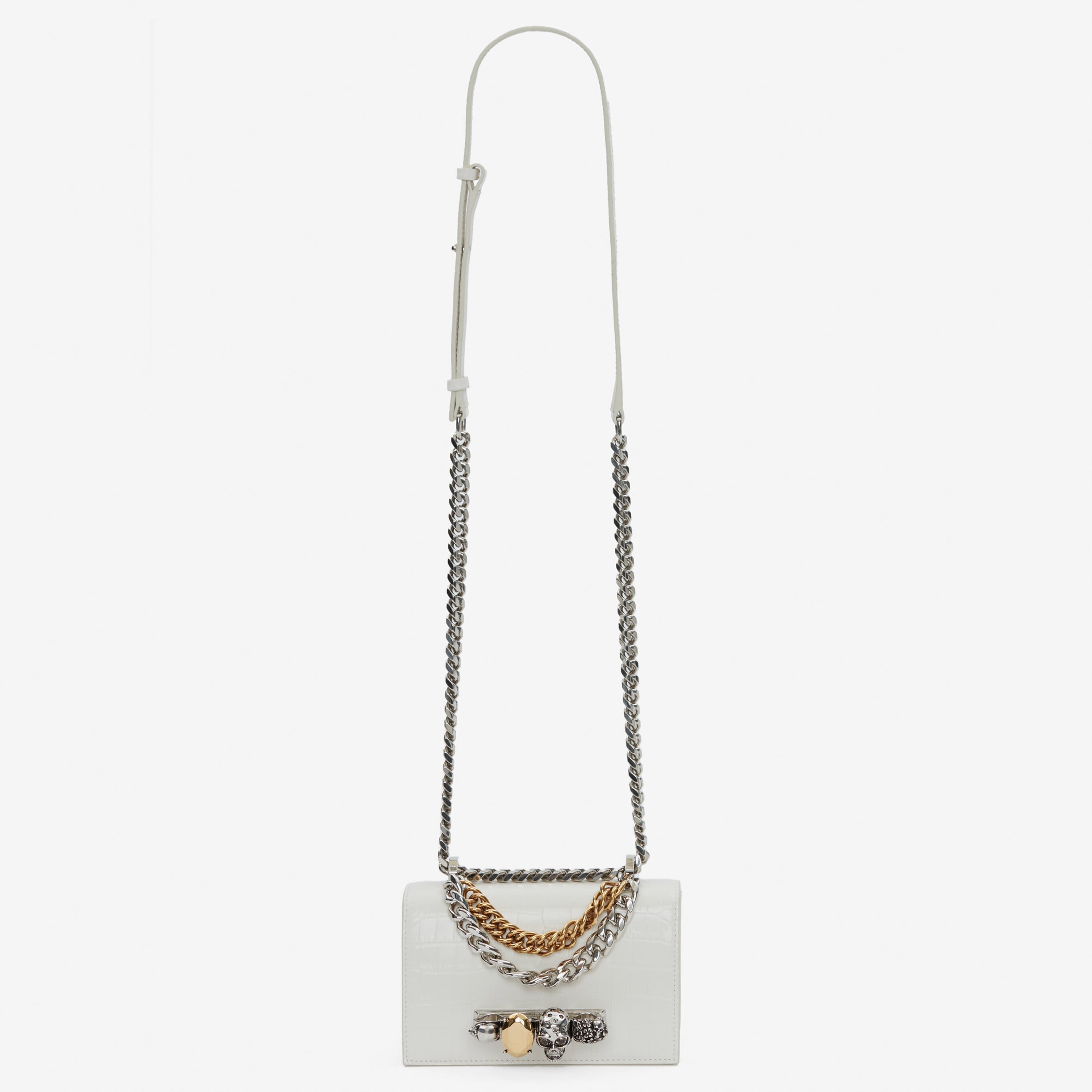 Jewelled Knuckle Satchel Mini, Ivory