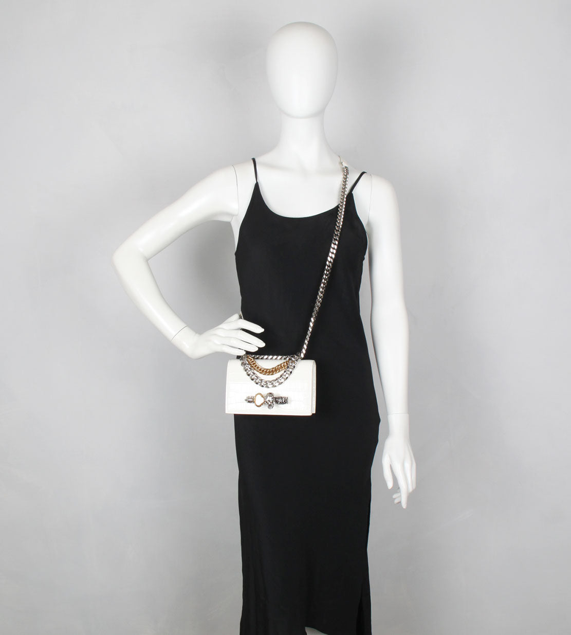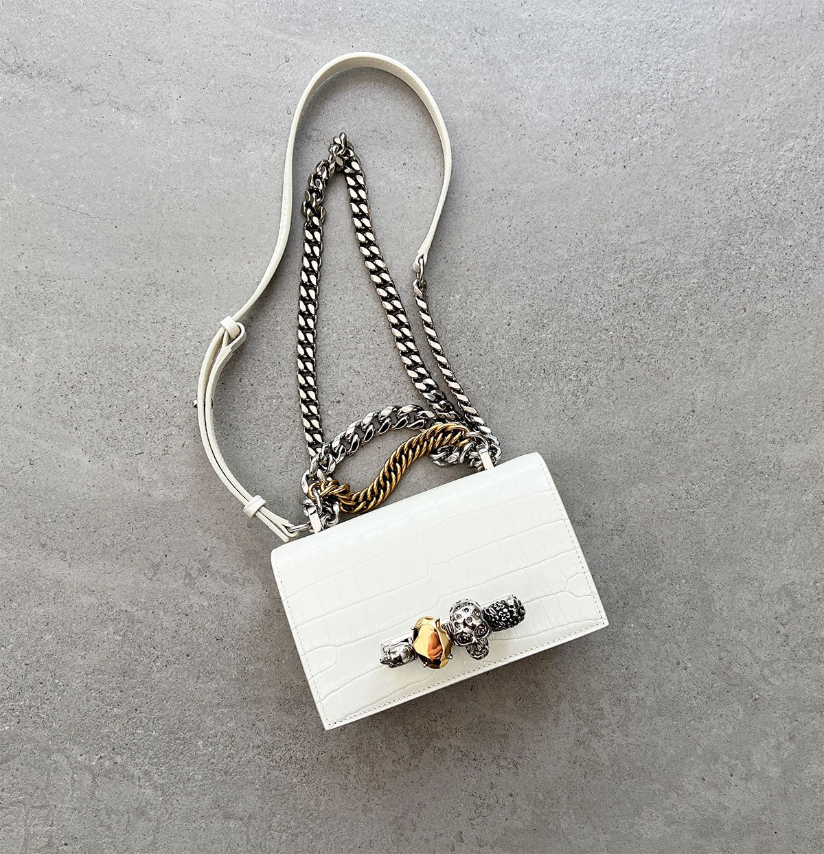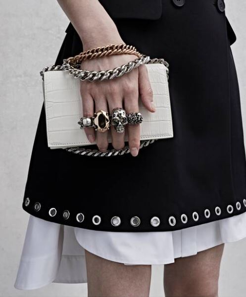 Jewelled Knuckle Satchel Mini, Ivory