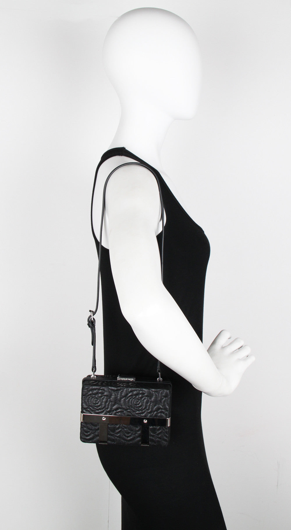 Roses Embossed Cage Bag, Black