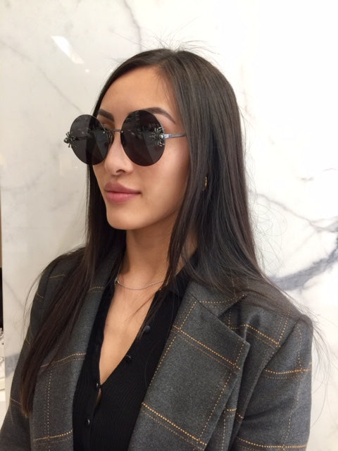 Round Jewelled Spider Sunglasses, Ruthenium/Grey