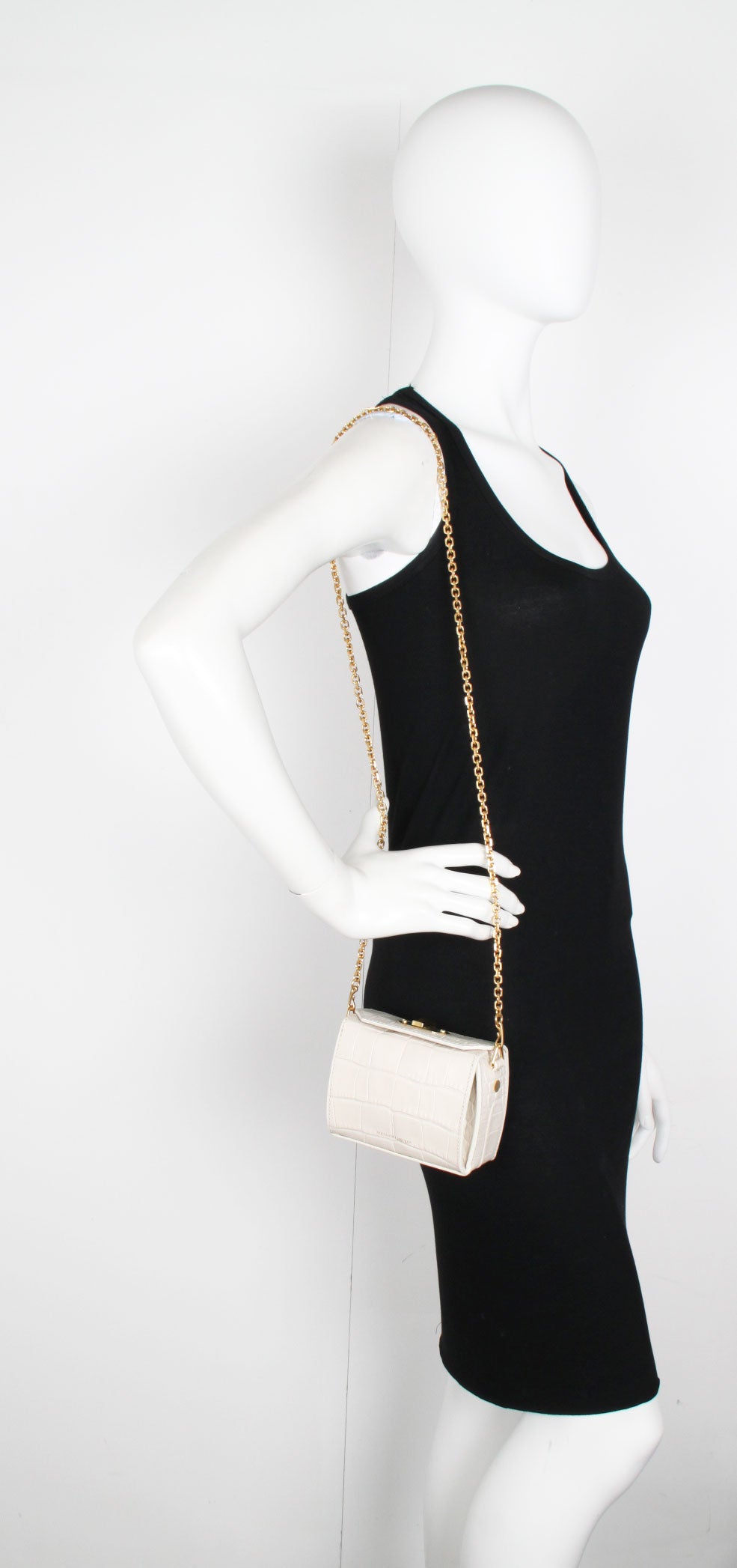 Box Bag Nano Croc, Bone/Gold