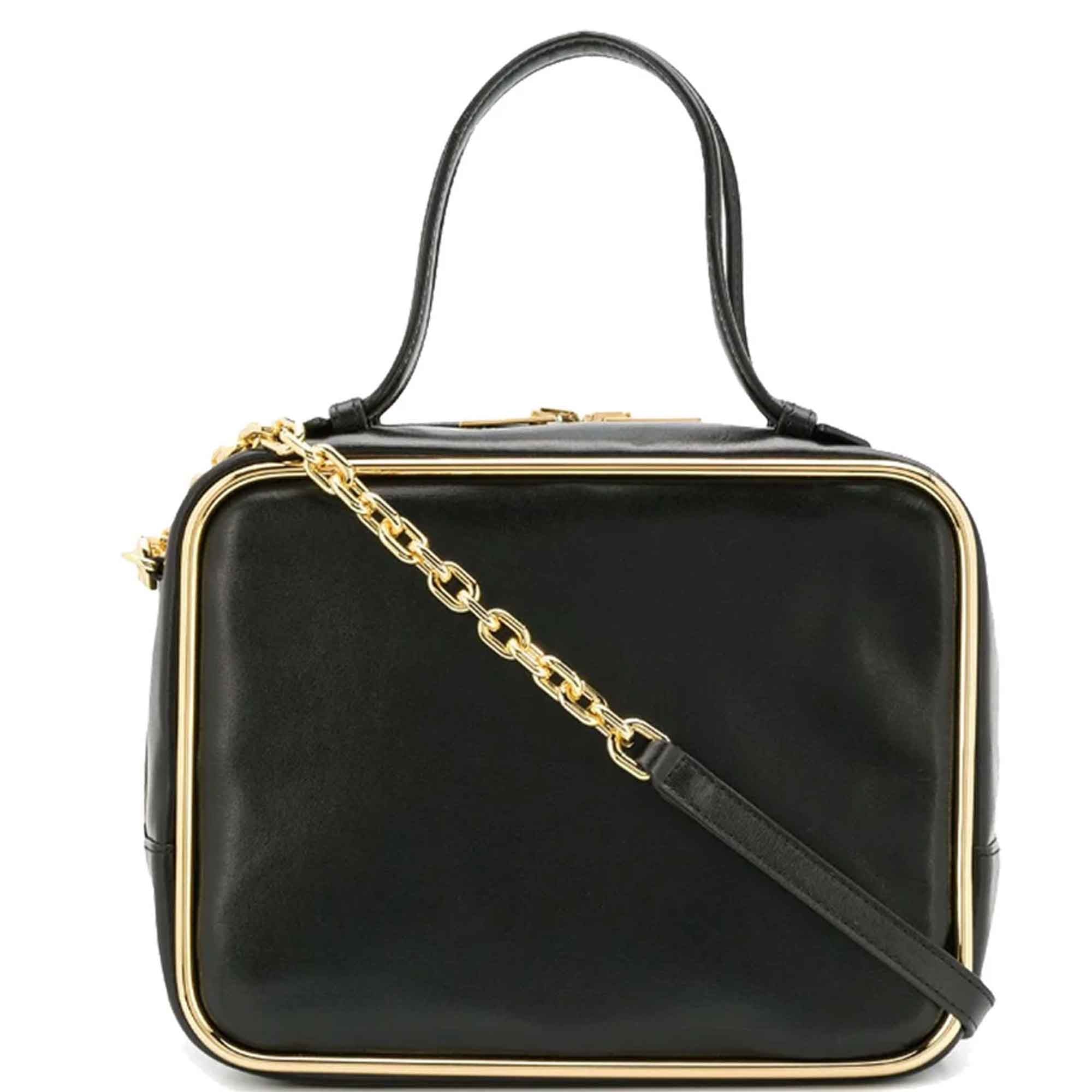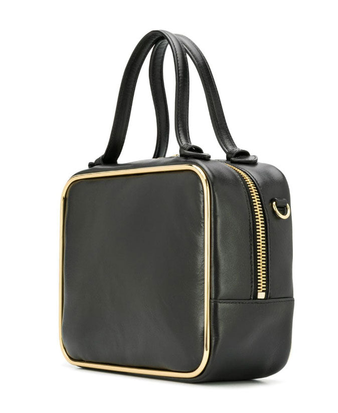 Black leather Halo tote from Alexander Wang featuring a top handle, a shoulder strap, a top zip fastening and gold-tone hardware.