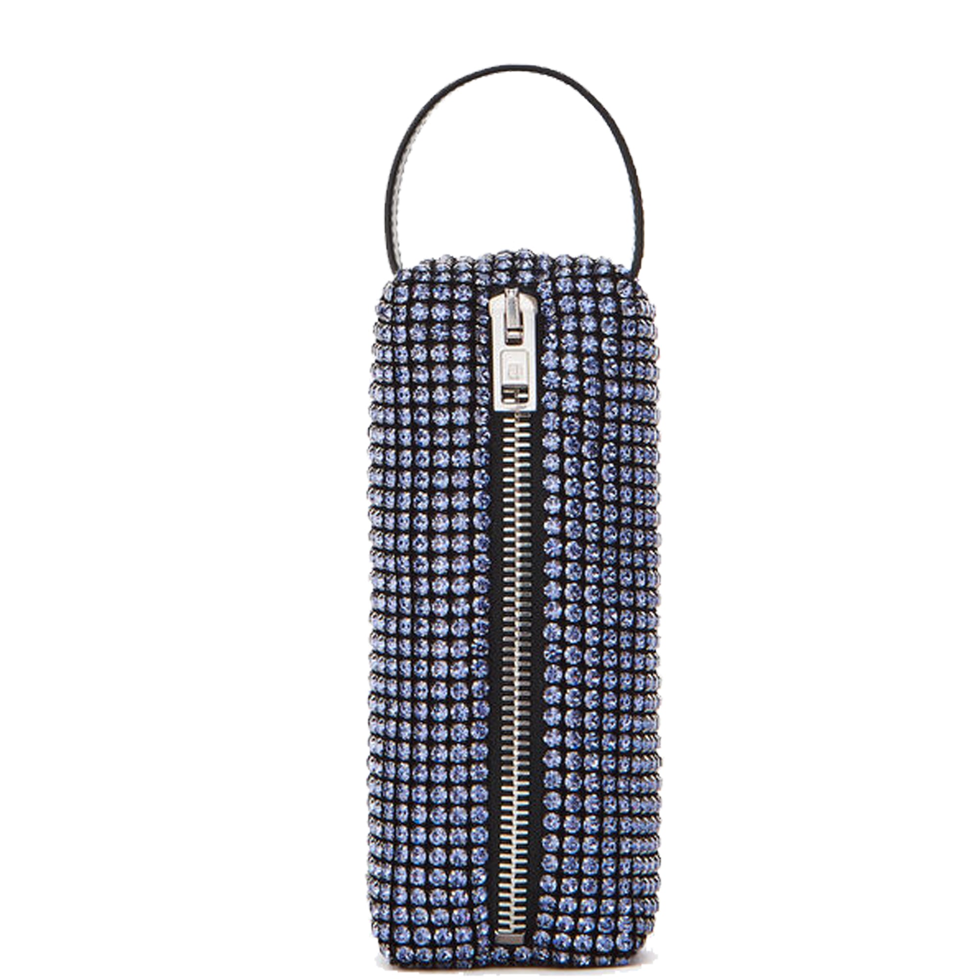 This mesh pencil case features crystal glass rhinestone embellishments and a statement zipper. The interior lining is made from nylon and handle is imprinted with the logo.