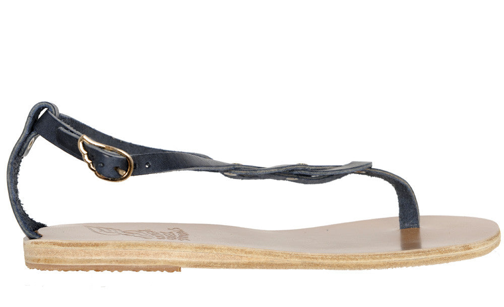 These sandals feature a Hercules knot in a dark marine colour leather. Adjustable ankle strap with Signature wing-shaped buckle fastening.