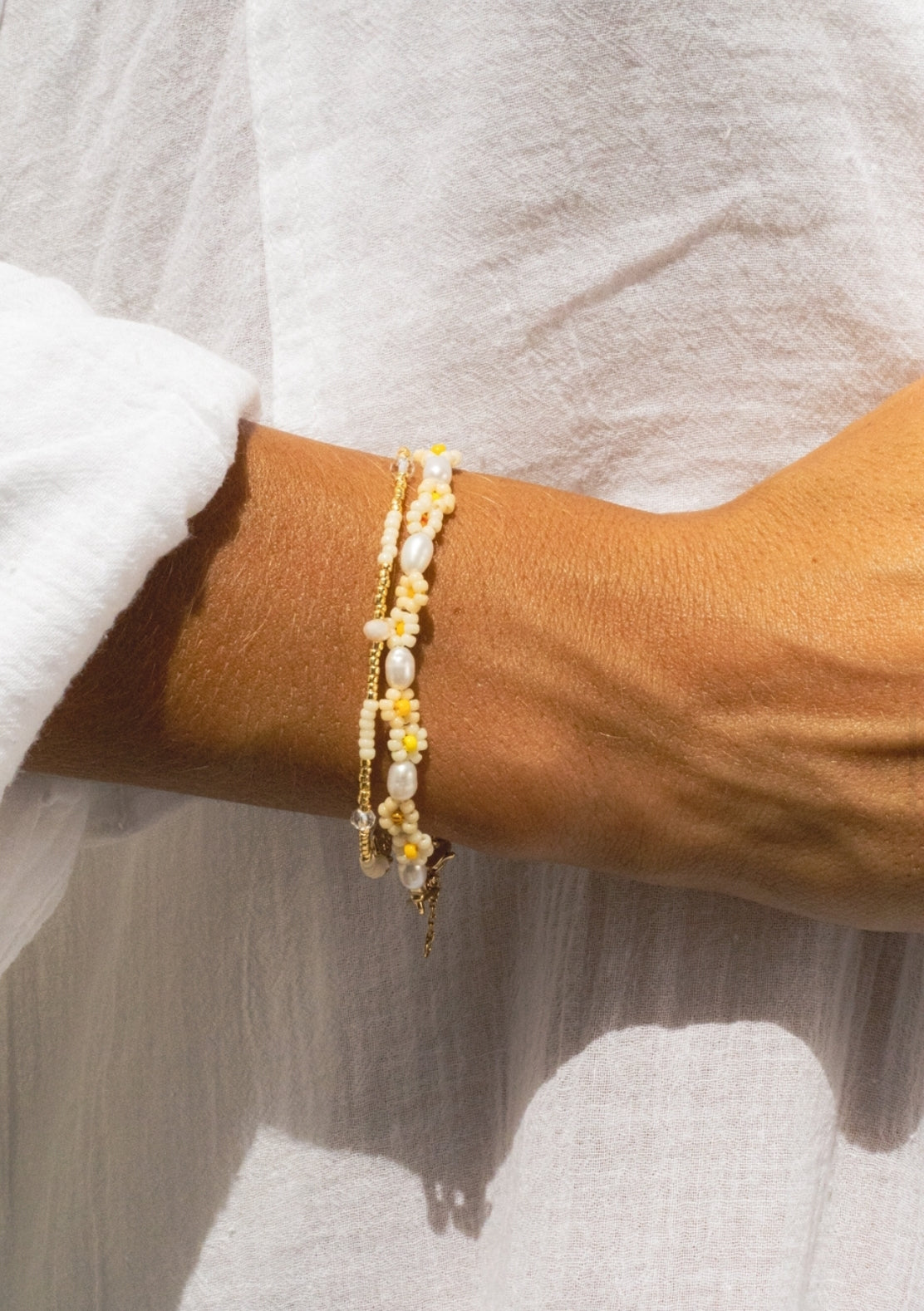 Meet our Daisy Flower Bracelet that is carefully handcrafted with the old and traditional Mexican Huichol technique. The daisy represents simplicity, and new beginnings, making this bracelet a way to express grace and fresh starts.