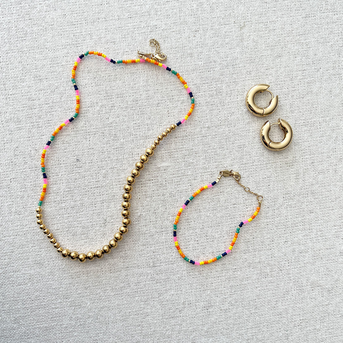 Anni Lu combined sophisticated and classical gold jewelry with a modern and playful interpretation. This bracelet is detailed with glass beads.