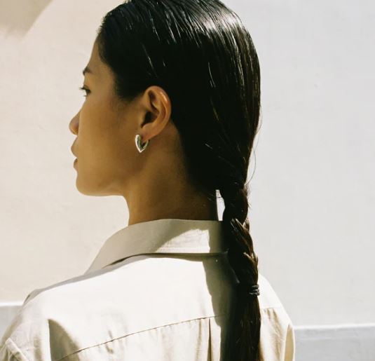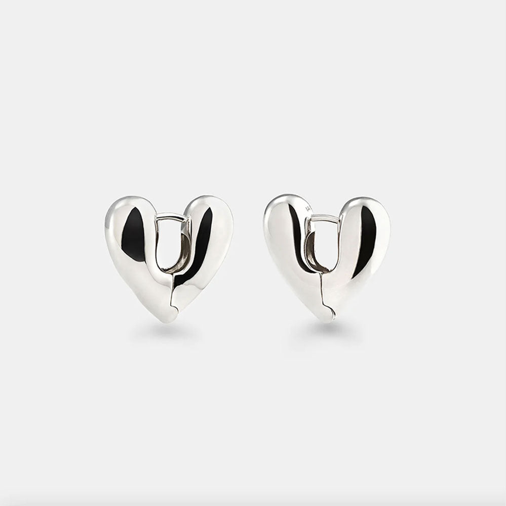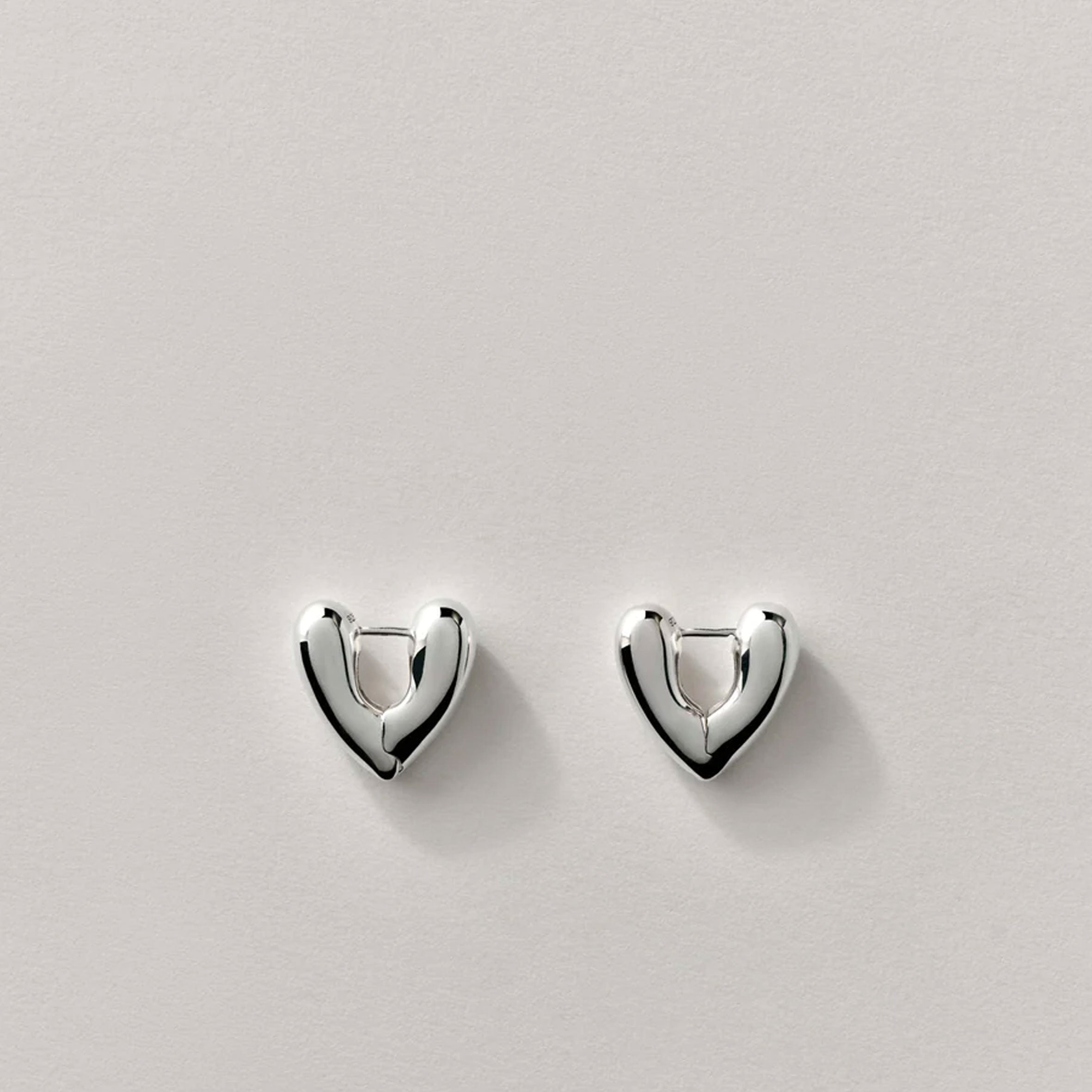 Signature hinge hoops with a sculptural heart shaped design crafted from 925 sterling silver