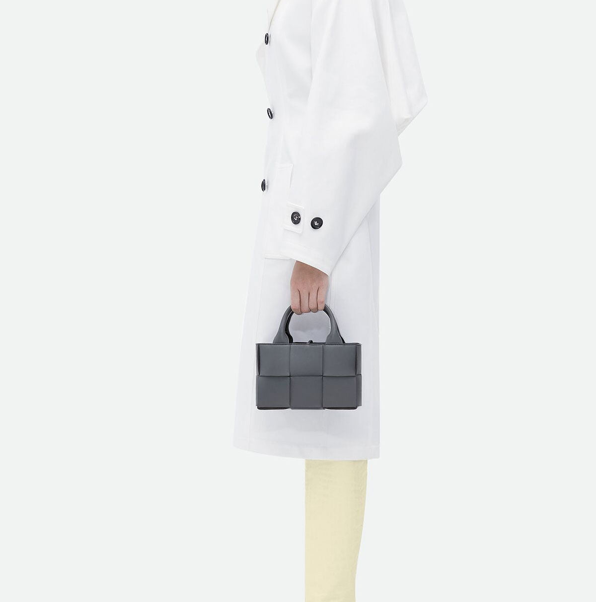 Bottega Veneta's Arco tote is crafted from the brands signature intrecciato weave in supersized proportions. The candy is a micro intreccio leather tote bag with detachable strap. Has a single detachable interior zipped pocket and Leather string closure