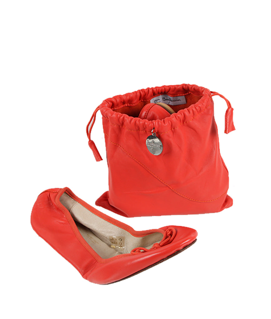 Bagllerina is a foldable ballerina entirely made with leather. This stylish and smart accessory consists of a pair of foldable leather ballerinas with a matching bag. Hence the name of the brand: Bag + Ballerina. This classic ballerina allows you to replace your heels with foldable ballerinas made with 100% lamb leather.