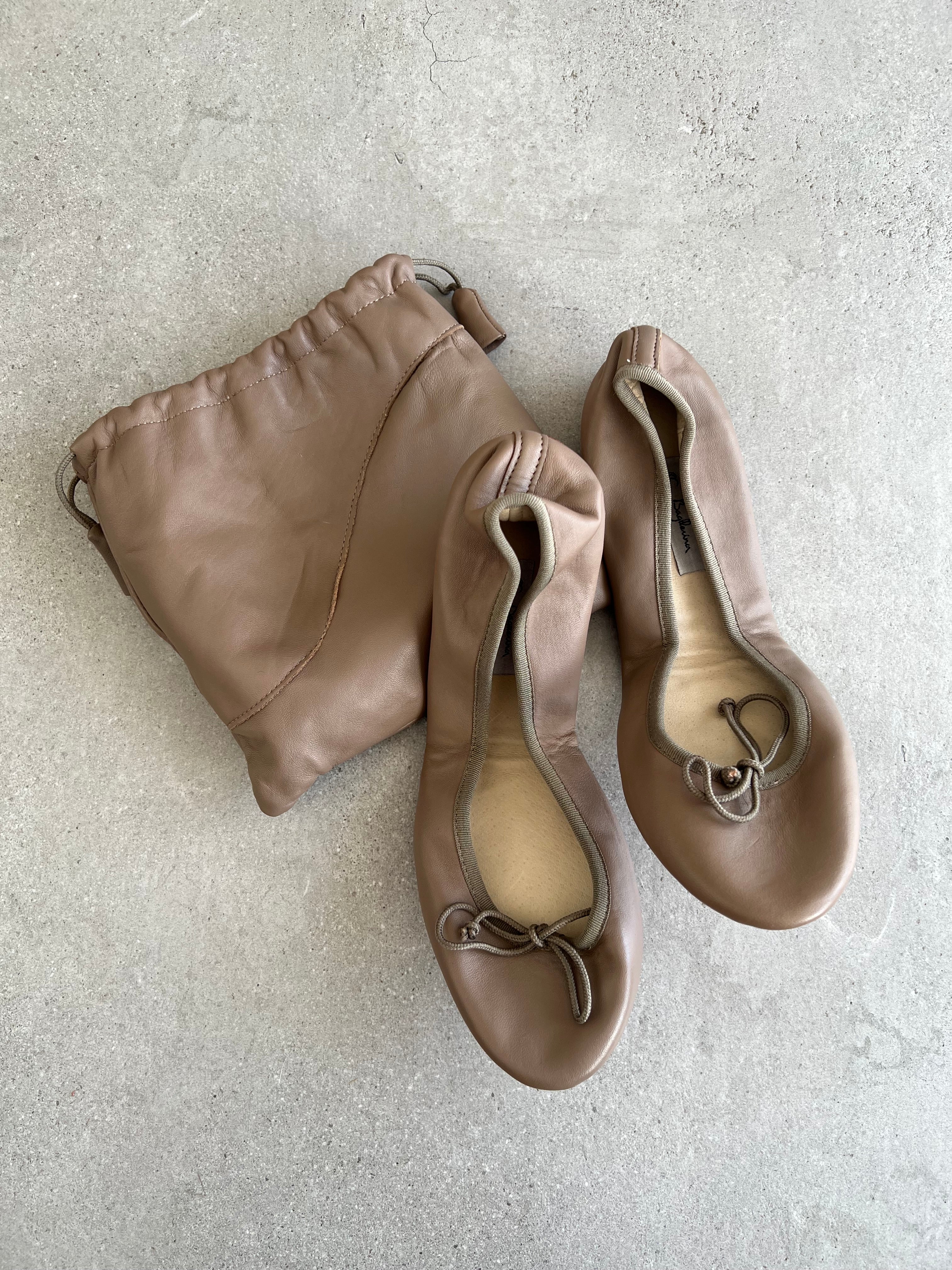 Bagllerina is a foldable ballerina entirely made with leather. This stylish and smart accessory consists of a pair of foldable leather ballerinas with a matching bag. Hence the name of the brand: Bag + Ballerina. This classic ballerina allows you to replace your heels with foldable ballerinas made with 100% lamb leather.