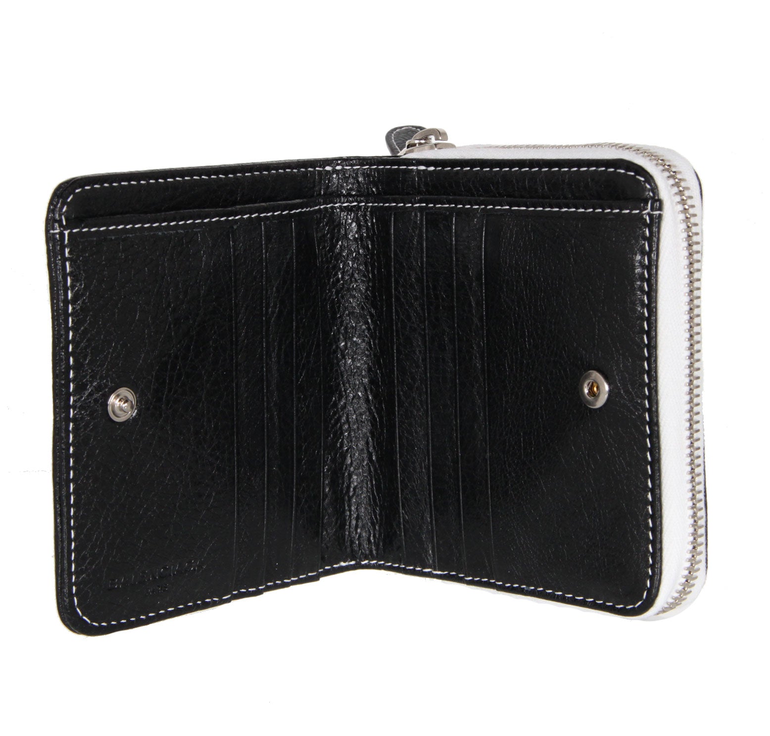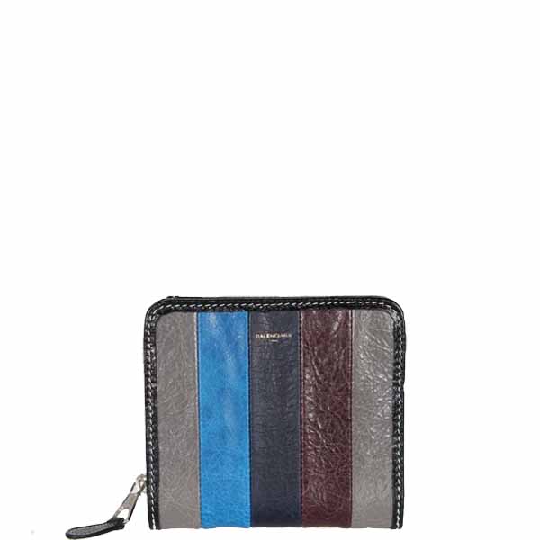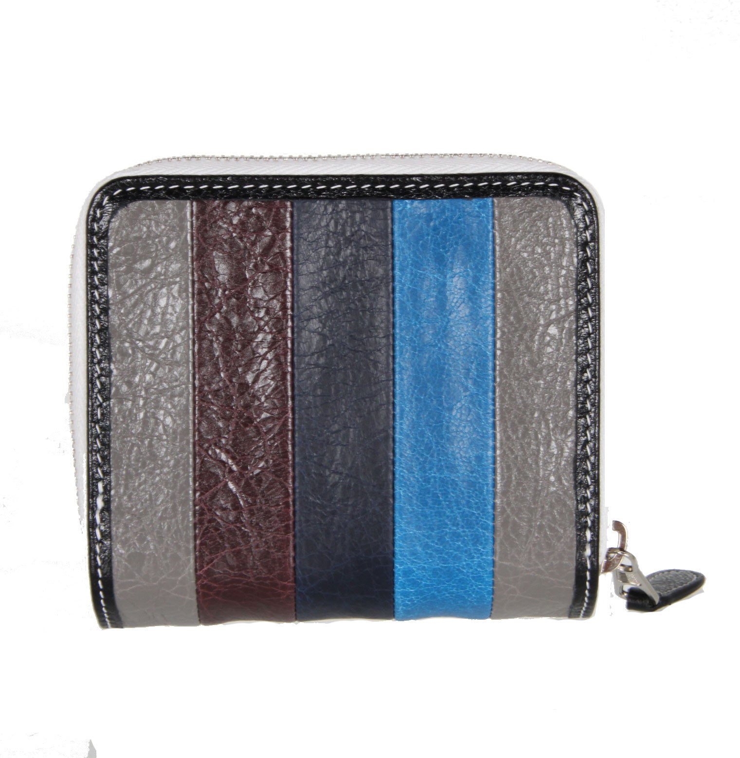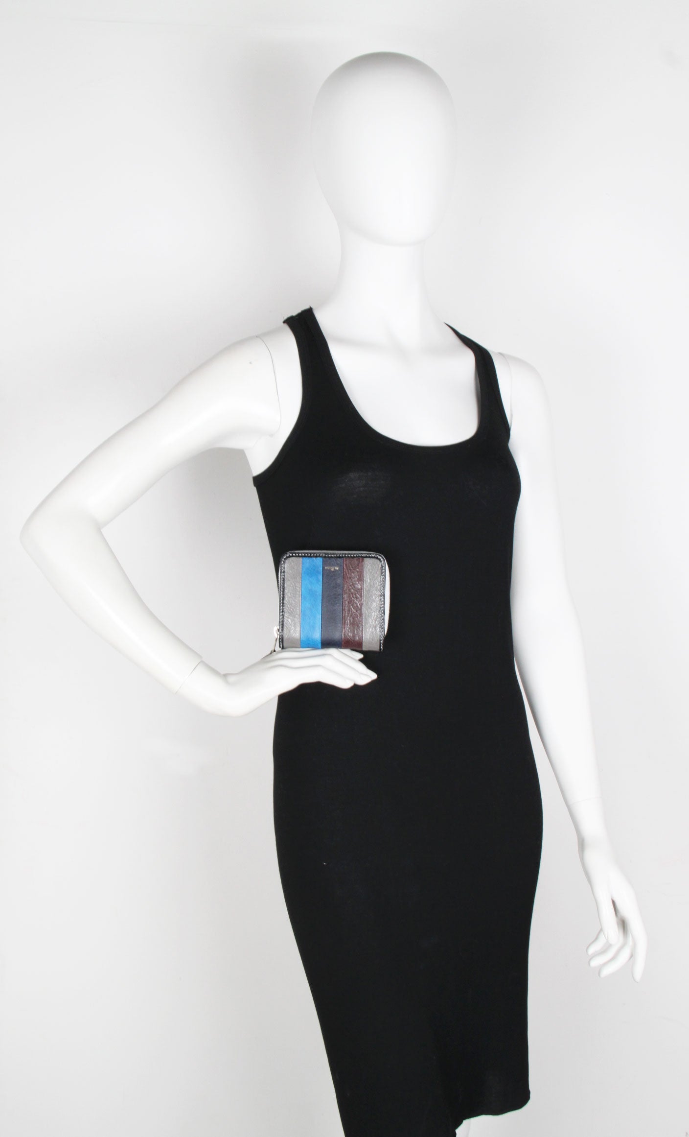 Balenciaga's stripe long zip wallet in lambskin leather. Leather zipper pull on coin pocket, 3 bill compartments and 12 card slots. Lined in black cotton canvas with Balenciaga embossed logo.